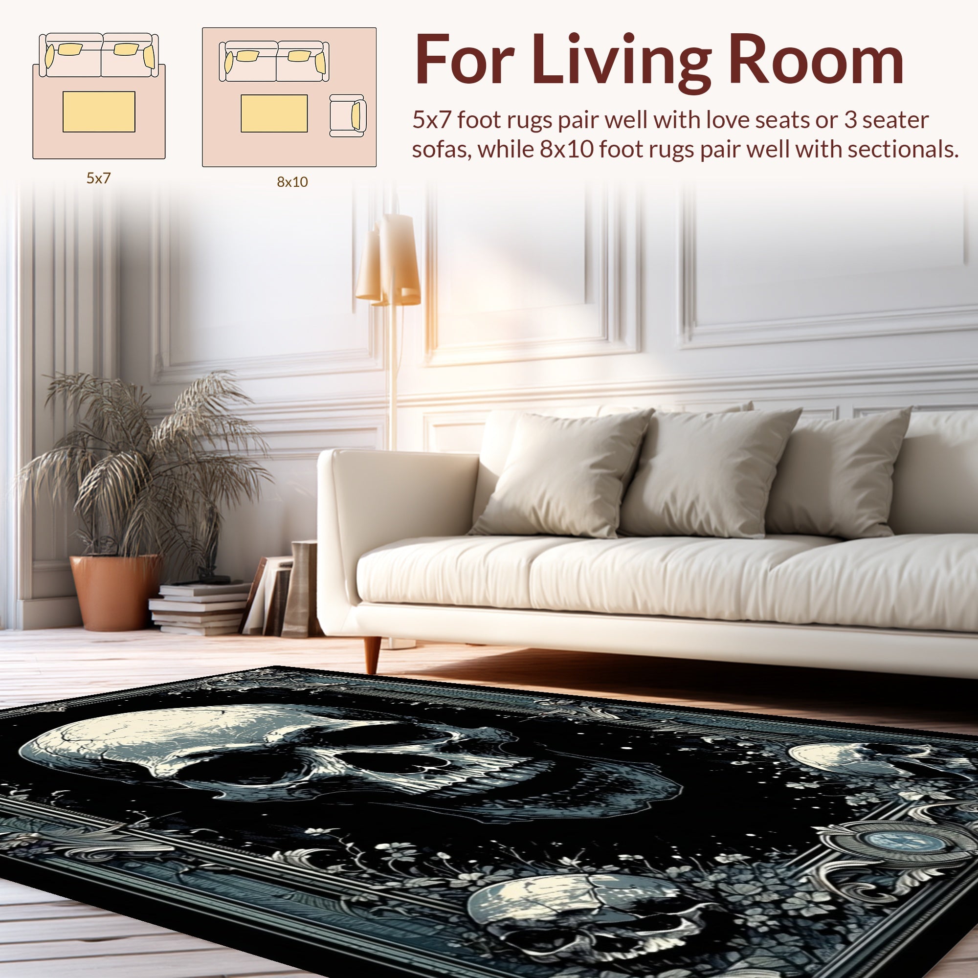 Flatwoven High Traffic Area Rug, Whimsical Dark Fantasy, Non Slip, Stain Resistant, Washable Area Rugs for Living Room, Bedroom (Black) Overview: