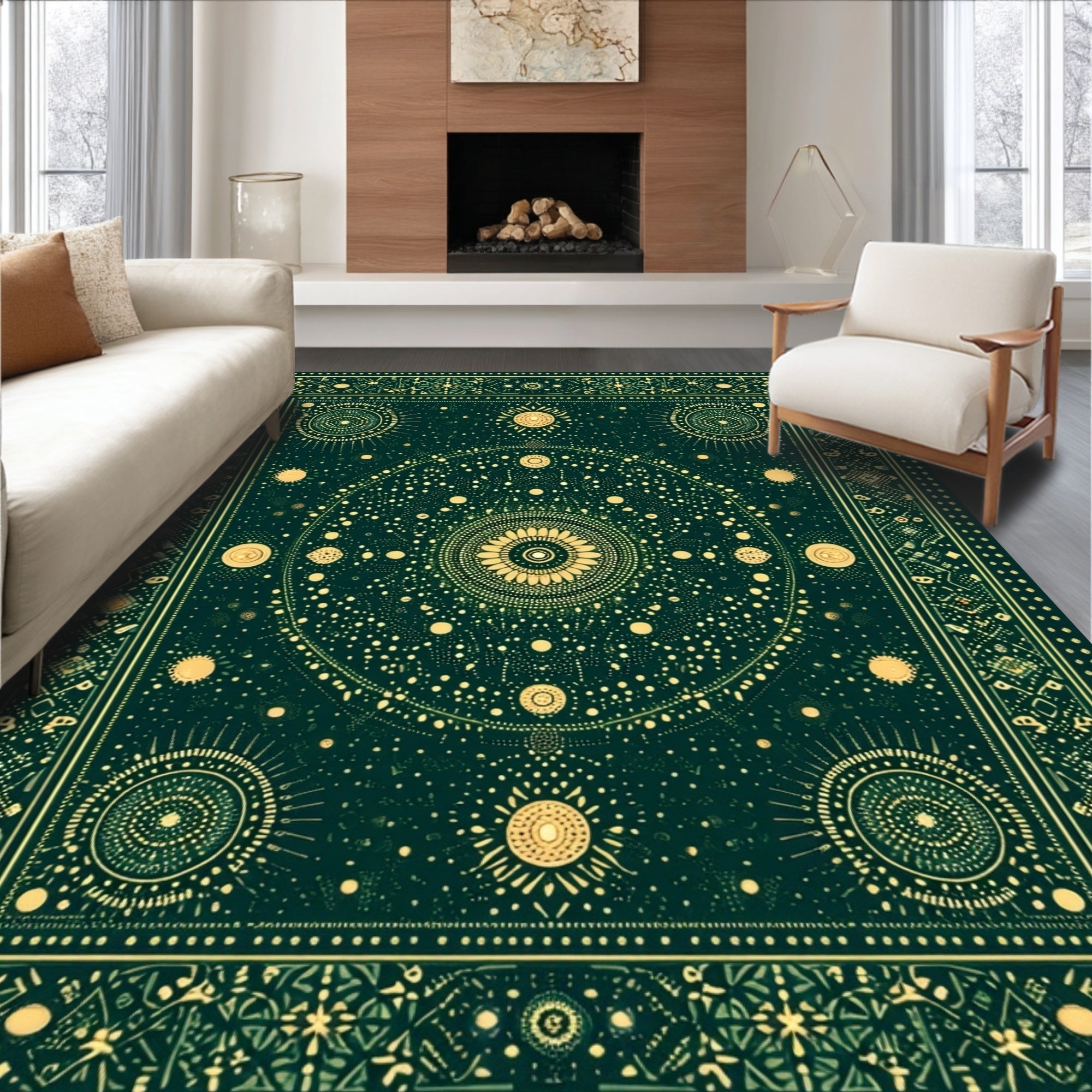 Ultra Soft Area Rug, Non Slip, Stain Resistant, Washable Area Rugs for Living Room, Bedroom, Whimsical Dark Green Celestial Bedroom Area Rug(Green) Overview: