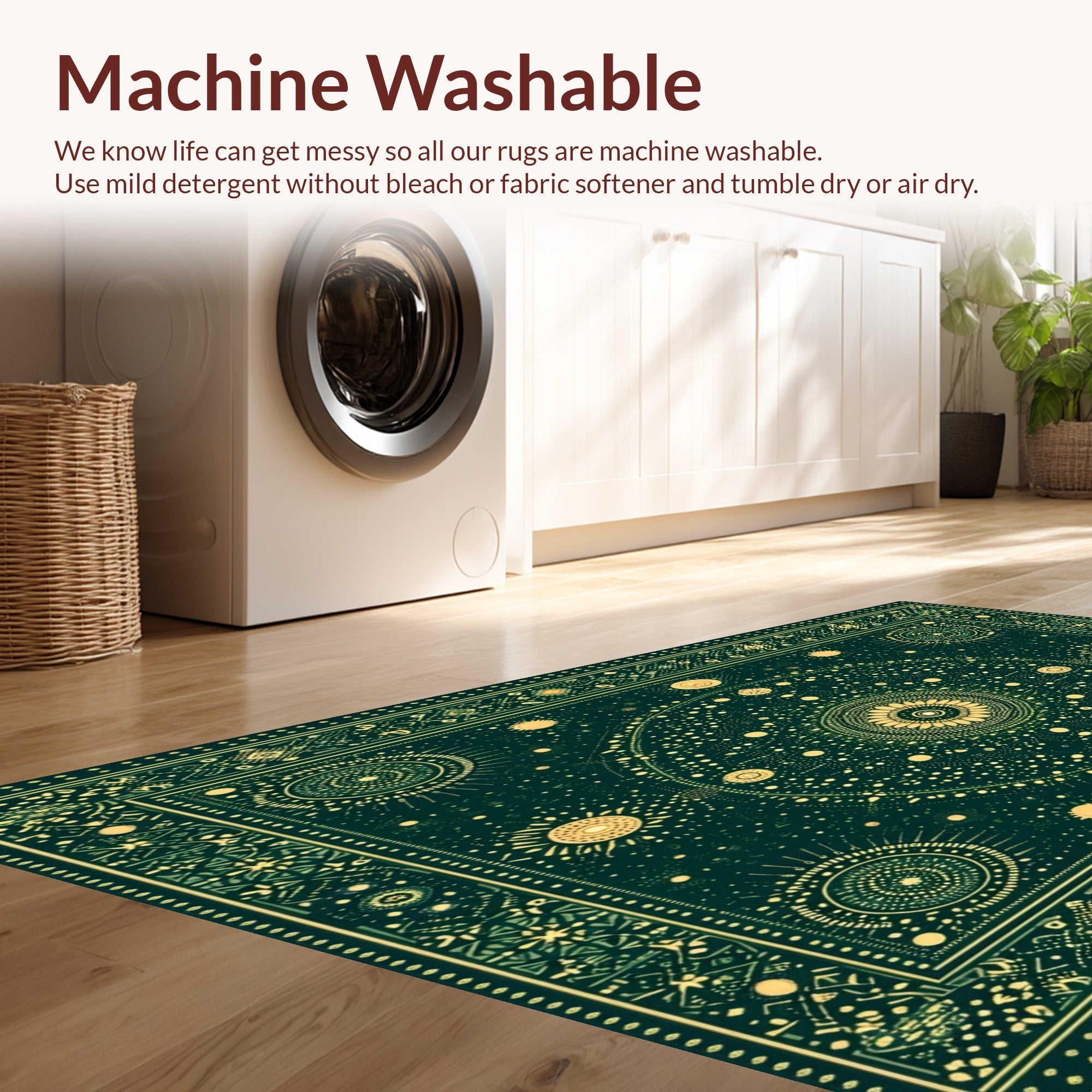 - Machine Washable: Our rugs can be easily thrown in the wash machine.