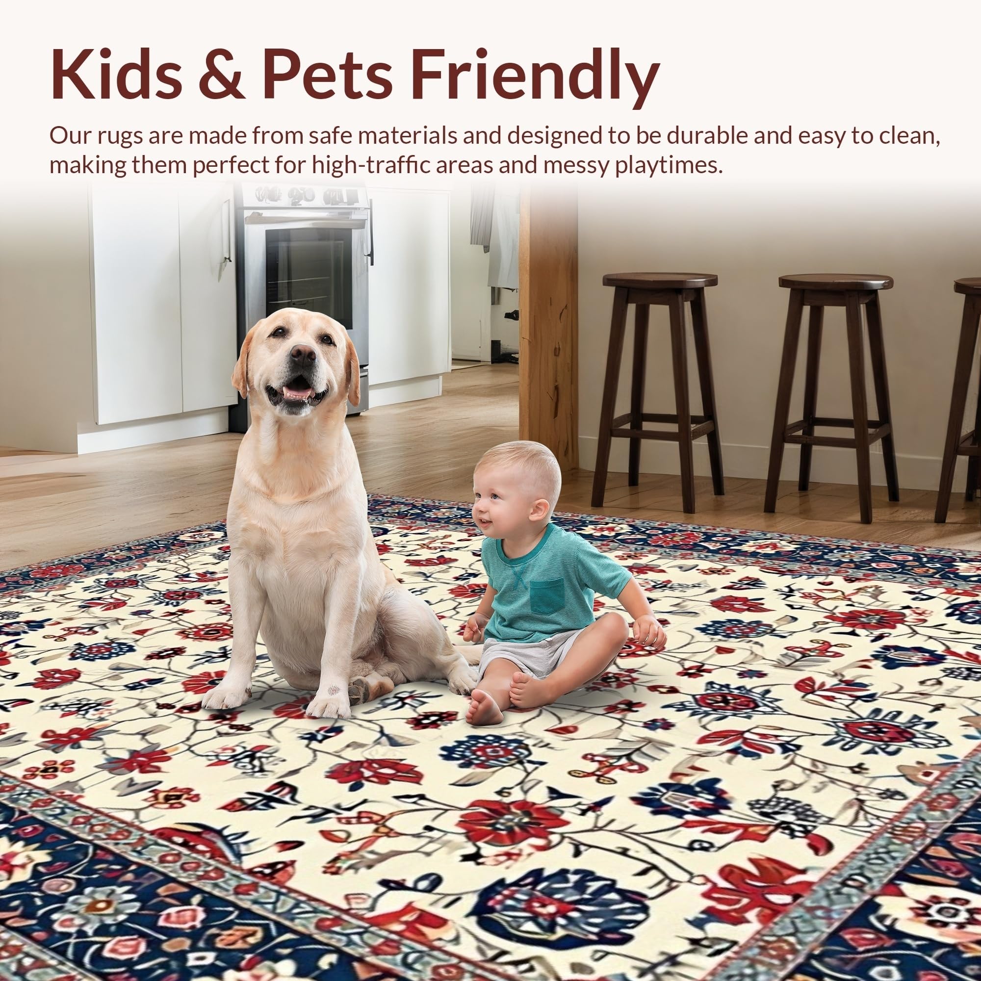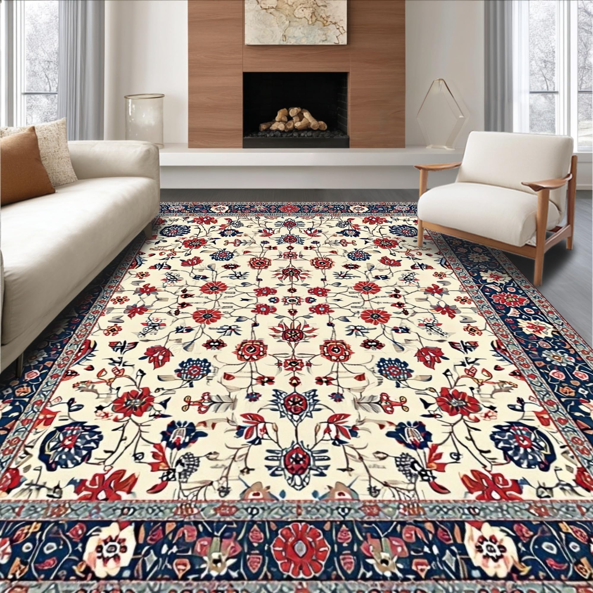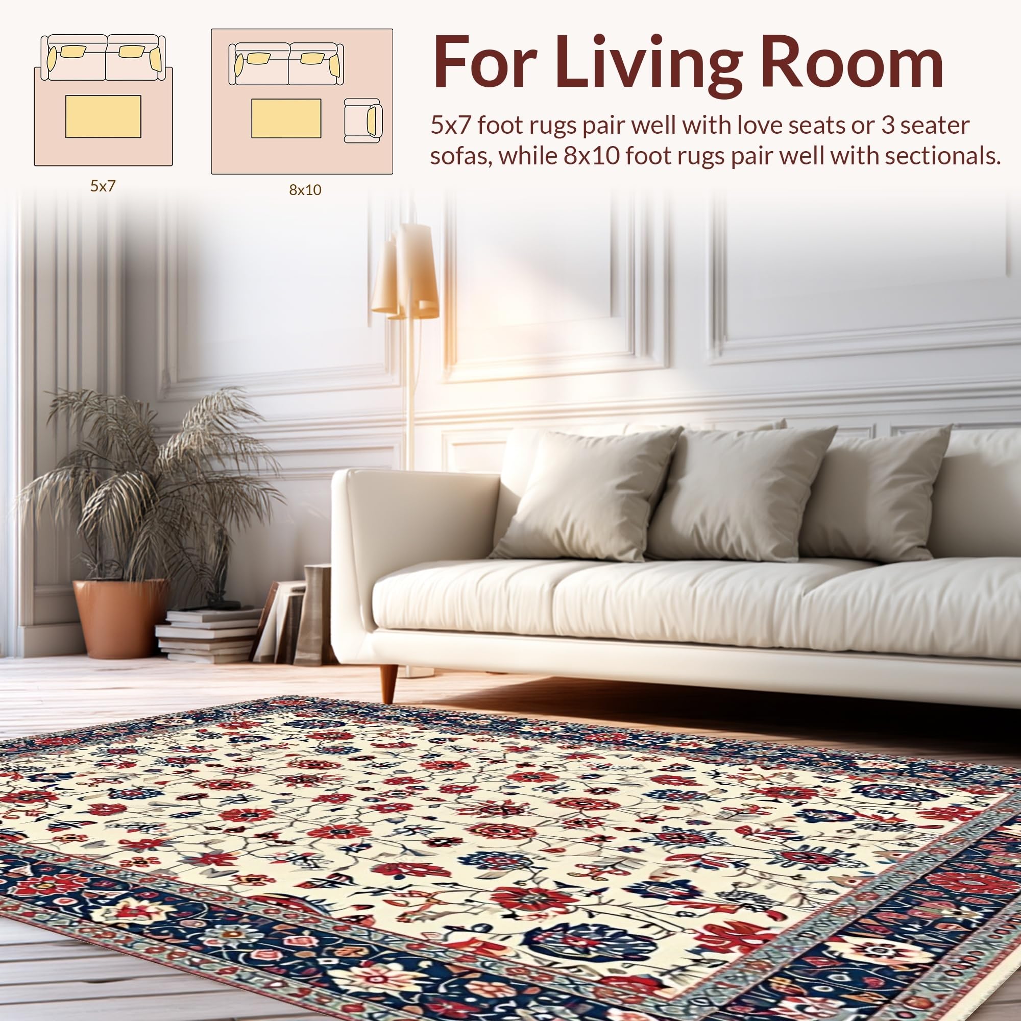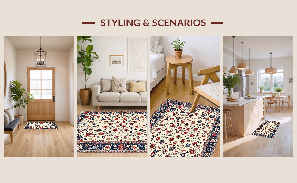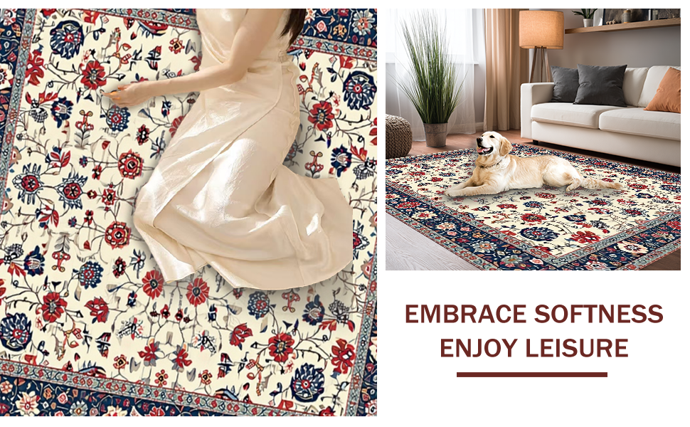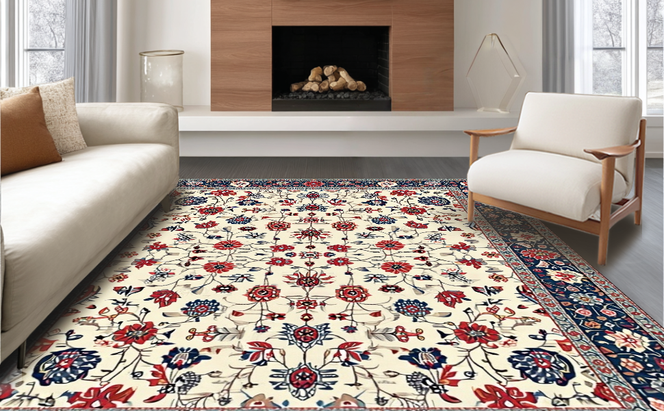 Ultra Soft Area Rug, Non Slip, Stain Resistant, Washable Area Rugs for Living Room, Bedroom, Whimsical Distressed Flower Arrangement(Ivory) Overview: