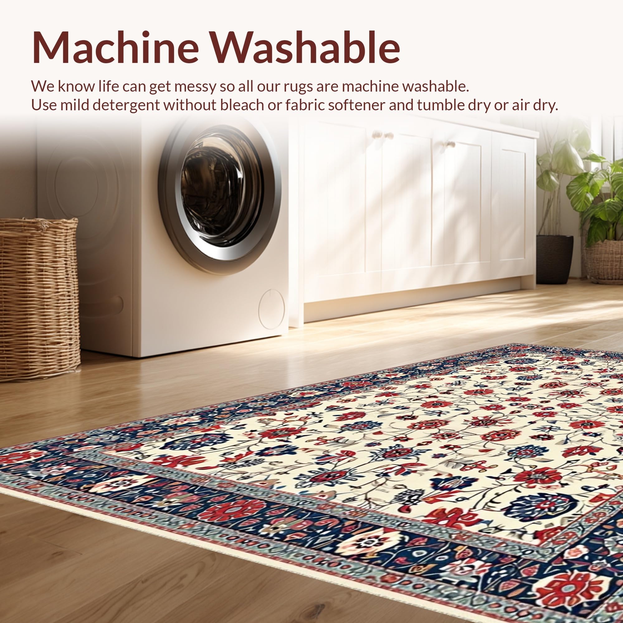 - Machine Washable: Our rugs can be easily thrown in the wash machine.
