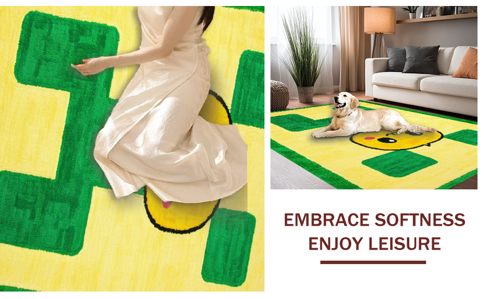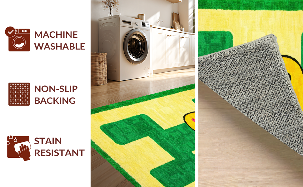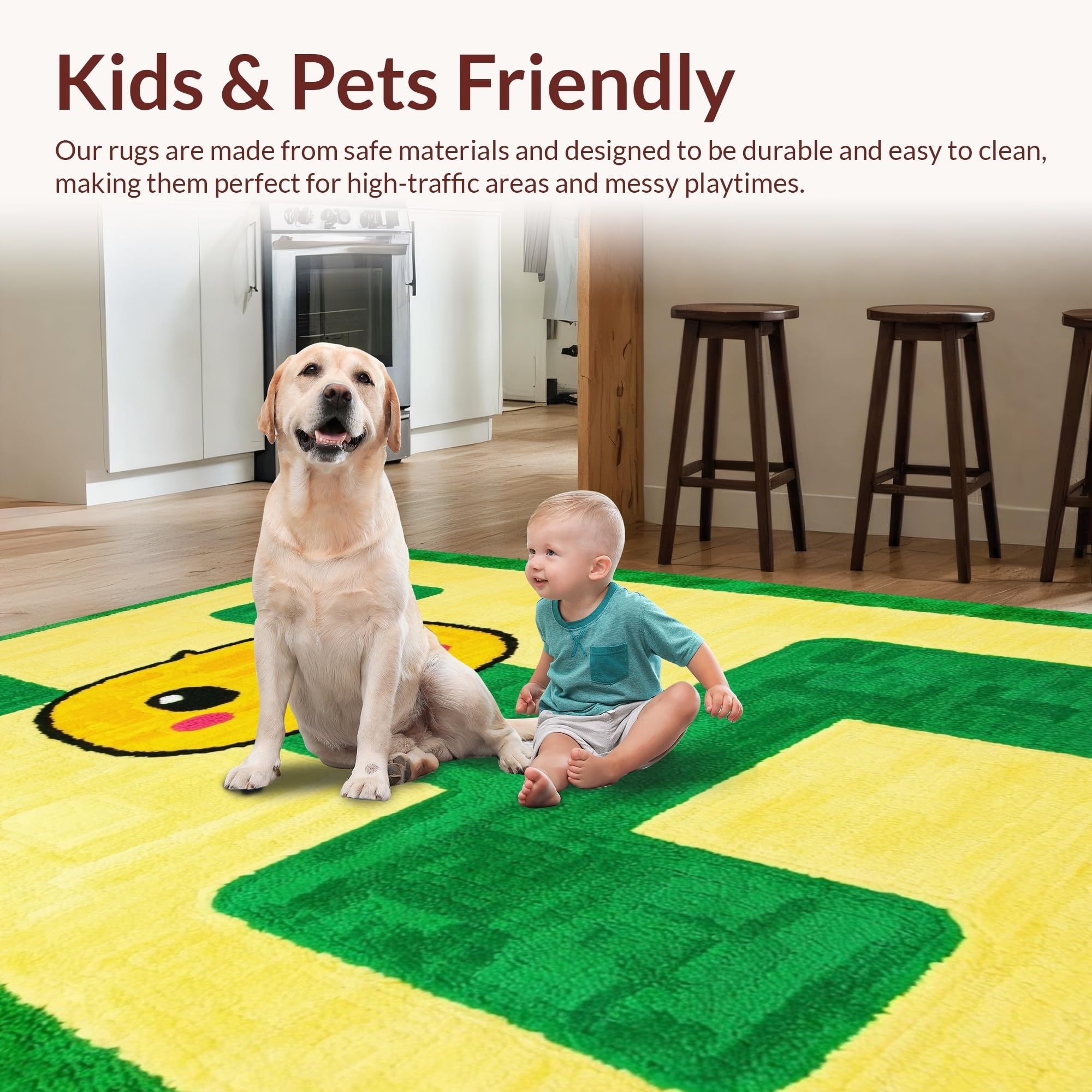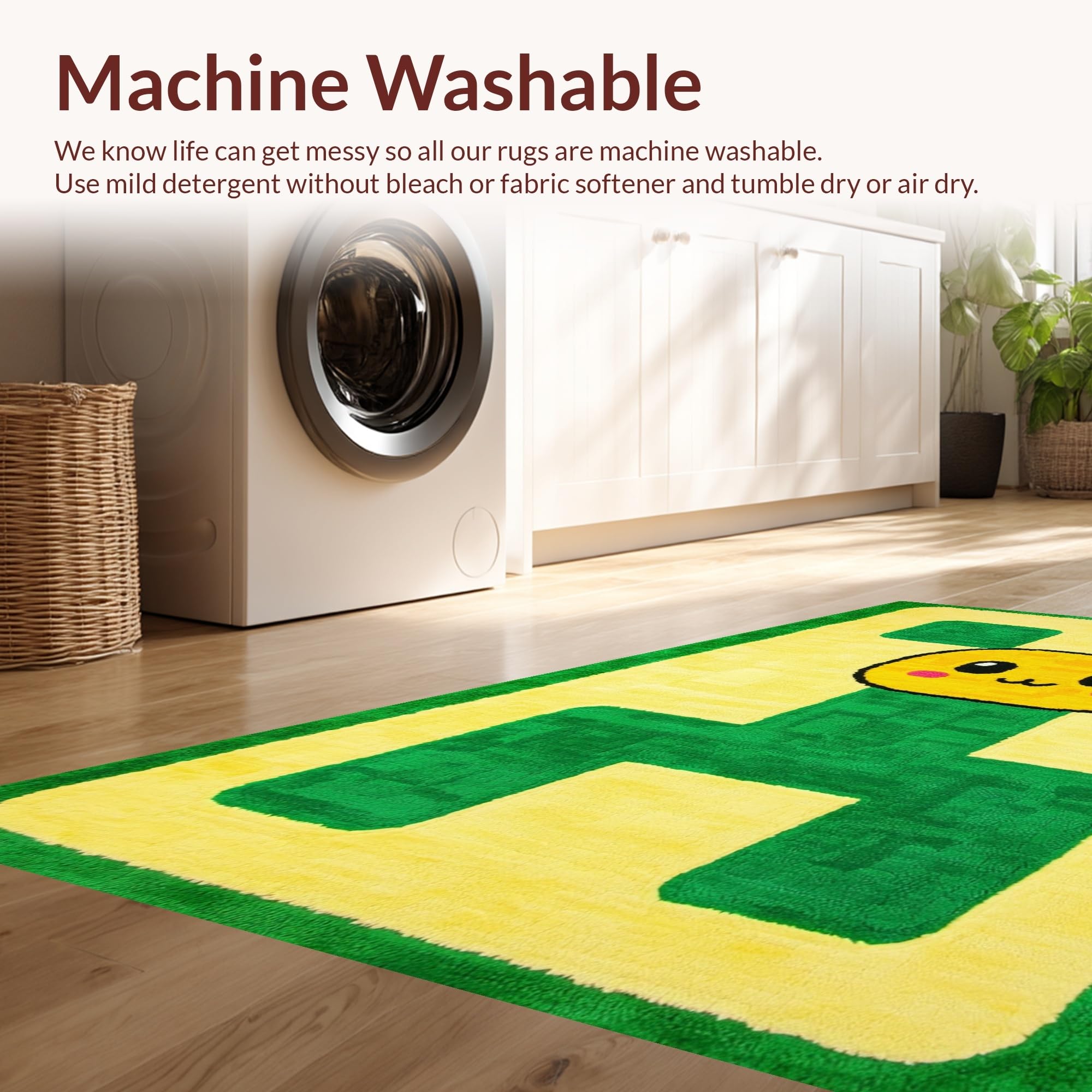 Ultra Soft Area Rug, Non Slip, Stain Resistant, Washable Area Rugs for Living Room, Bedroom, Whimsical Educational Creature Design(Yellow) Overview: