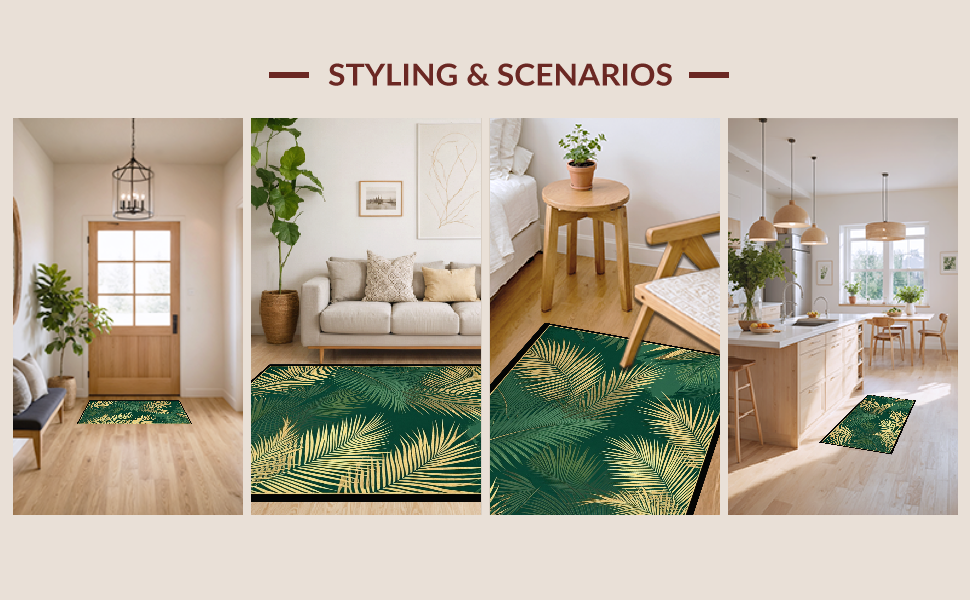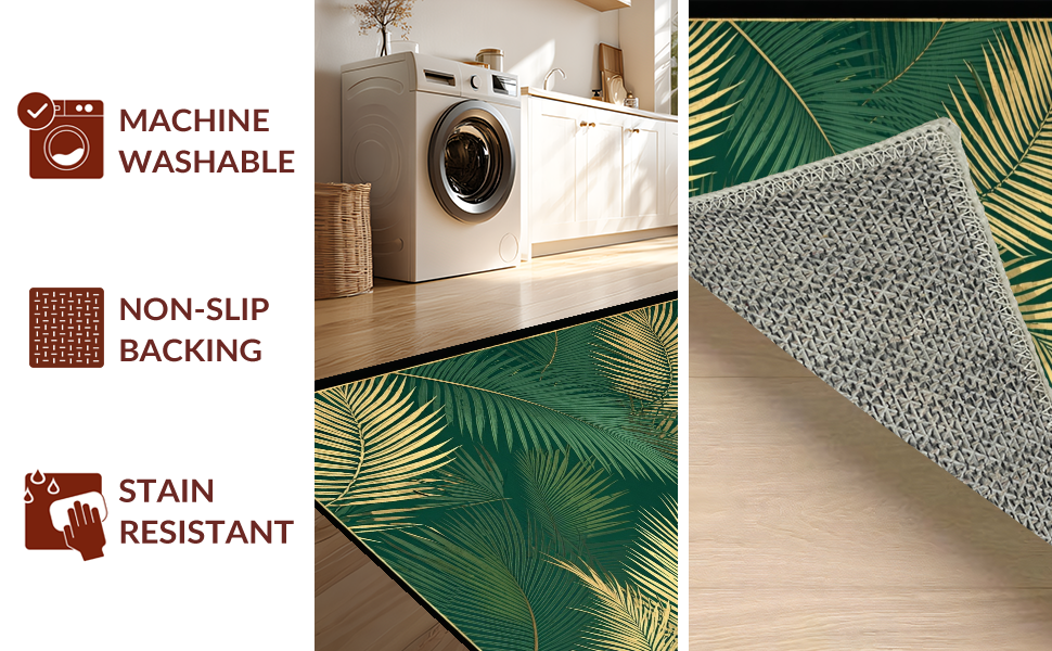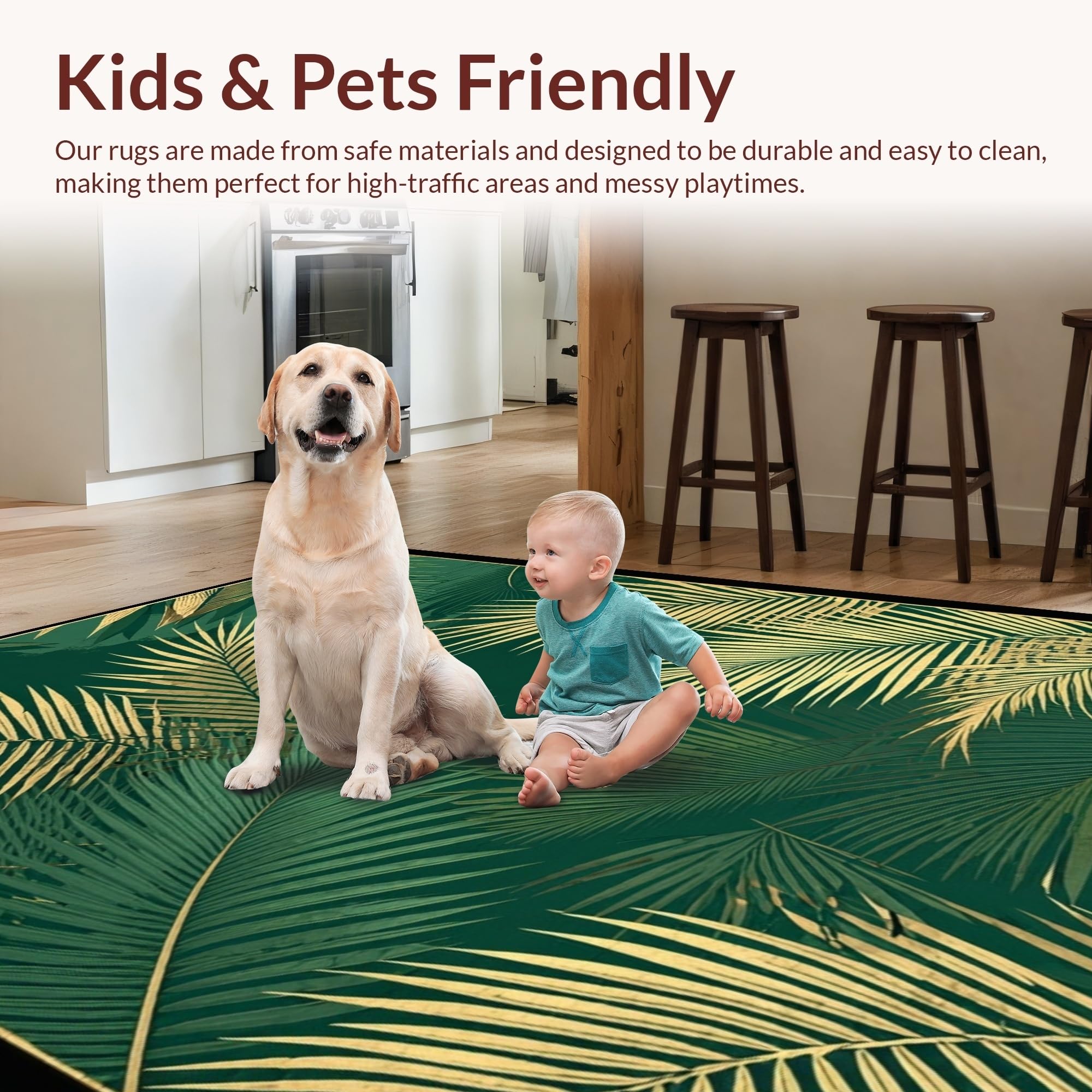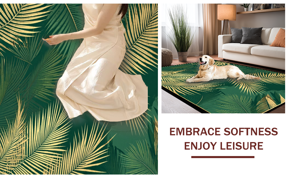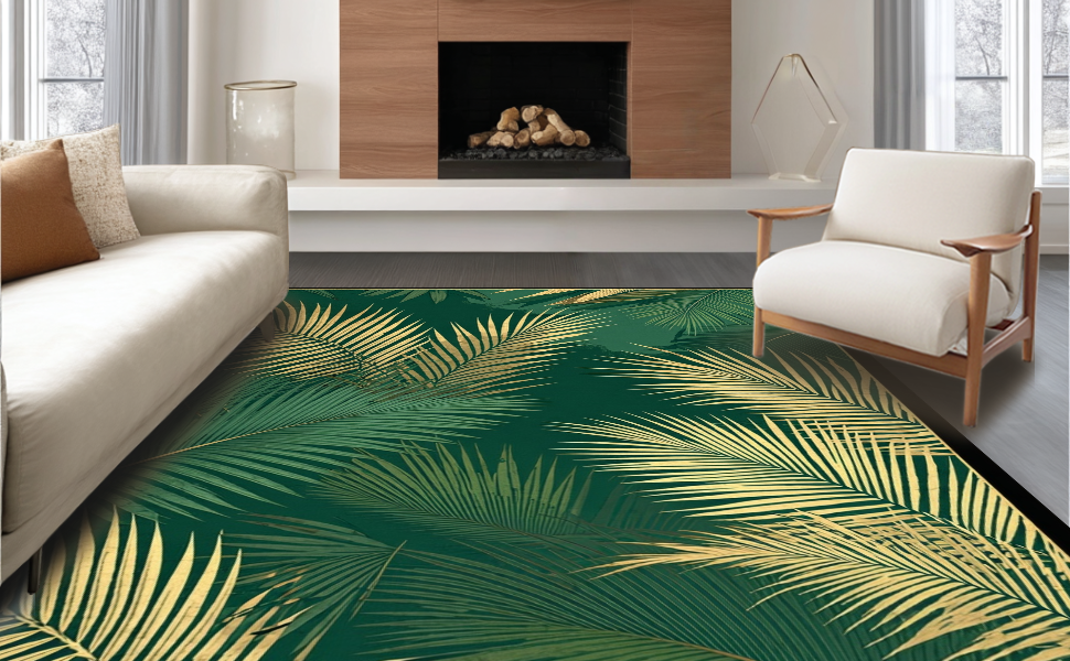 Ultra Soft Area Rug, Non Slip, Stain Resistant, Washable Area Rugs for Living Room, Bedroom, Whimsical Fern Graphic Style(Green) Overview:
