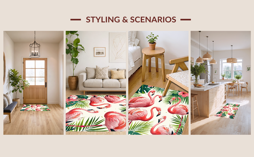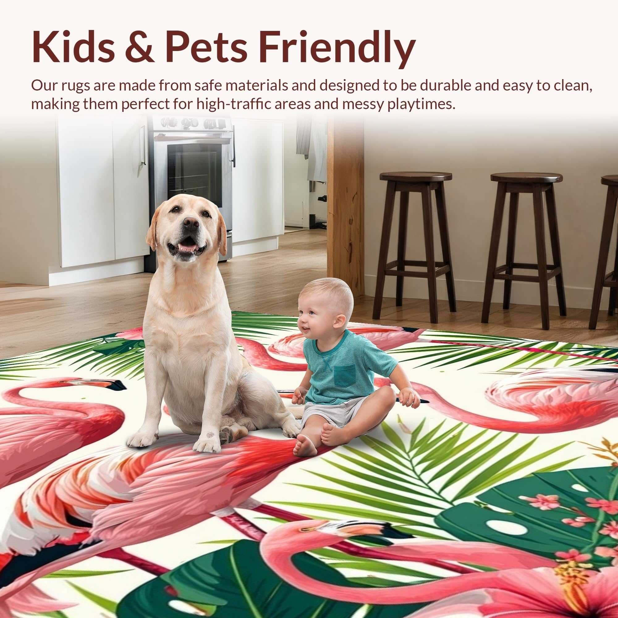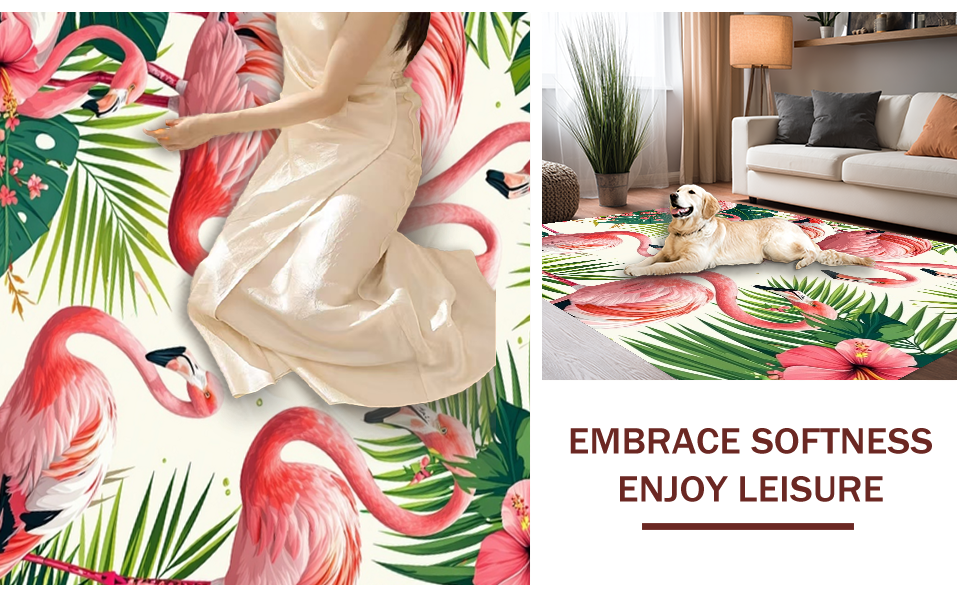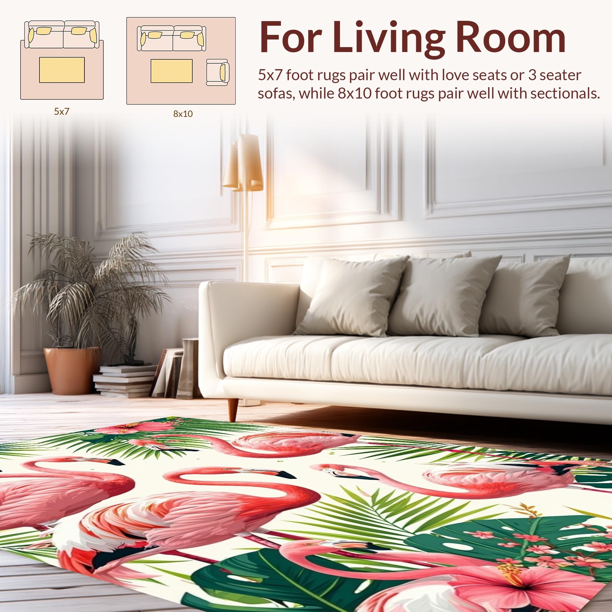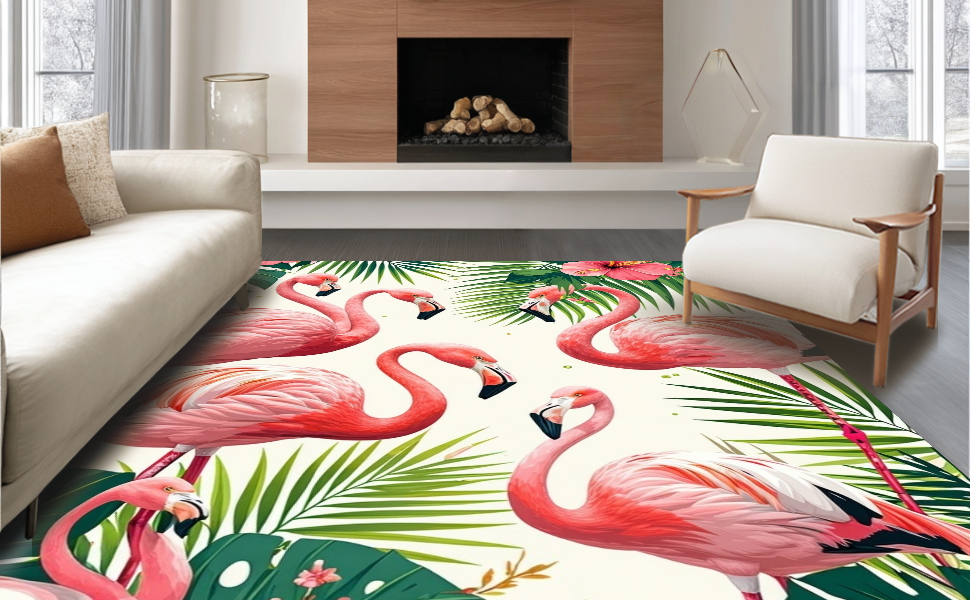 Ultra Soft Area Rug, Non Slip, Stain Resistant, Washable Area Rugs for Living Room, Bedroom, Whimsical Flamingo Tropical Style(Pink) Overview: