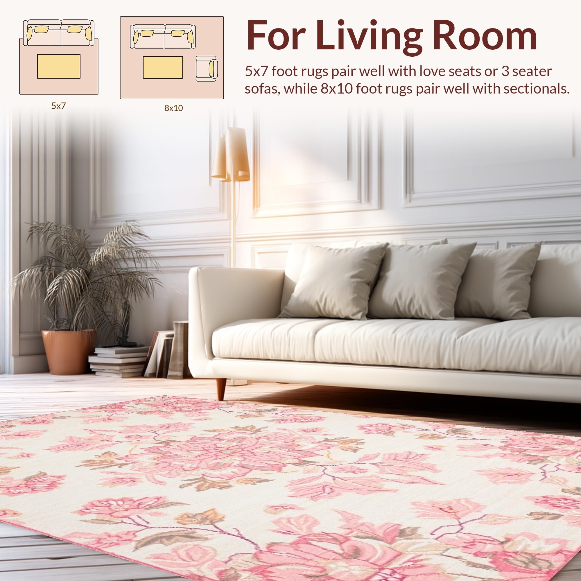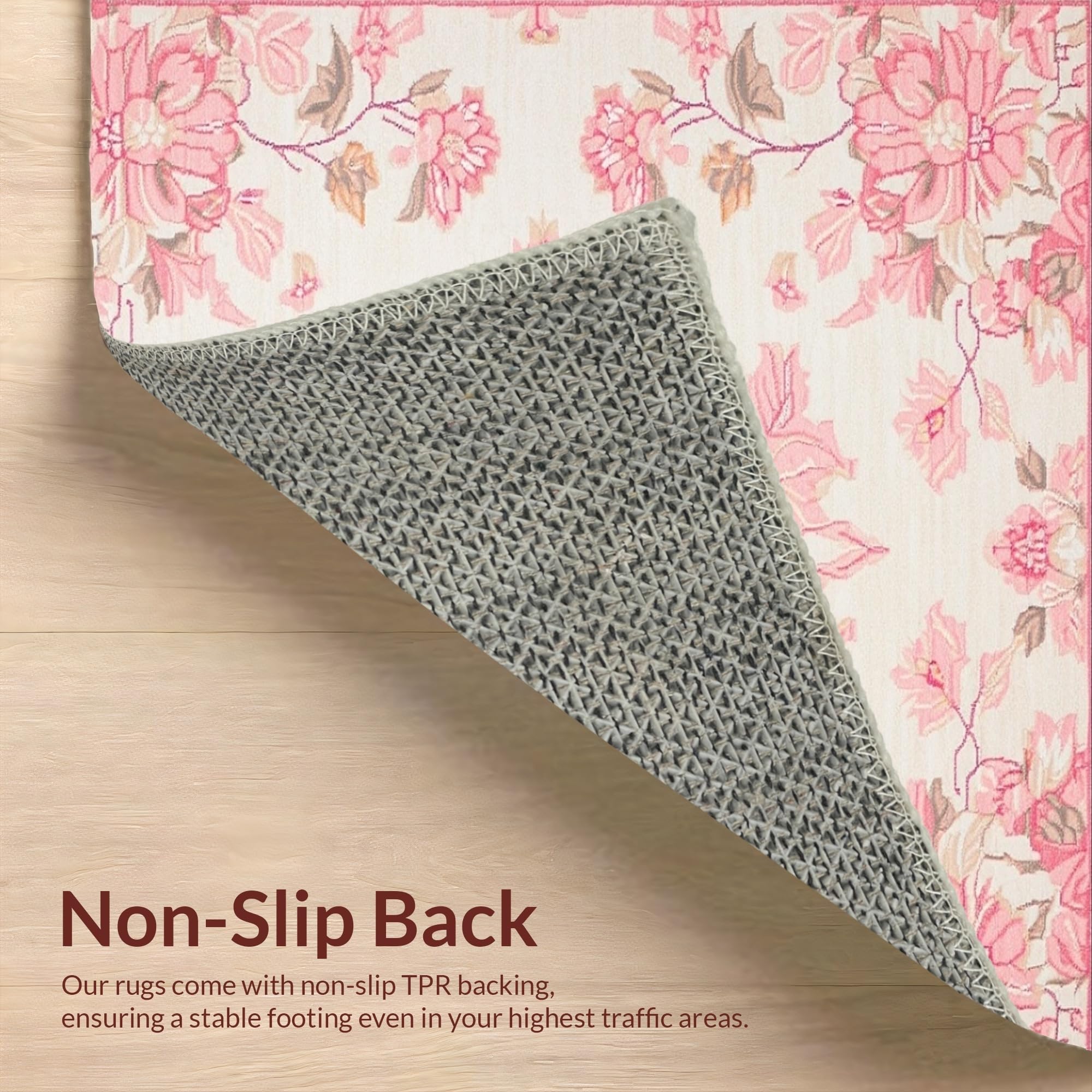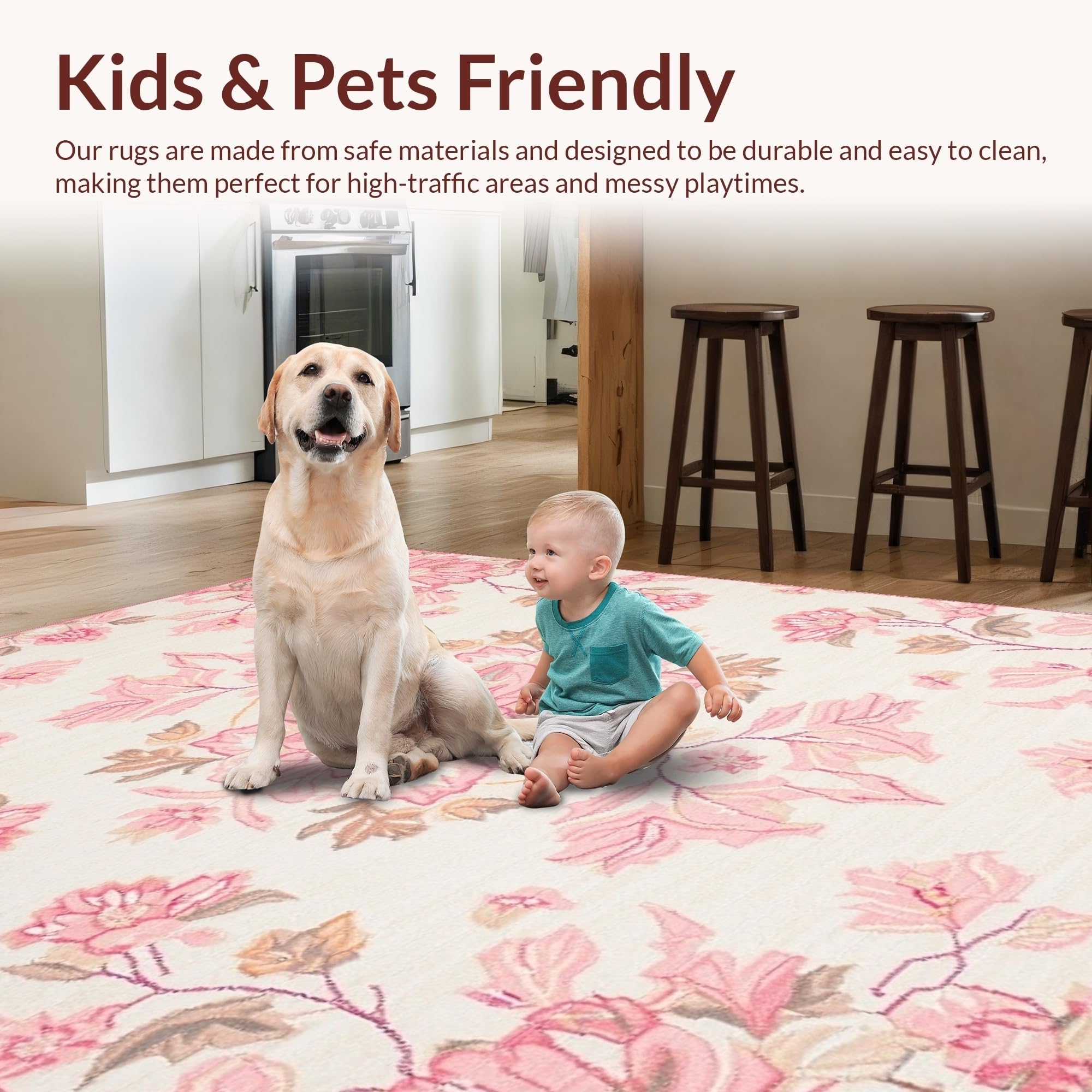 Ultra Soft Area Rug, Non Slip, Stain Resistant, Washable Area Rugs for Living Room, Bedroom, Whimsical Floral Dreamscape Design(Pink) Overview: