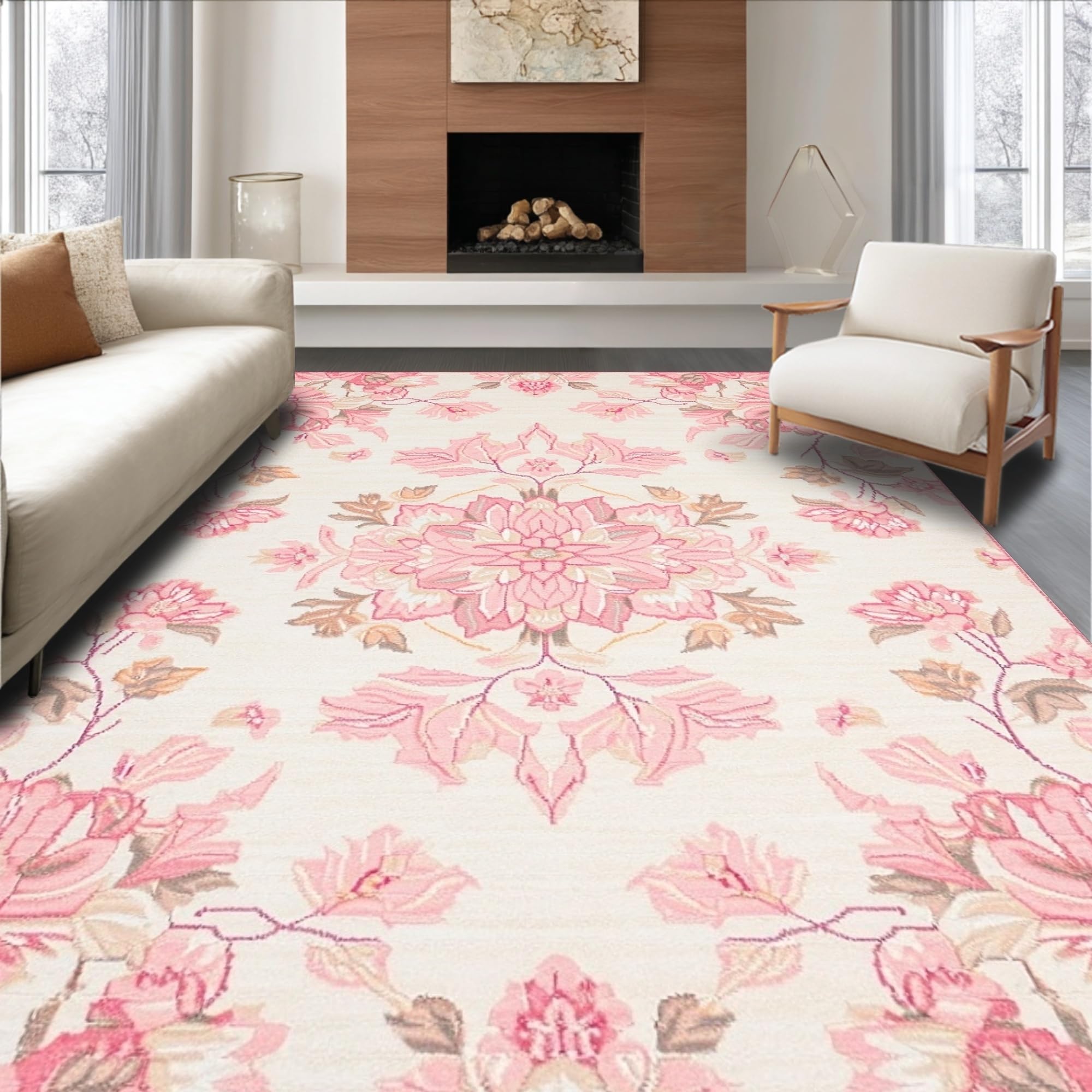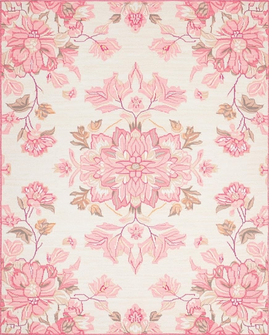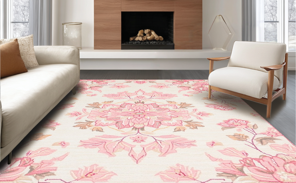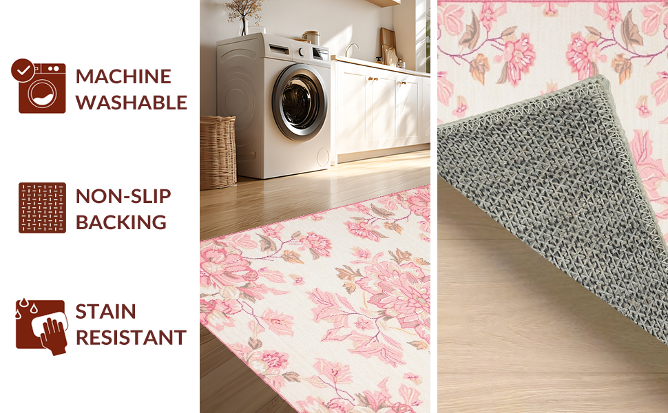 Ultra Soft Area Rug, Non Slip, Stain Resistant, Washable Area Rugs for Living Room, Bedroom, Whimsical Floral Dreamscape Design(Pink) Overview:
