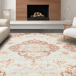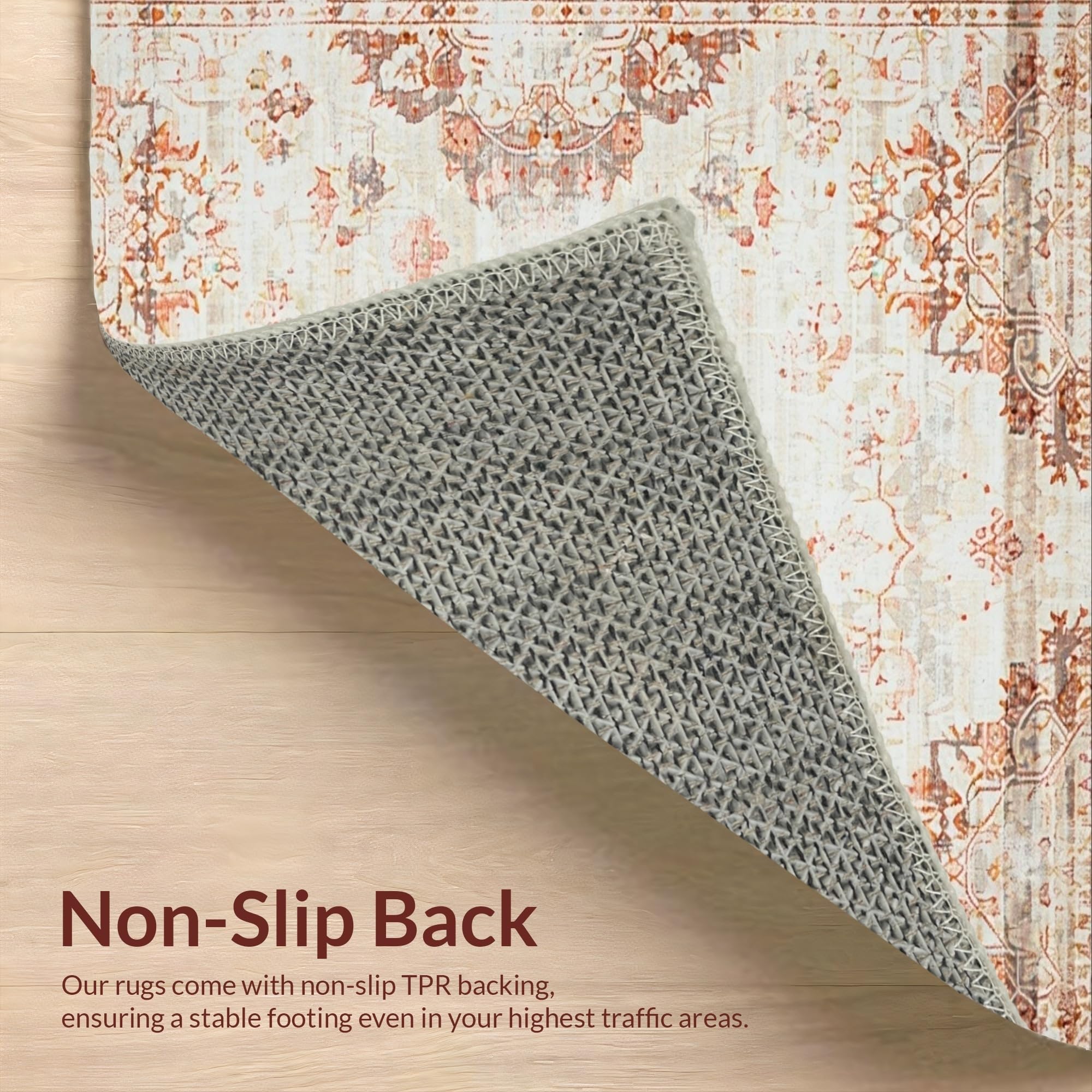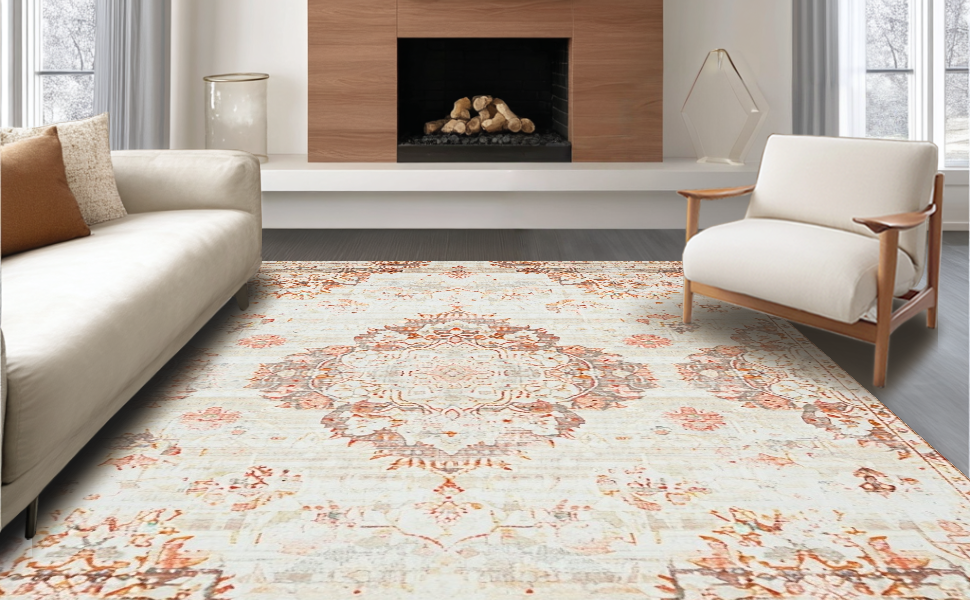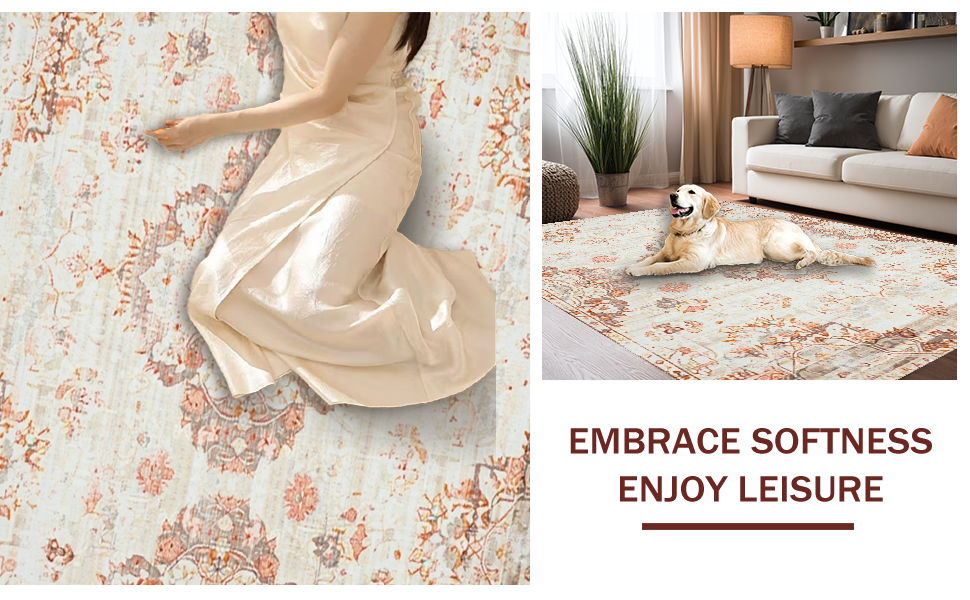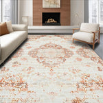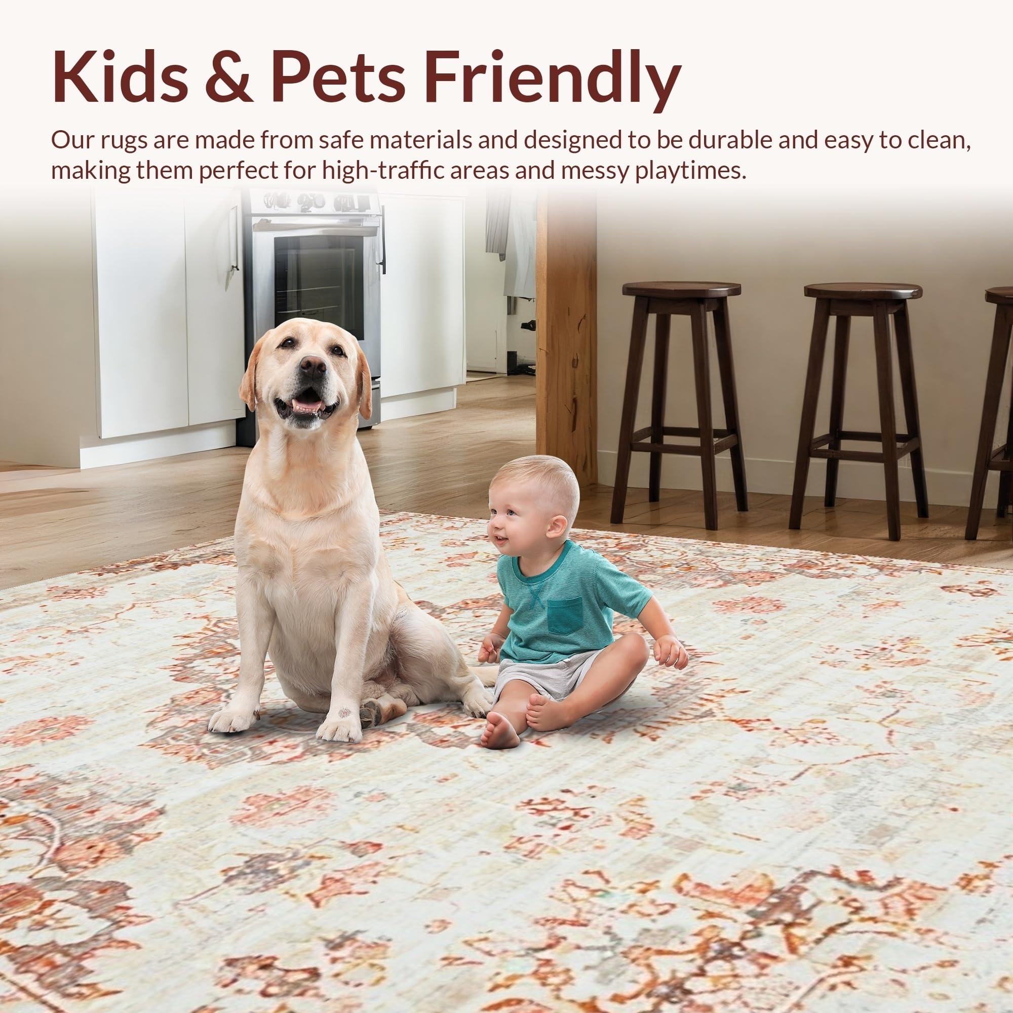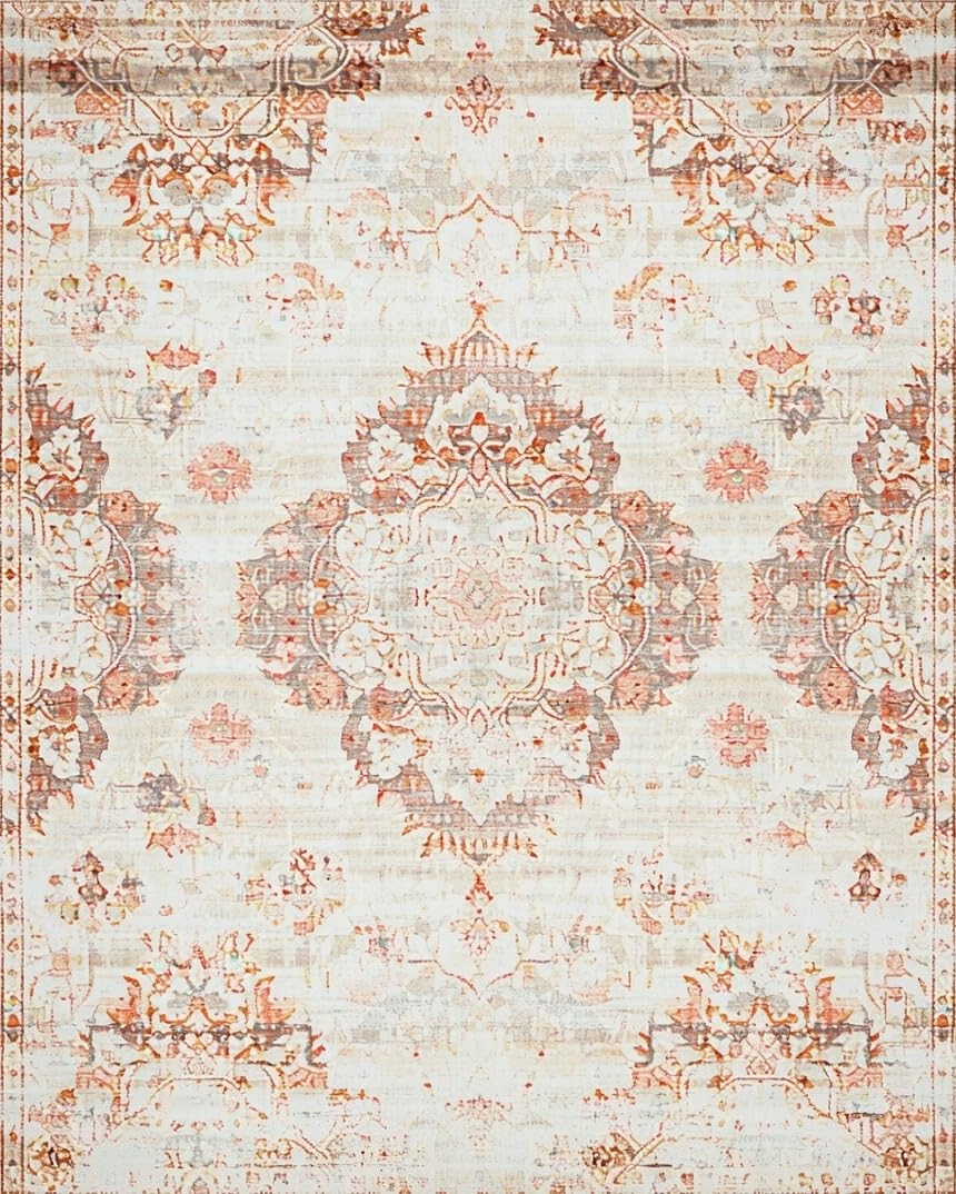 Ultra Soft Area Rug, Non Slip, Stain Resistant, Washable Area Rugs for Living Room, Bedroom, Whimsical Floral Ogee Design(Ivory) Overview: