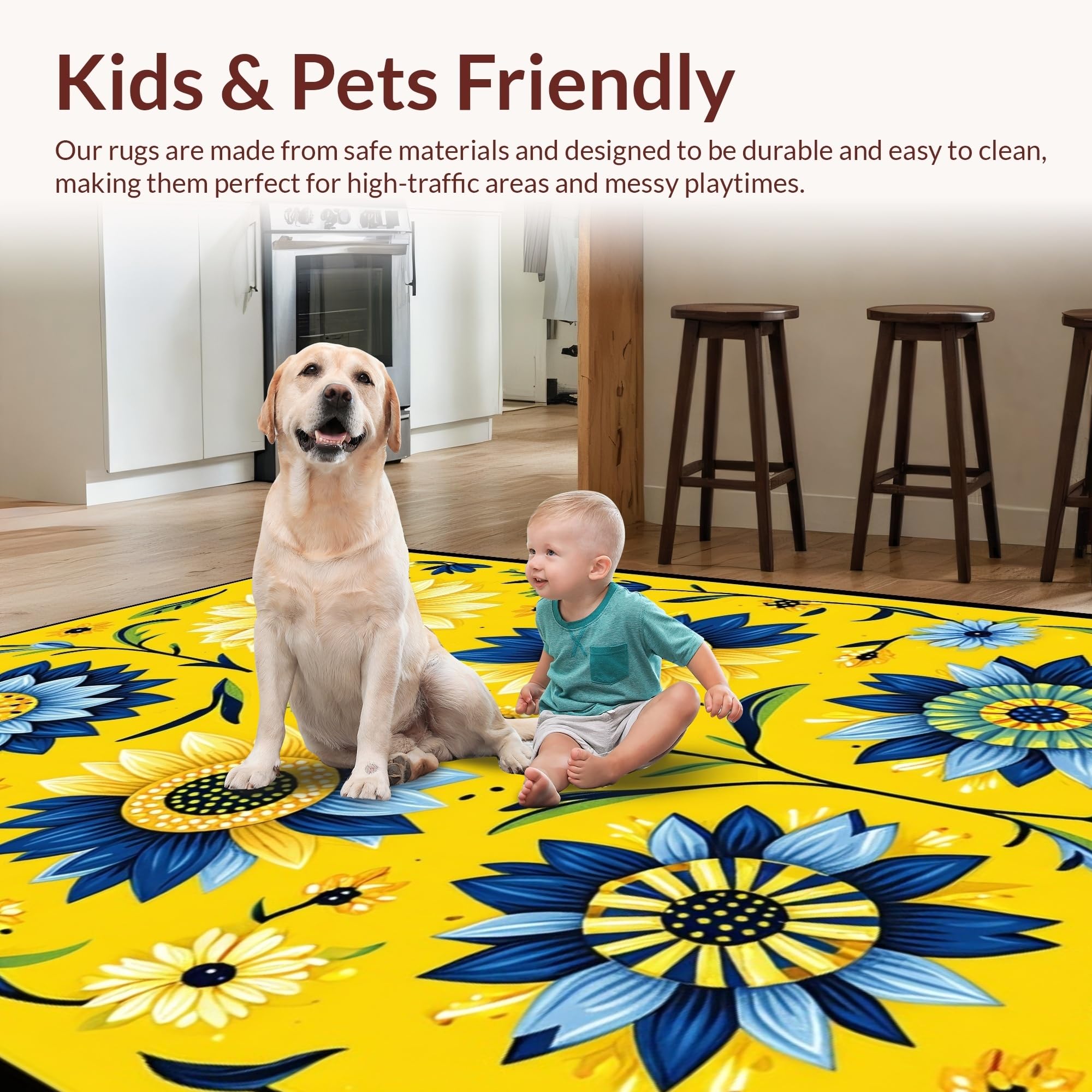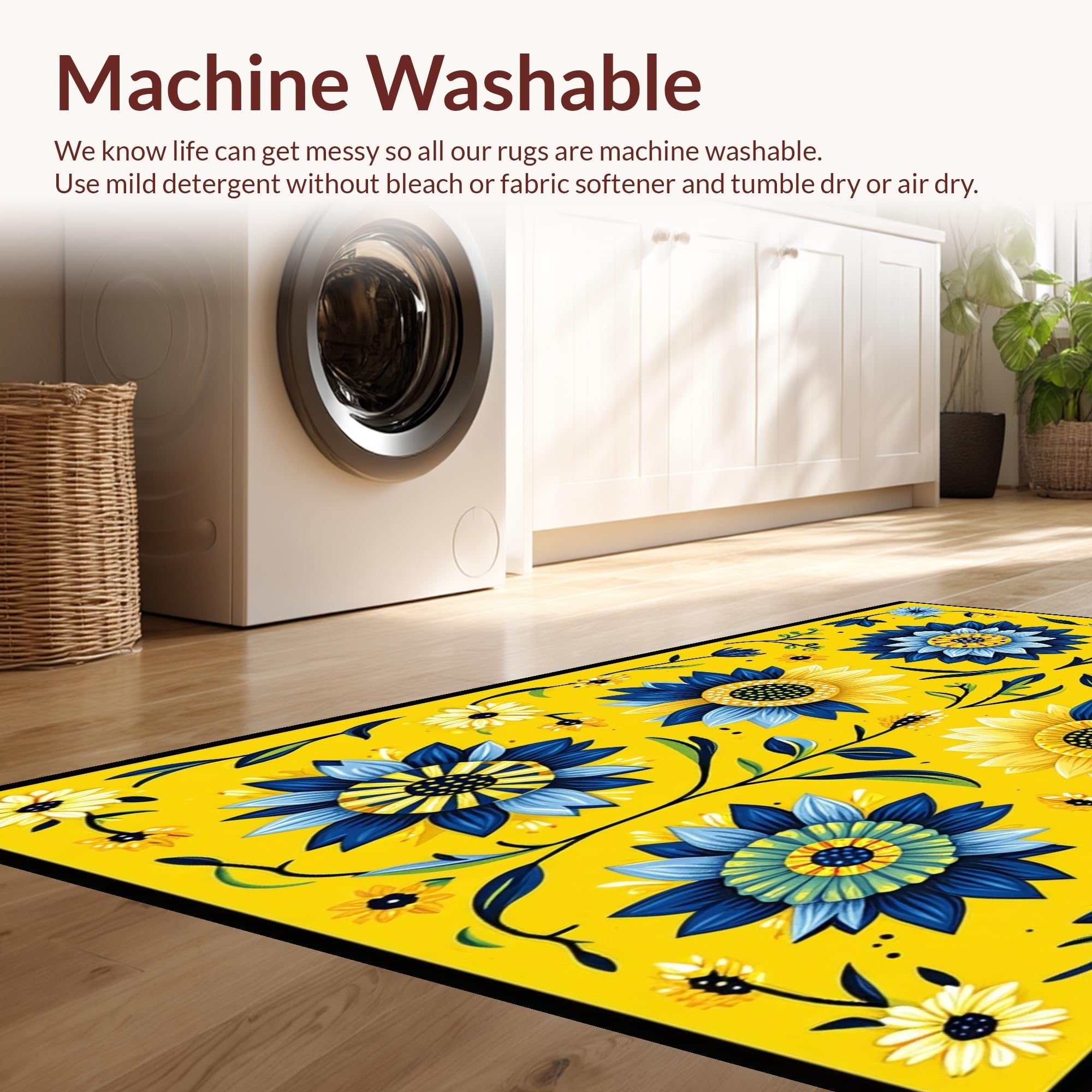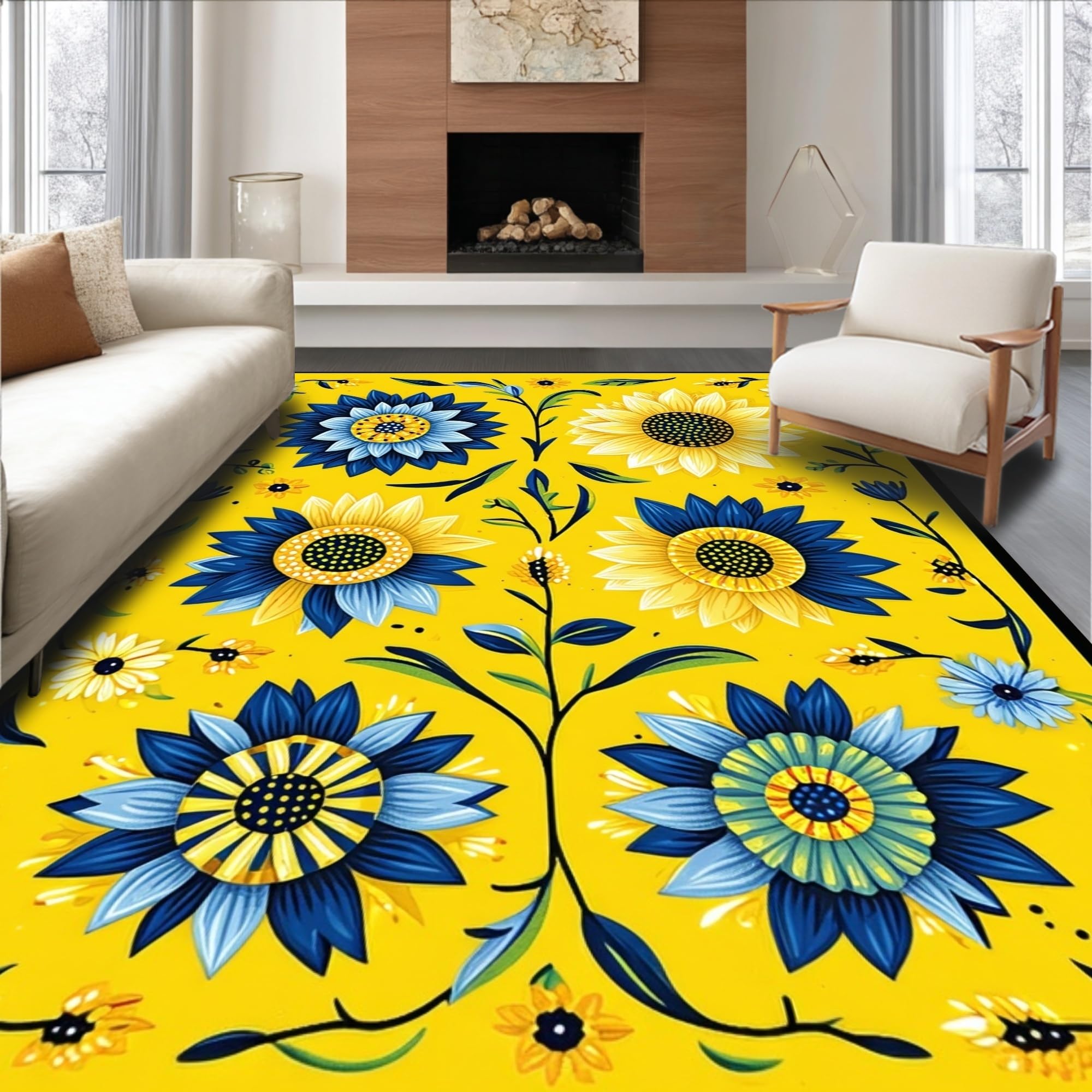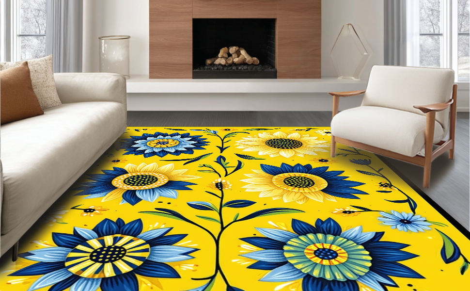 Ultra Soft Area Rug, Non Slip, Stain Resistant, Washable Area Rugs for Living Room, Bedroom, Whimsical Floral Playful Aesthetic(Yellow) Overview: