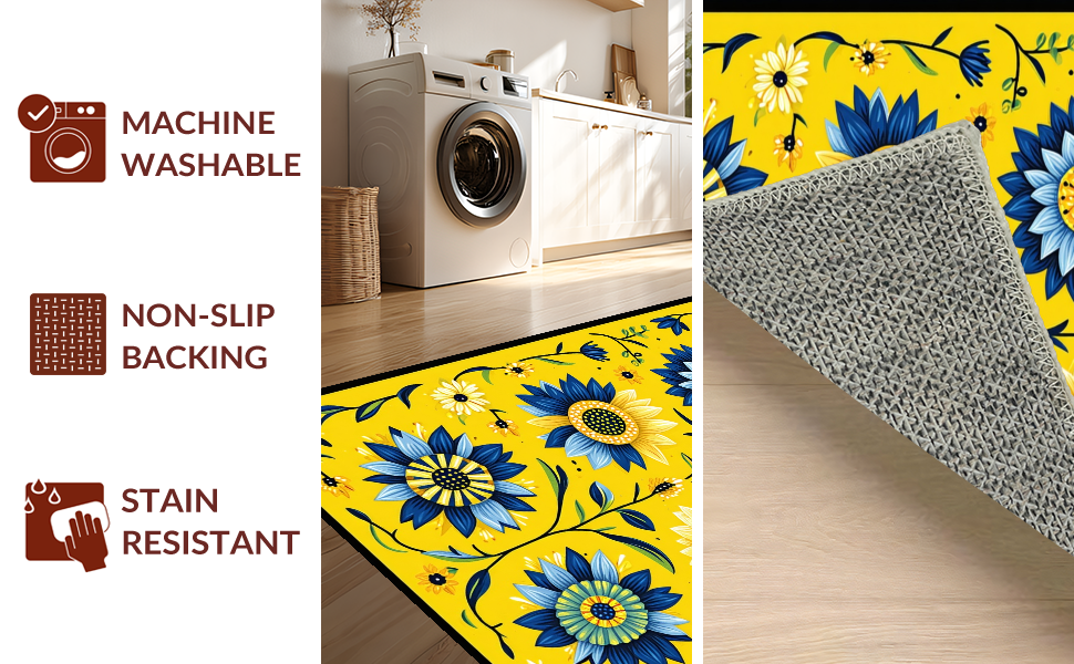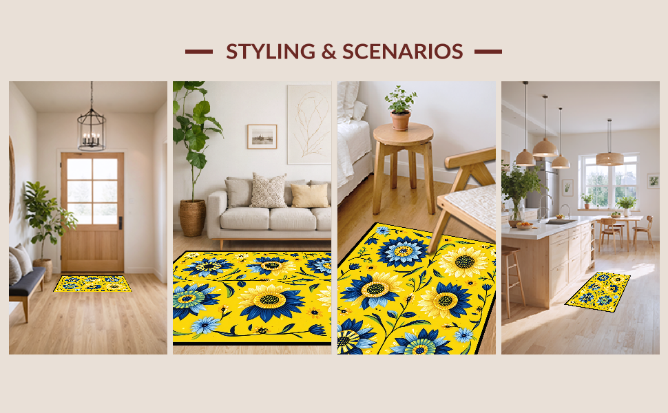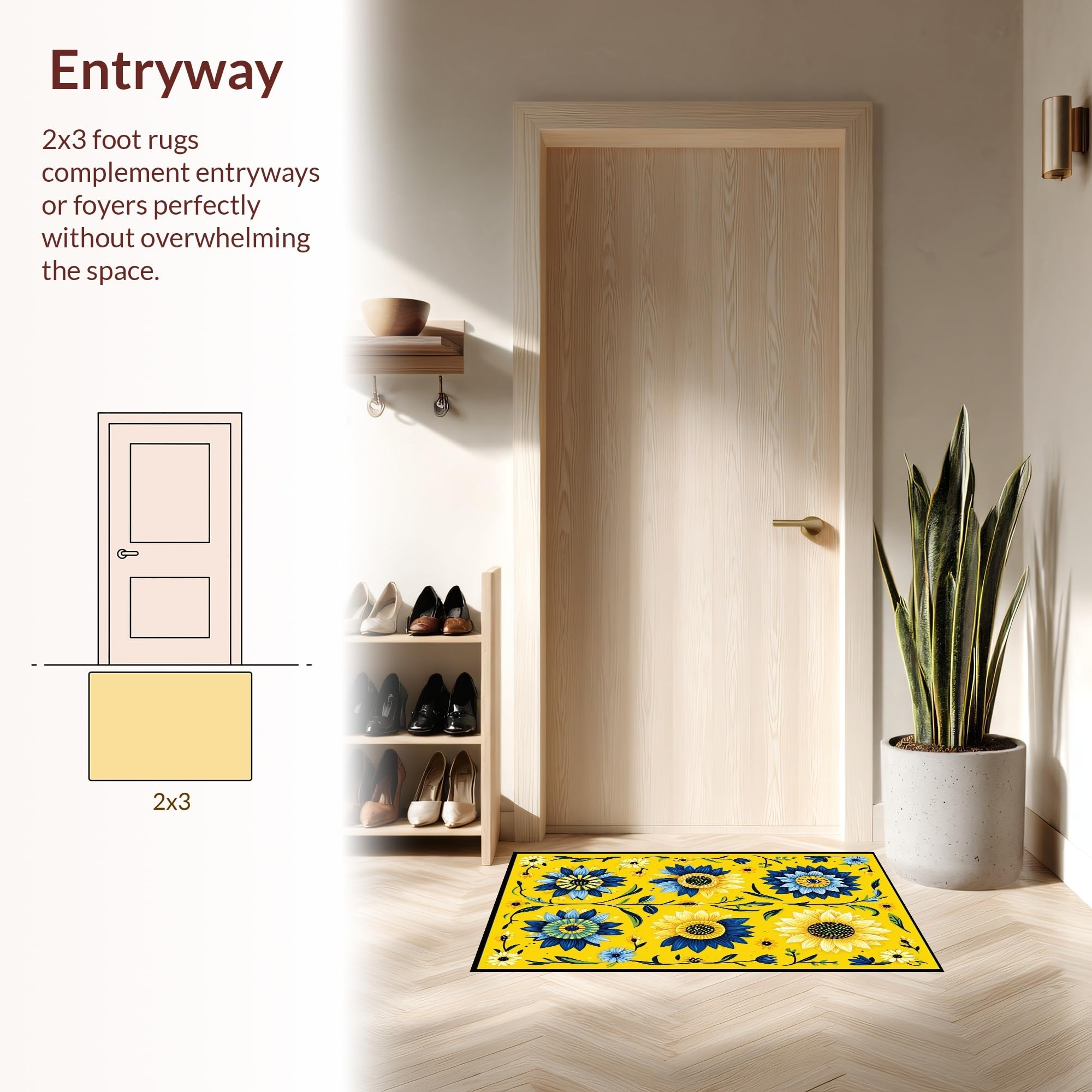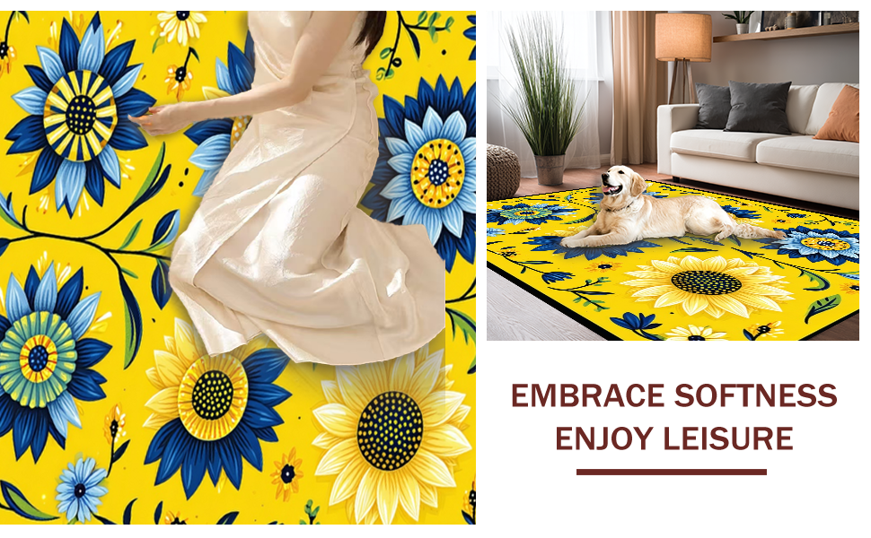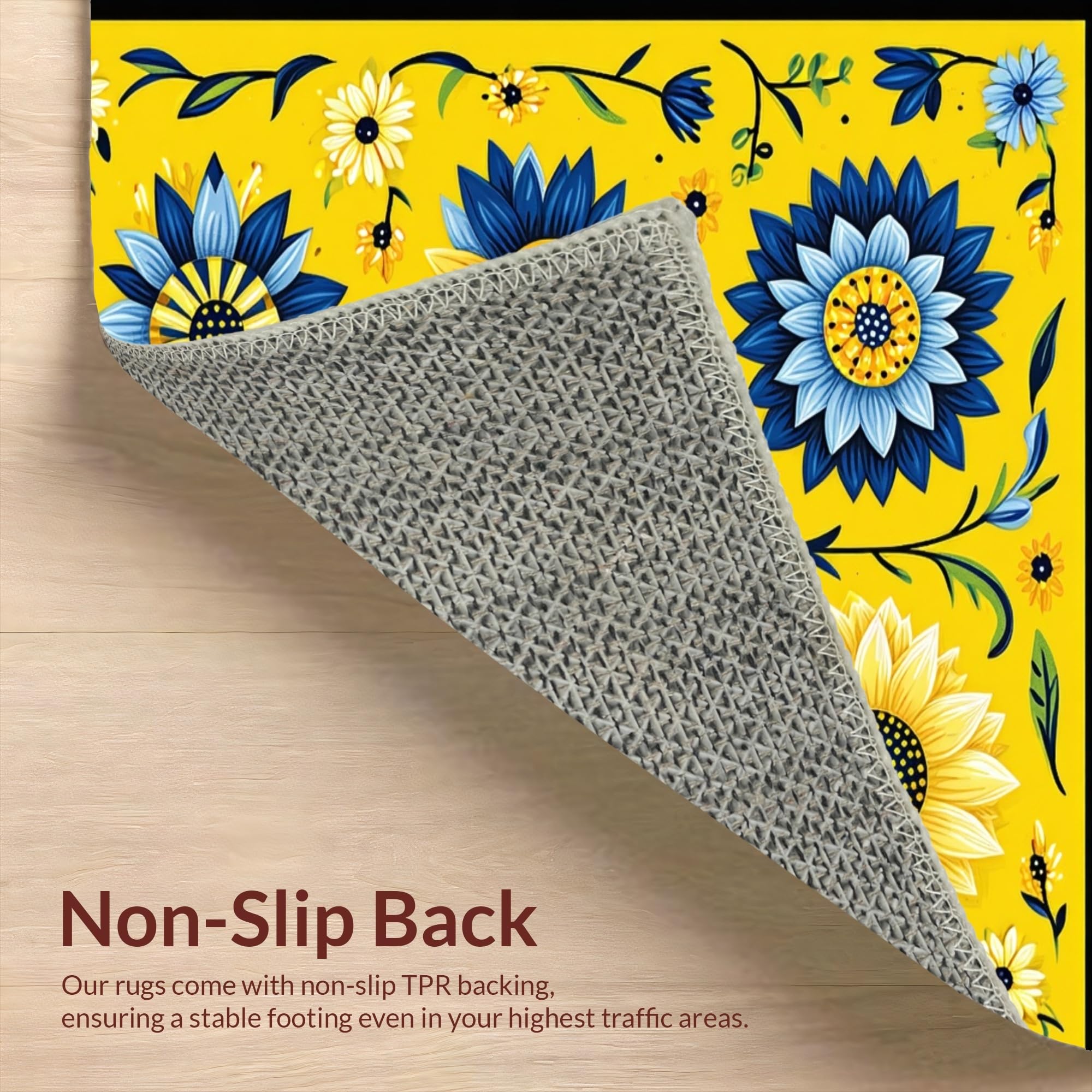 Ultra Soft Area Rug, Non Slip, Stain Resistant, Washable Area Rugs for Living Room, Bedroom, Whimsical Floral Playful Aesthetic(Yellow) Overview: