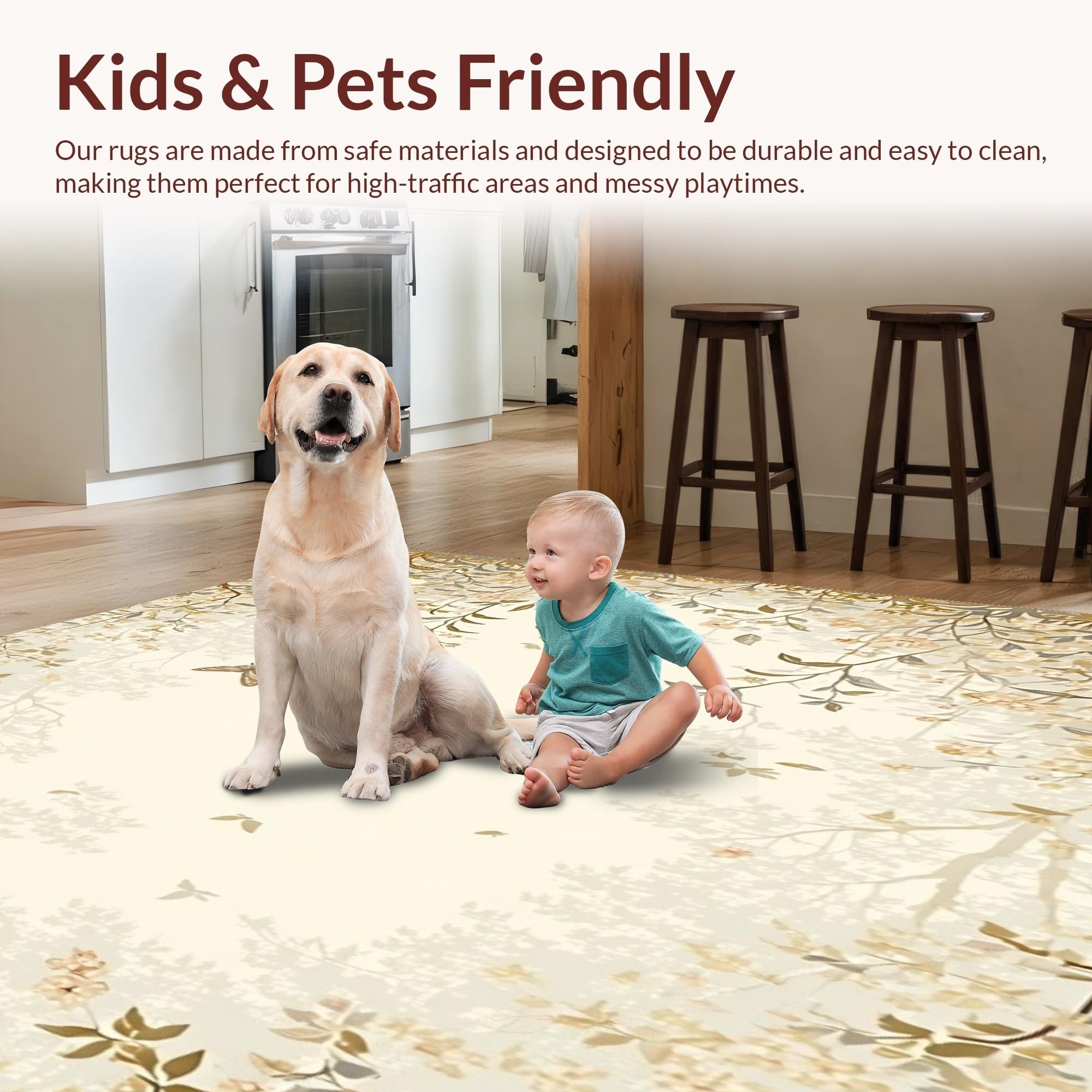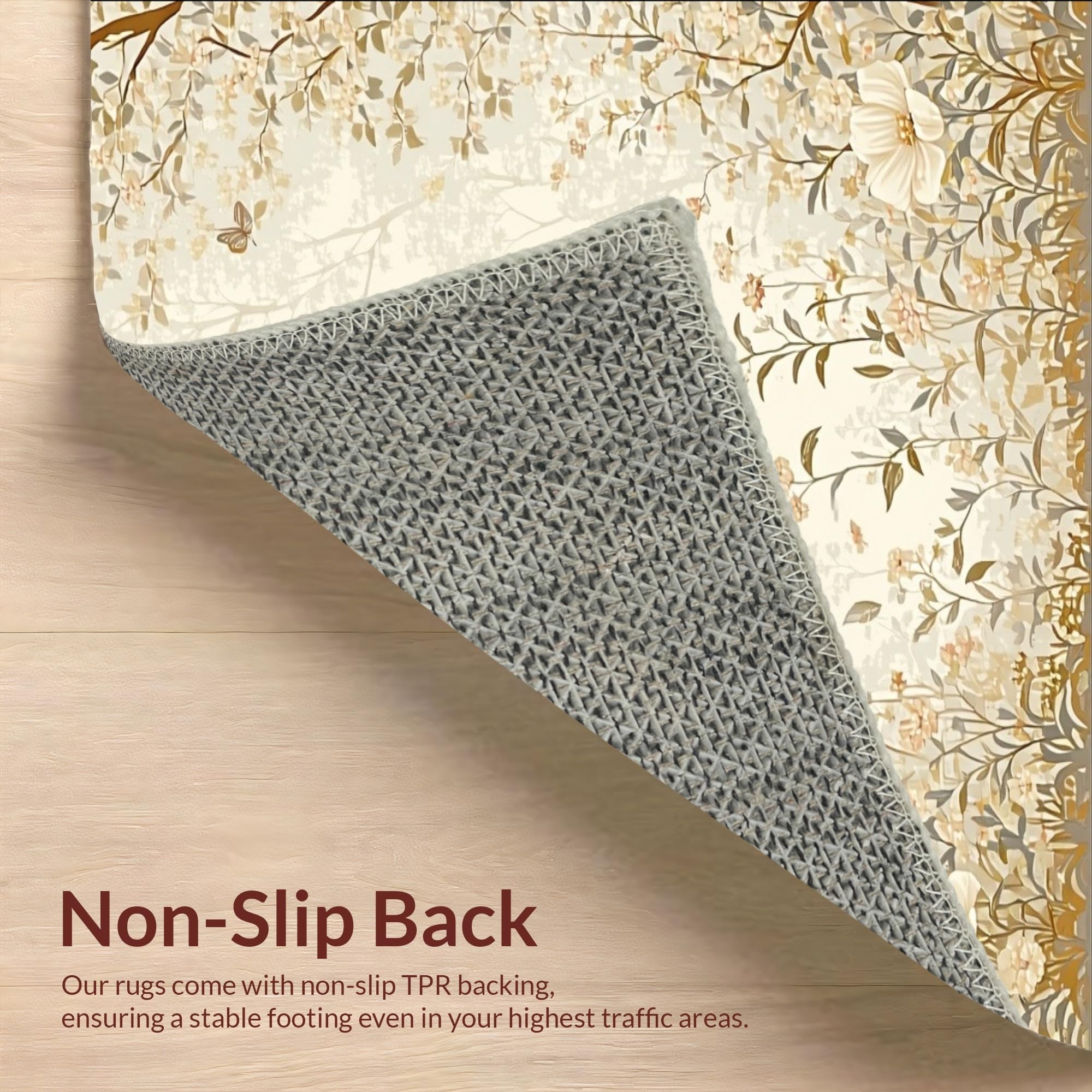 Ultra Soft Area Rug, Non Slip, Stain Resistant, Washable Area Rugs for Living Room, Bedroom, Whimsical Flower Garden Beige Non Slip Entryway Bloom(Beige) Overview:
