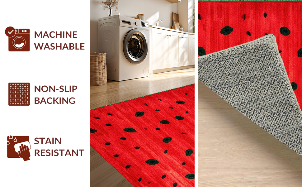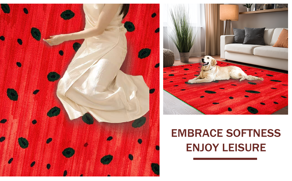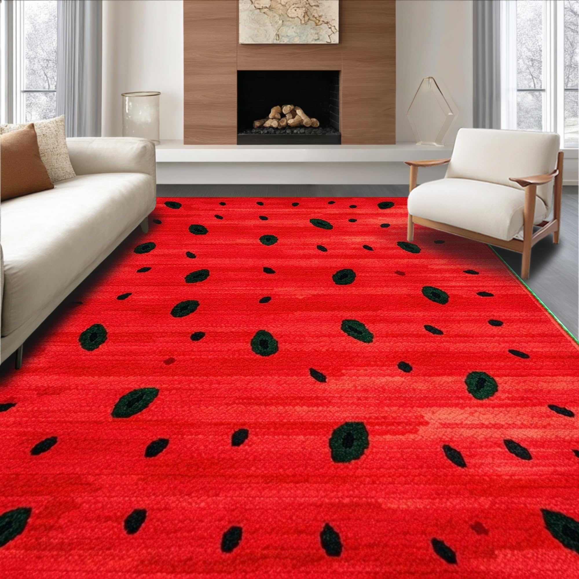 Ultra Soft Area Rug, Non Slip, Stain Resistant, Washable Area Rugs for Living Room, Bedroom, Whimsical Fruit Slice Aesthetic(Red) Overview: