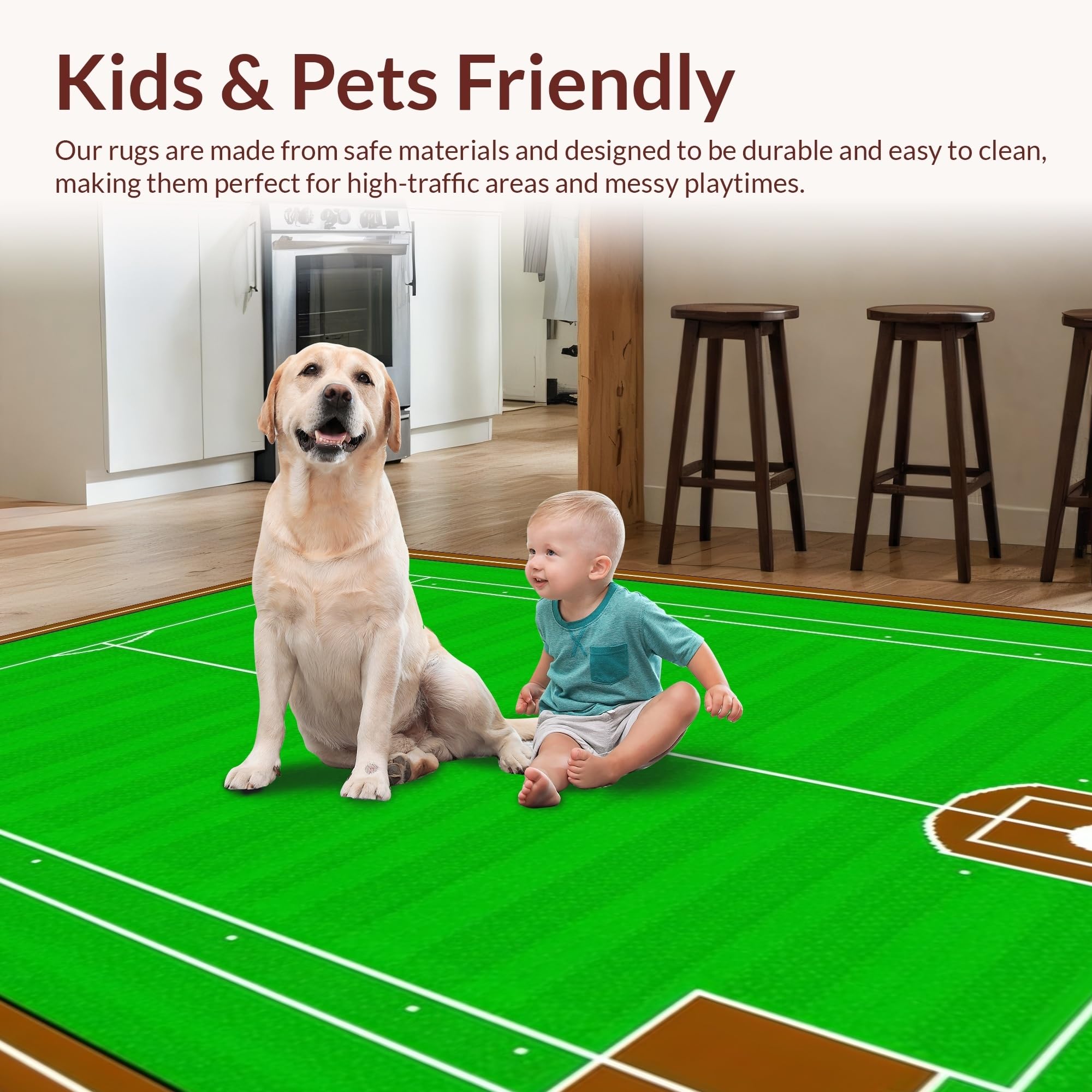 Ultra Soft Area Rug, Non Slip, Stain Resistant, Washable Area Rugs for Living Room, Bedroom, Whimsical Game Day Color Palette(Green) Overview:
