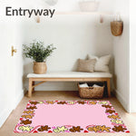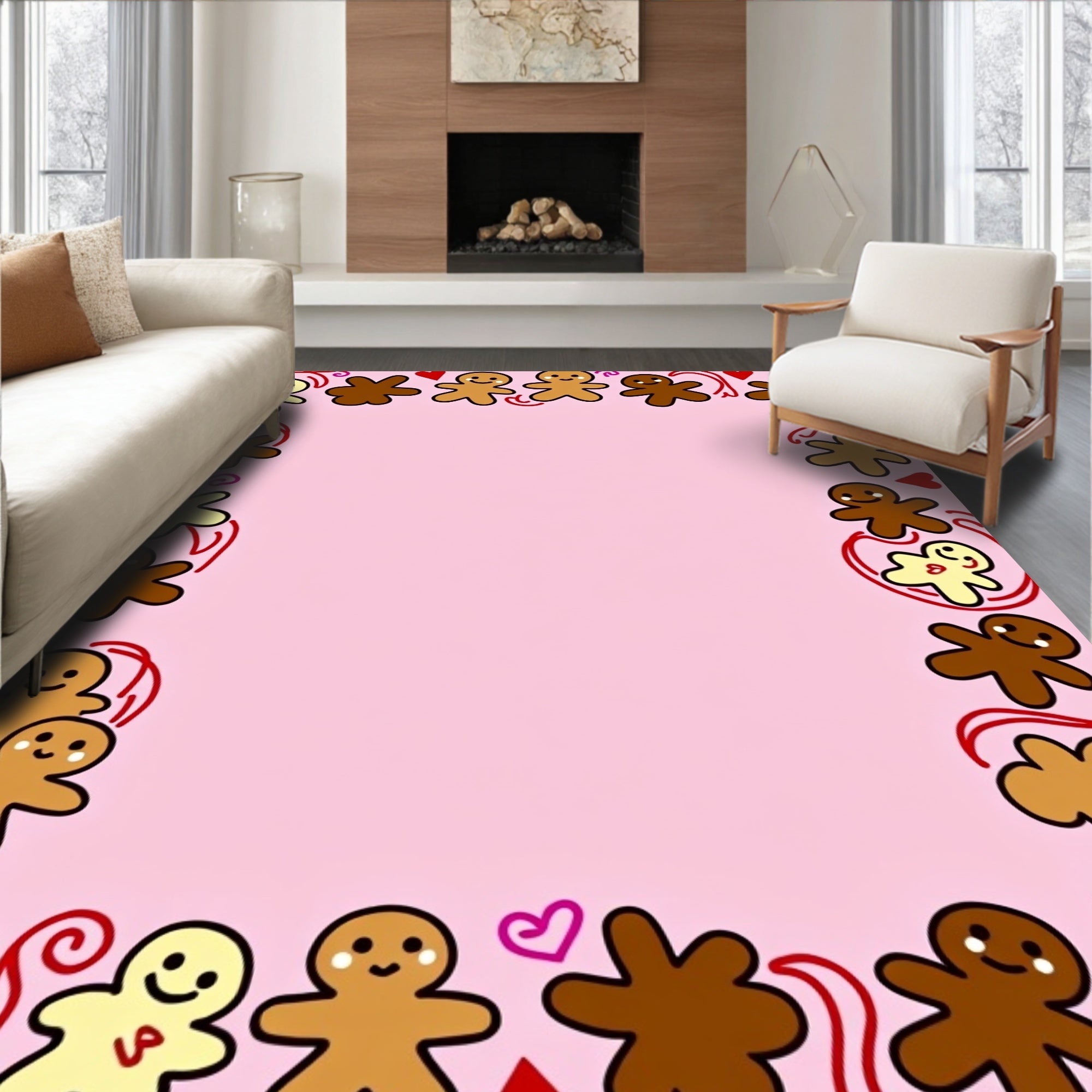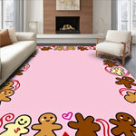 Flatwoven High Traffic Area Rug, Whimsical Gingerbread Gathering with Twisted Cane and Sprinkled Details, Non Slip, Stain Resistant, Washable Area Rugs for Living Room, Bedroom (Pink) Overview: