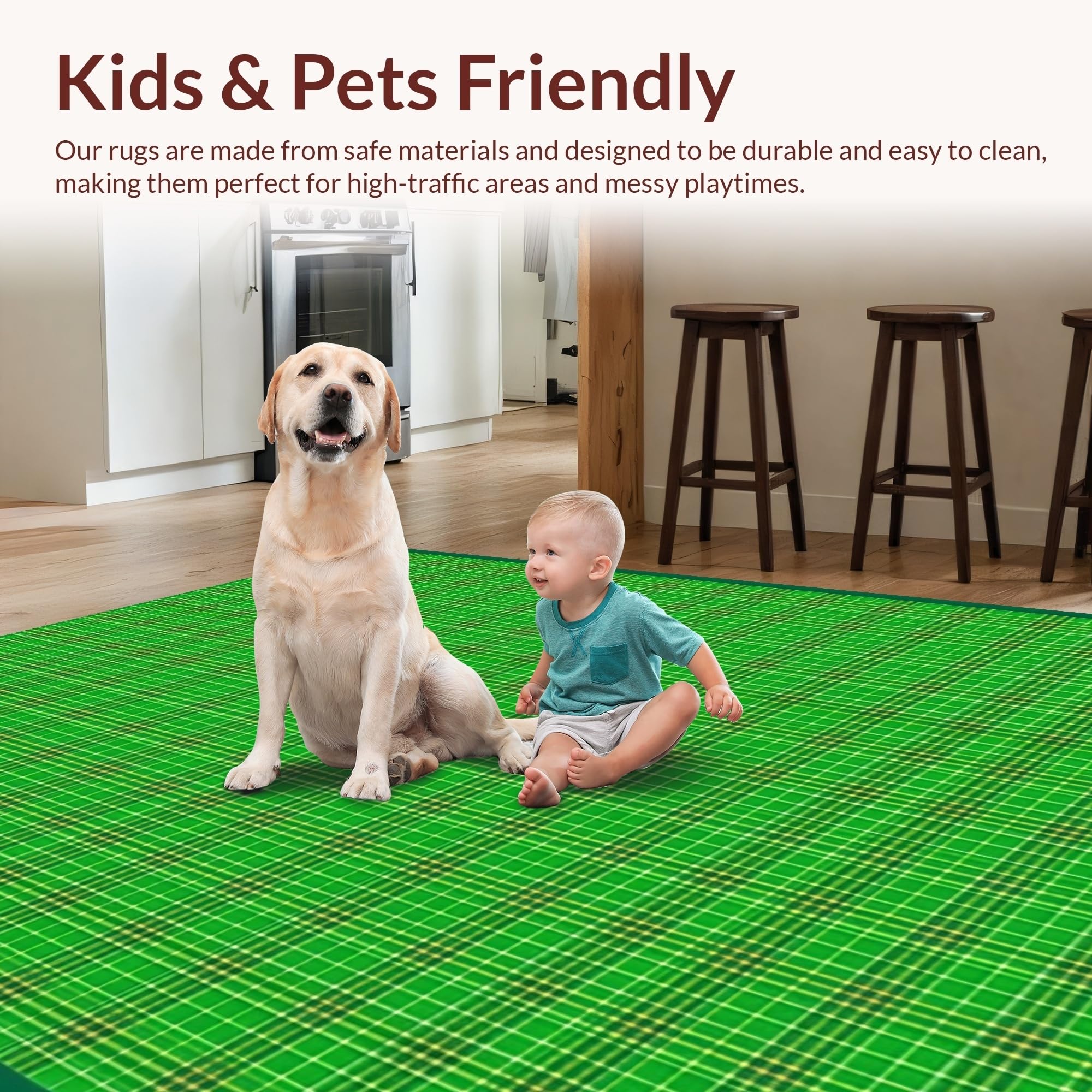 Ultra Soft Area Rug, Non Slip, Stain Resistant, Washable Area Rugs for Living Room, Bedroom, Whimsical Green Seasonal Design(Green) Overview: