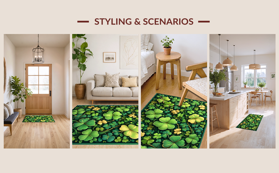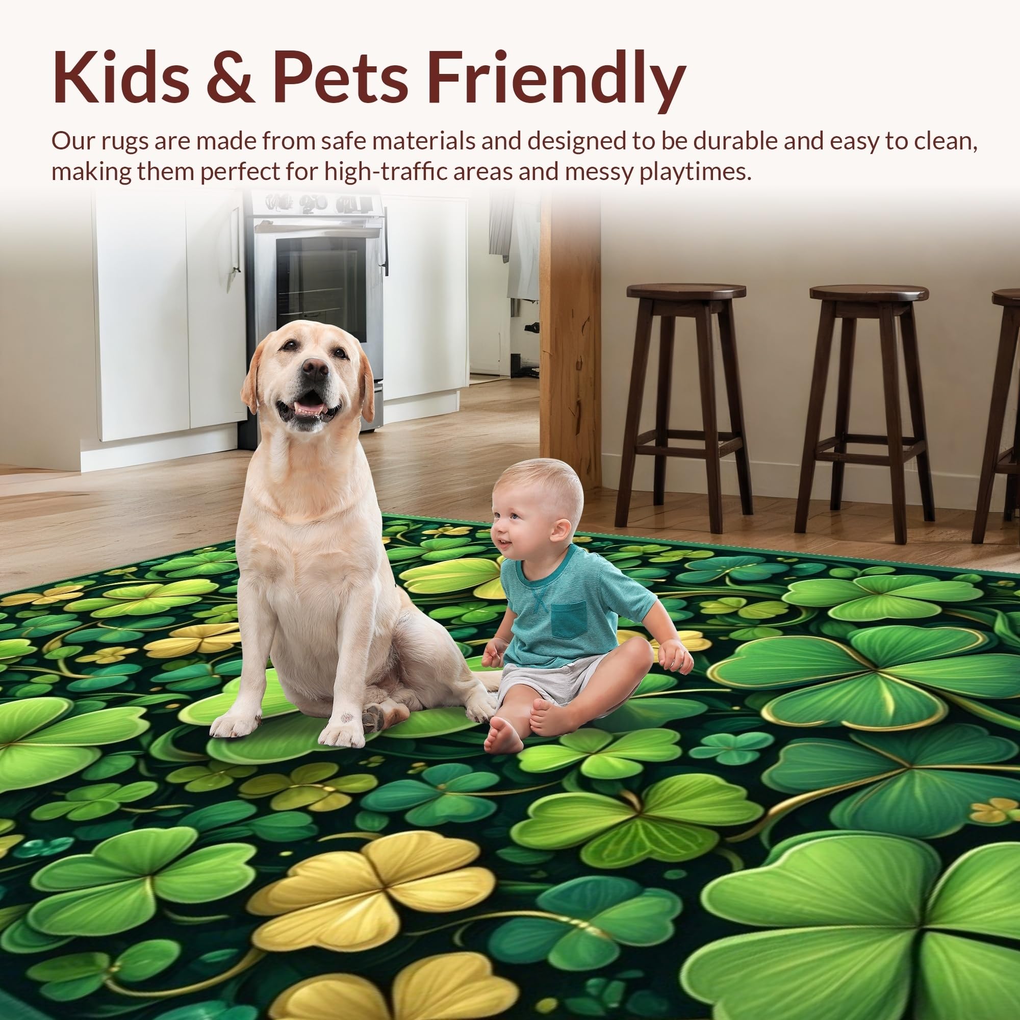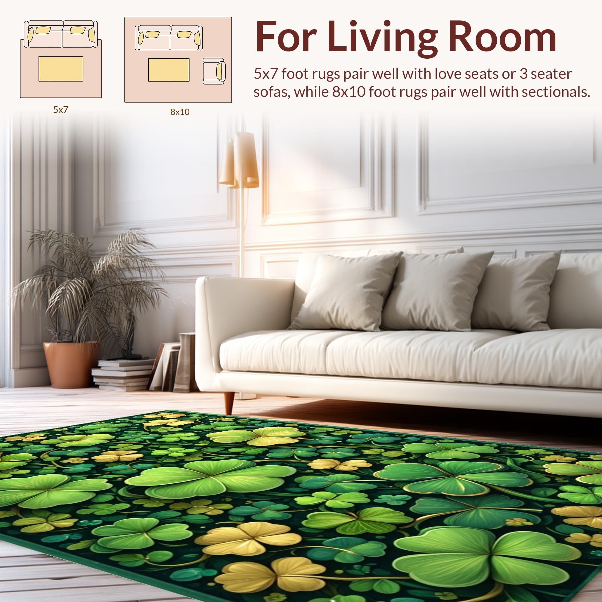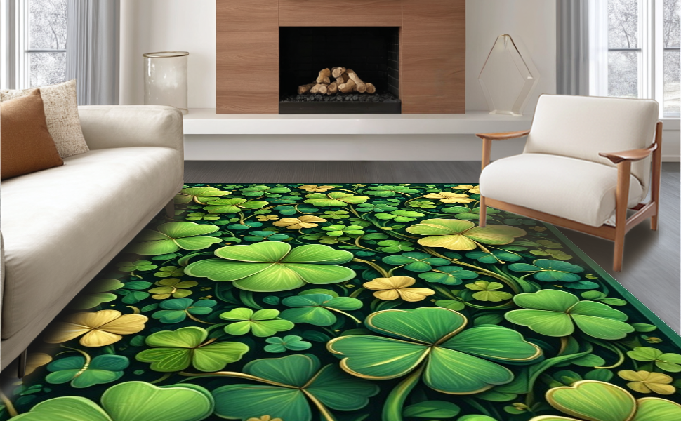 Ultra Soft Area Rug, Non Slip, Stain Resistant, Washable Area Rugs for Living Room, Bedroom, Whimsical Holiday Cheer Design(Green) Overview: