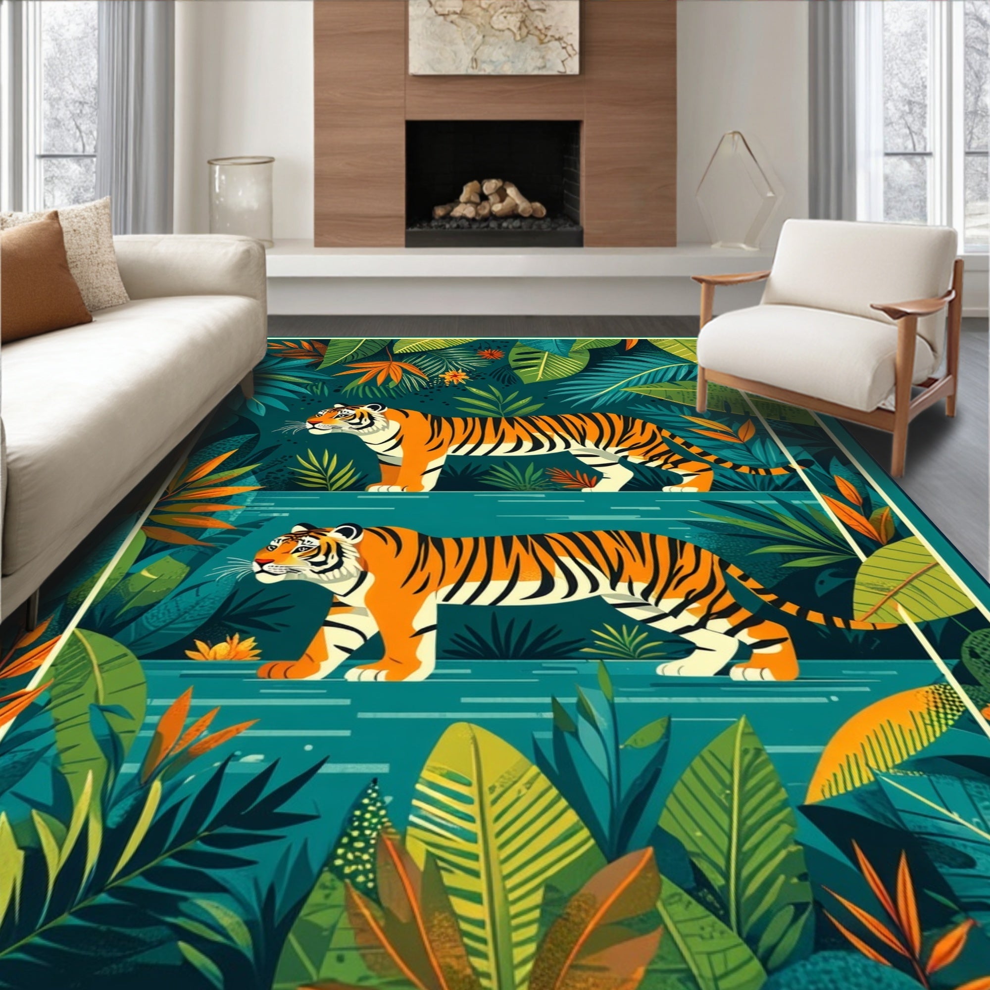 Flatwoven High Traffic Area Rug, Whimsical Jungle Creature Motif, Non Slip, Stain Resistant, Washable Area Rugs for Living Room, Bedroom (Orange) Overview: