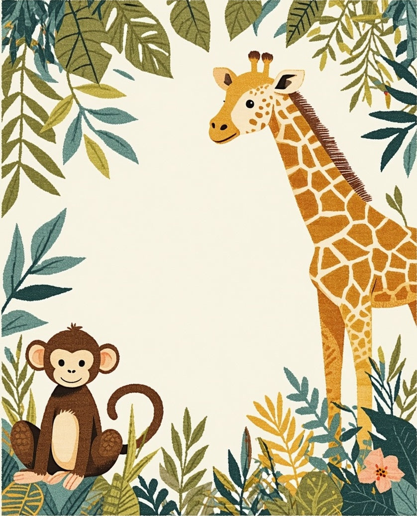 Whimsical Jungle Friends Beige for Kids Playful Spaces(Beige)