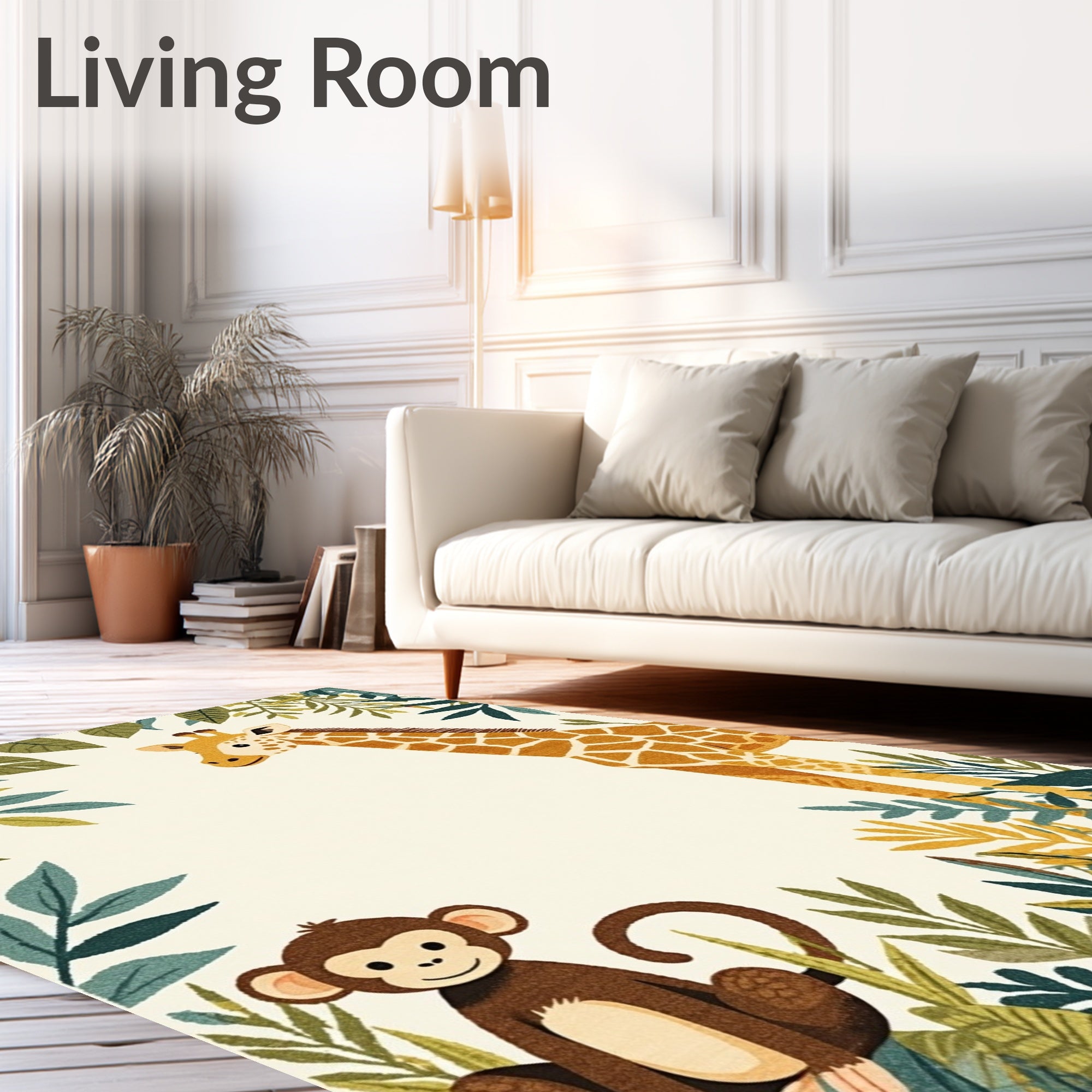 Ultra Soft Area Rug, Non Slip, Stain Resistant, Washable Area Rugs for Living Room, Bedroom, Whimsical Jungle Friends Beige for Kids Playful Spaces(Beige) Overview: