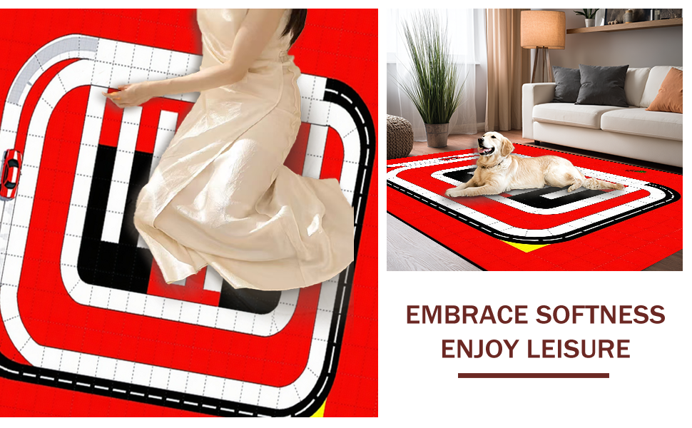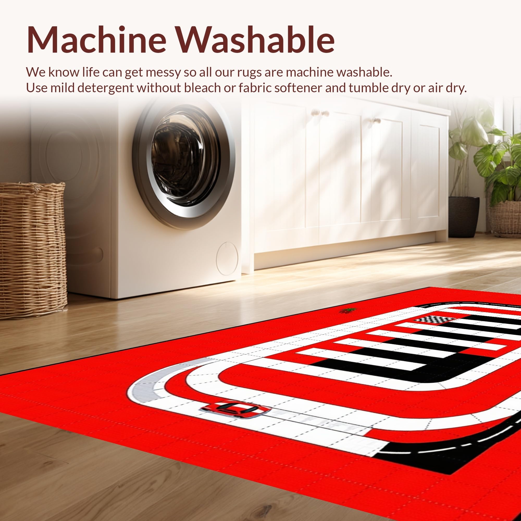 Ultra Soft Area Rug, Non Slip, Stain Resistant, Washable Area Rugs for Living Room, Bedroom, Whimsical Karting Pathway Style(Red) Overview: