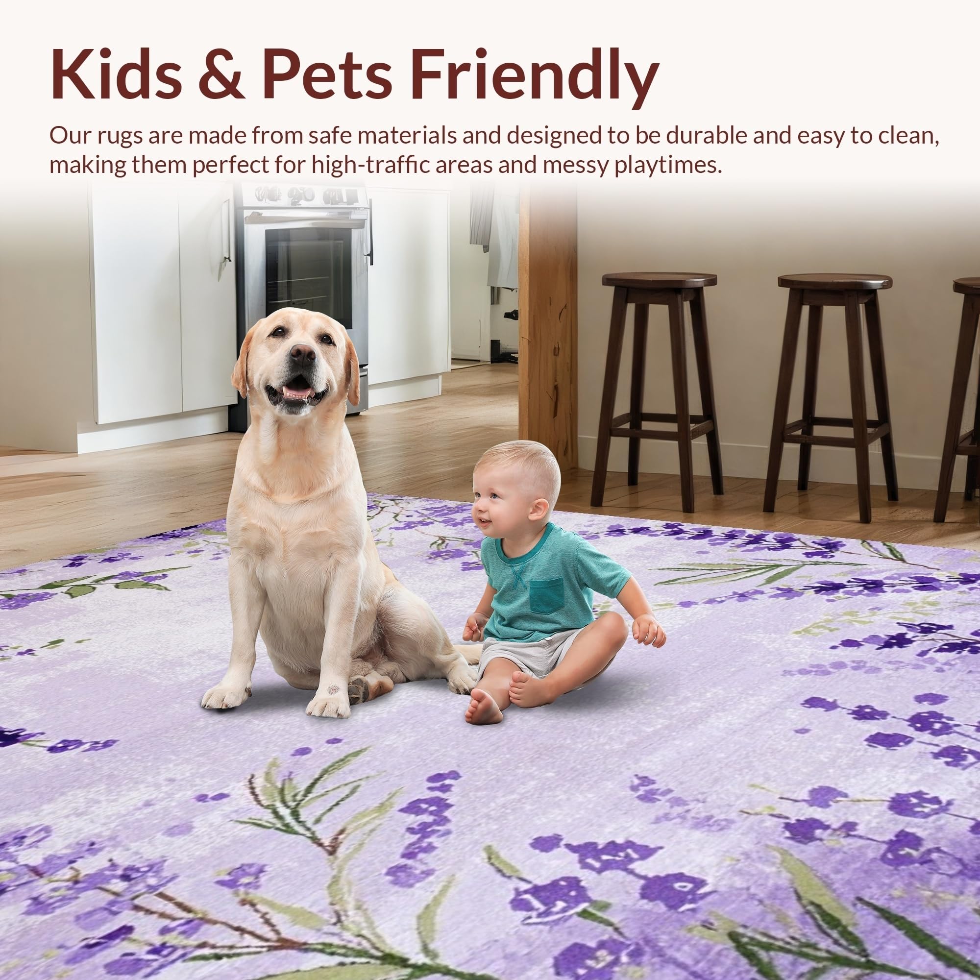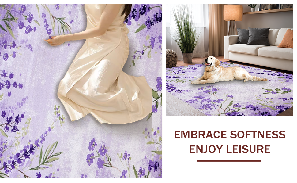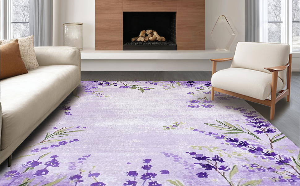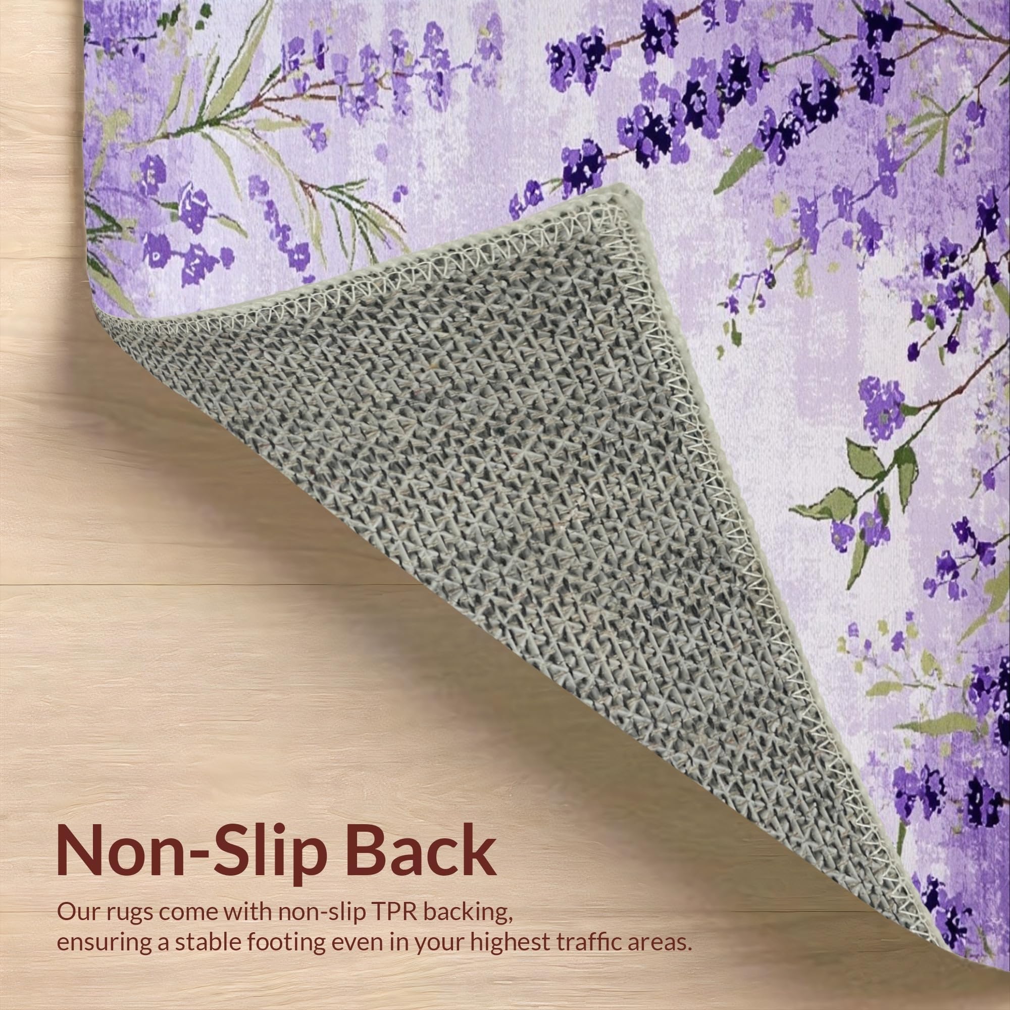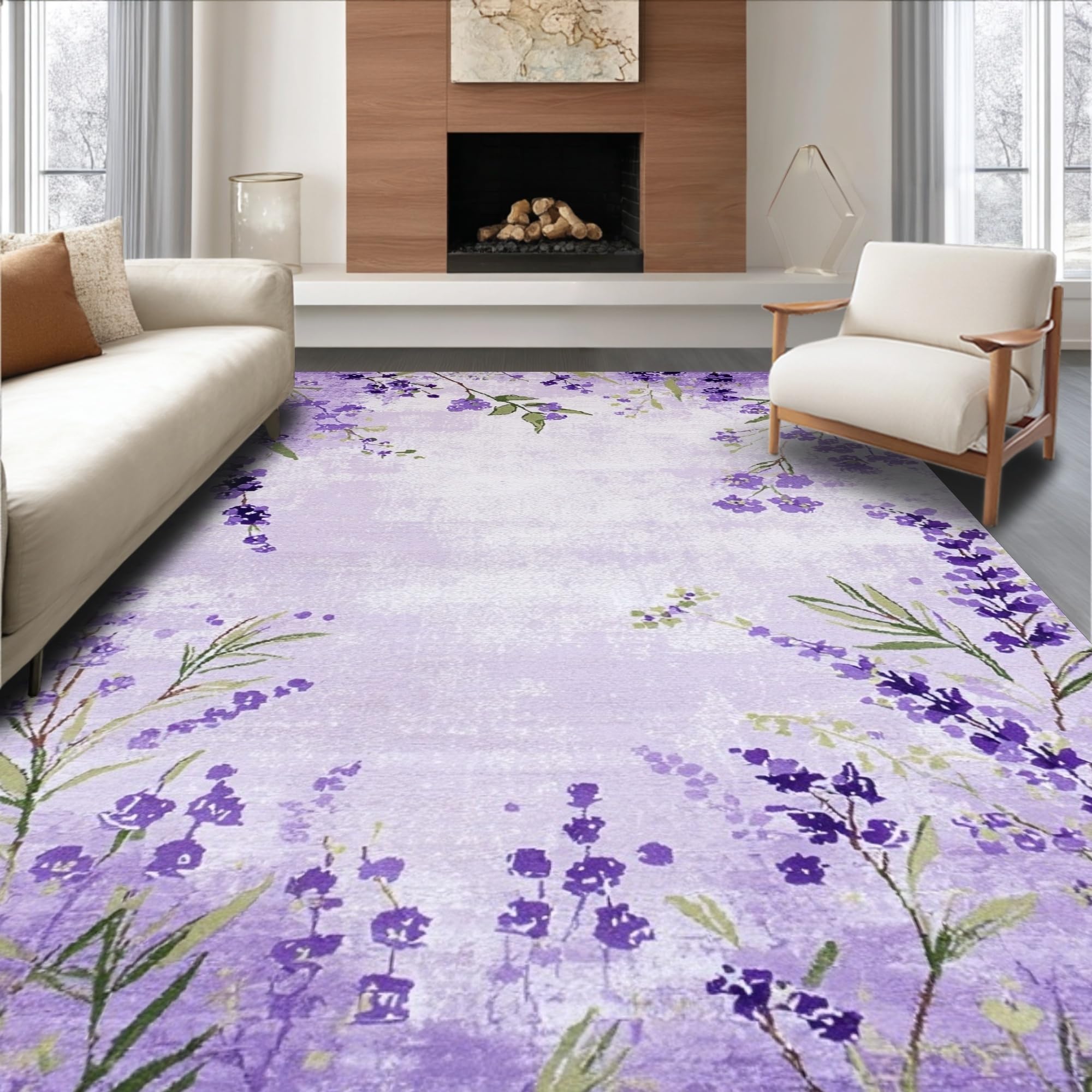 Ultra Soft Area Rug, Non Slip, Stain Resistant, Washable Area Rugs for Living Room, Bedroom, Whimsical Lavender Nature Motif(Purple) Overview: