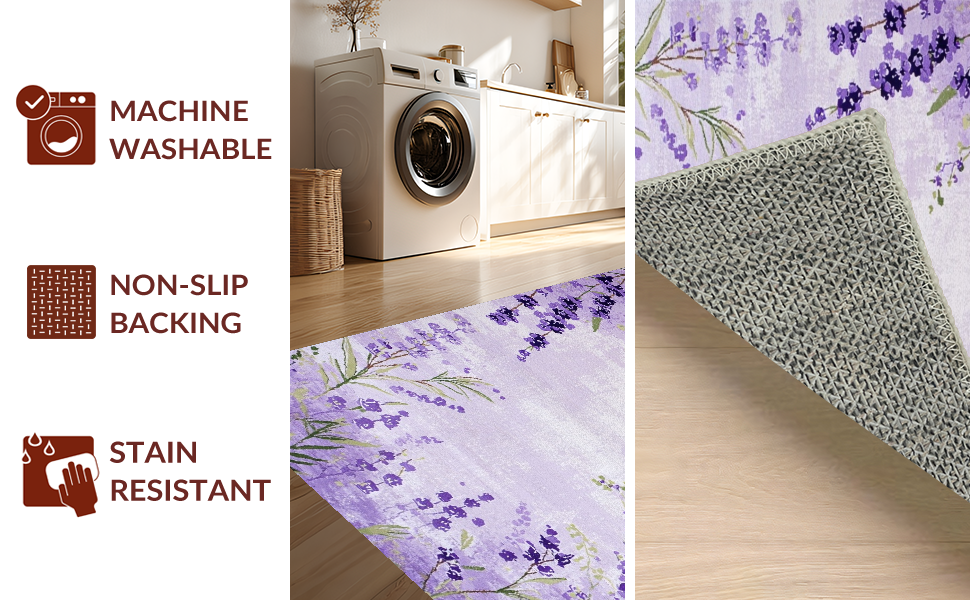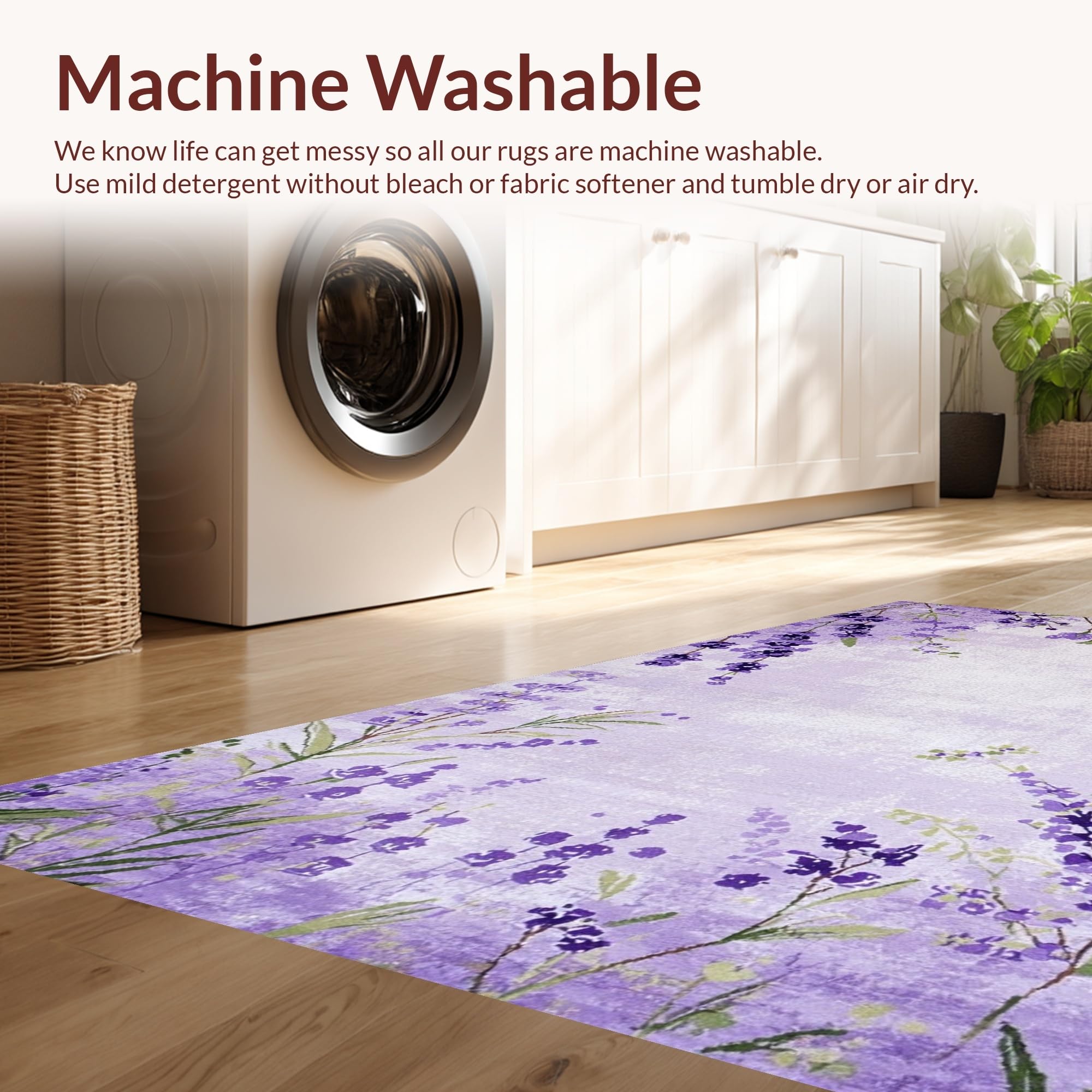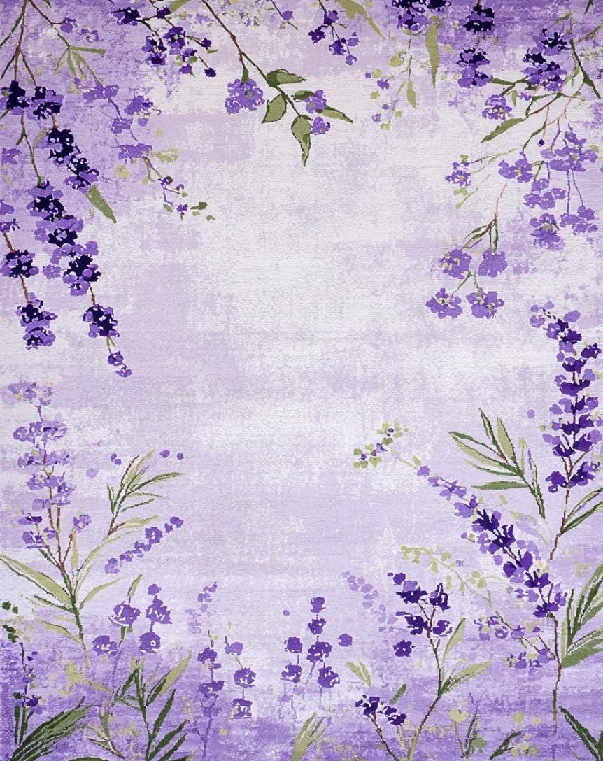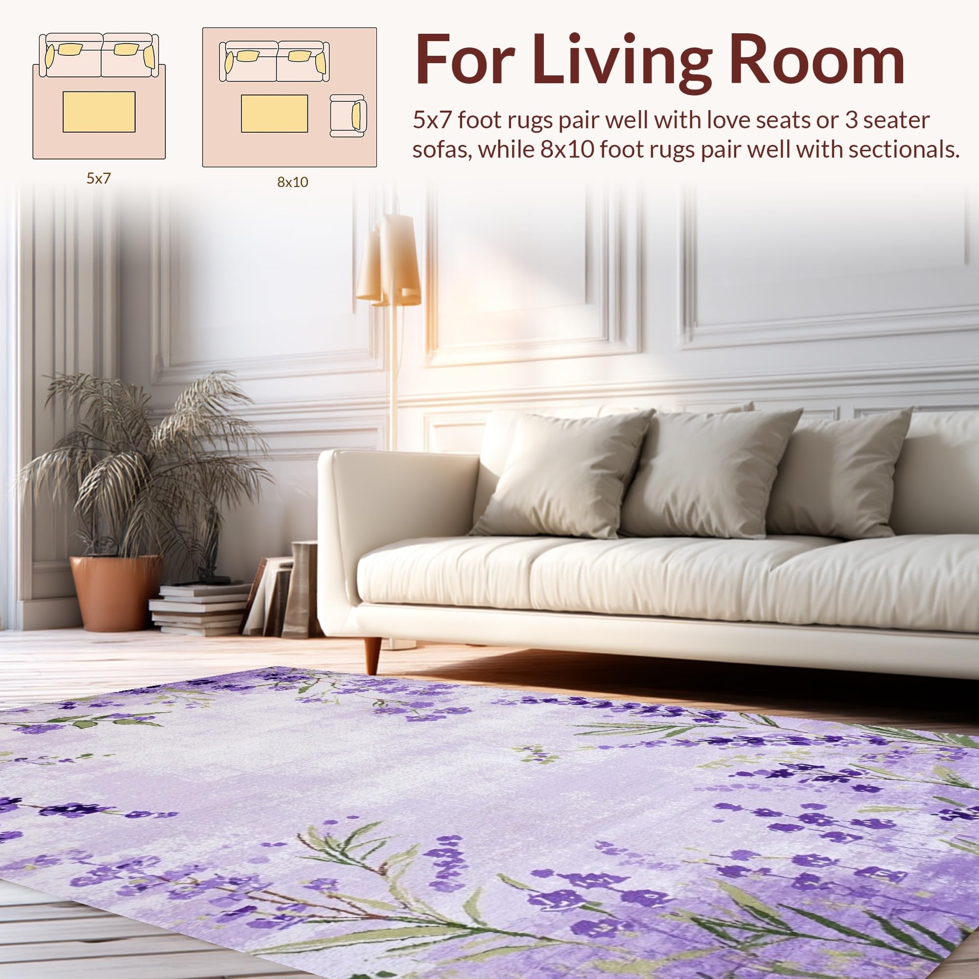 Ultra Soft Area Rug, Non Slip, Stain Resistant, Washable Area Rugs for Living Room, Bedroom, Whimsical Lavender Nature Motif(Purple) Overview: