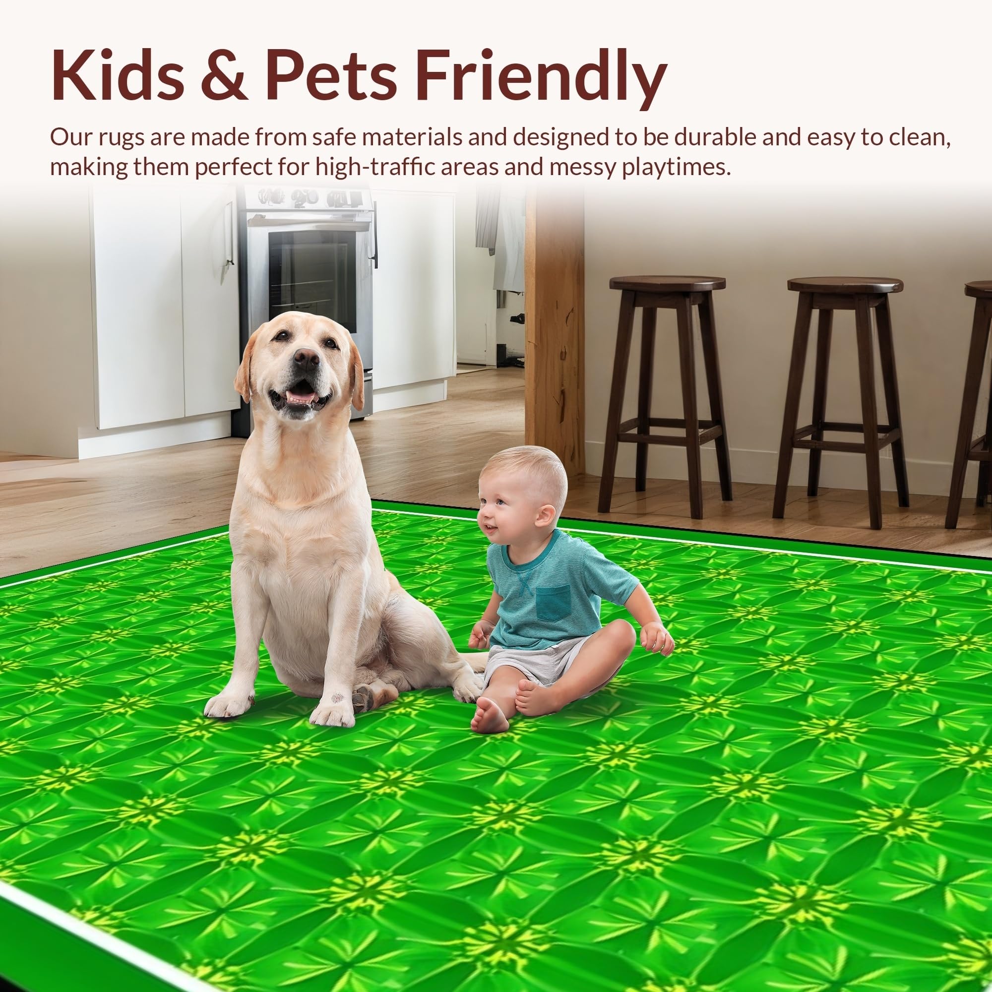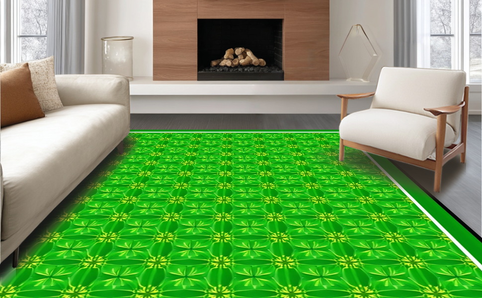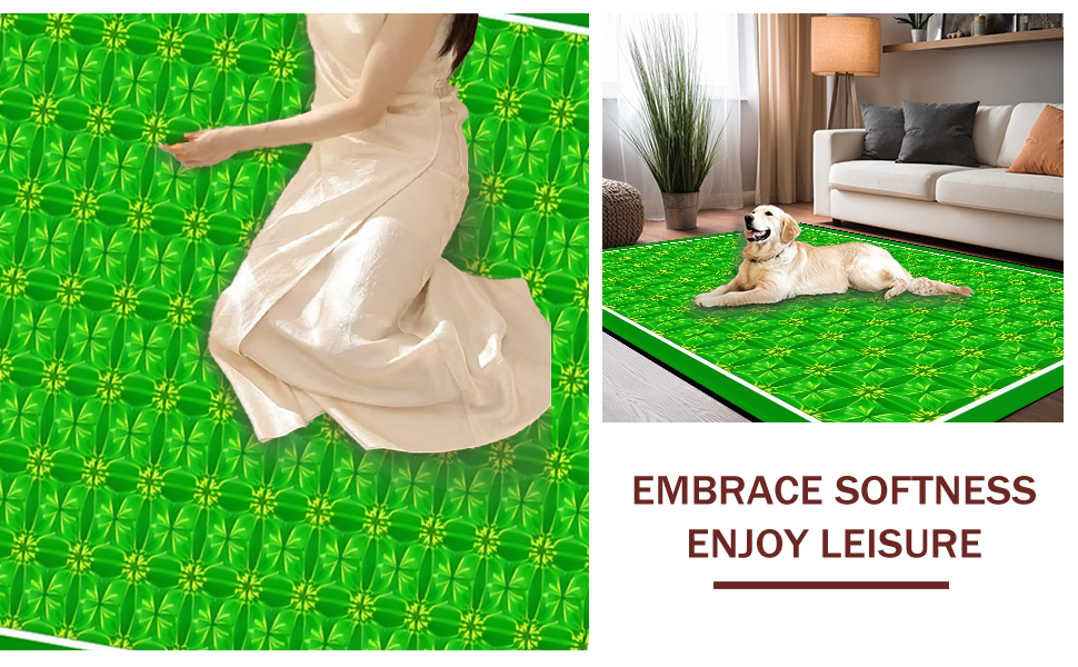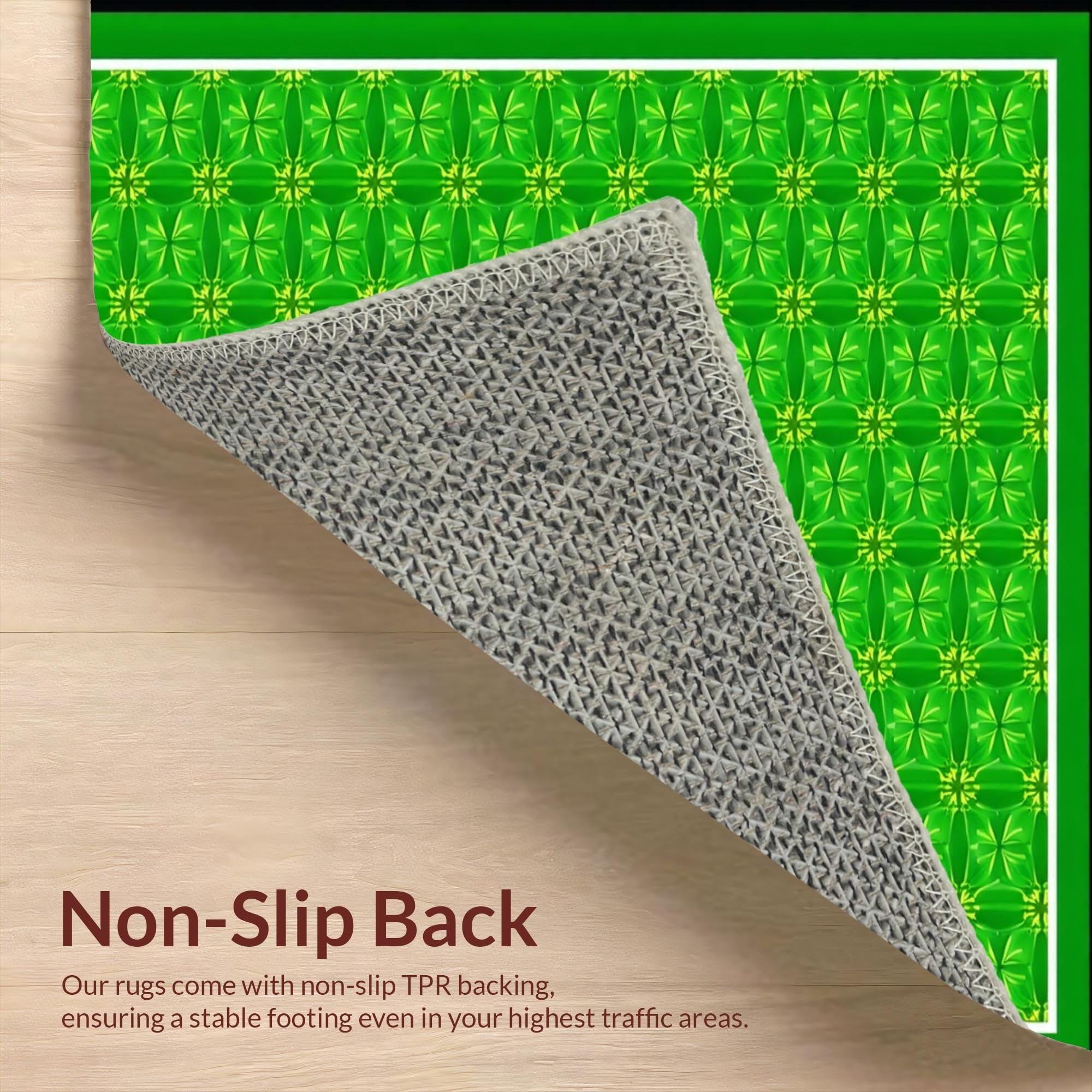 Ultra Soft Area Rug, Non Slip, Stain Resistant, Washable Area Rugs for Living Room, Bedroom, Whimsical Lucky Charm Artwork(Green) Overview: