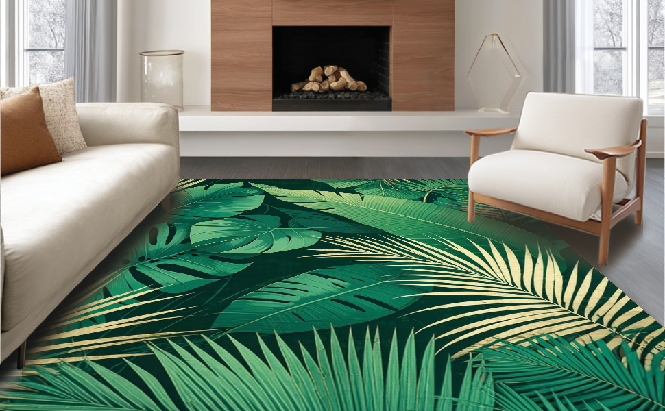 Ultra Soft Area Rug, Non Slip, Stain Resistant, Washable Area Rugs for Living Room, Bedroom, Whimsical Lush Green Palette(Green) Overview: