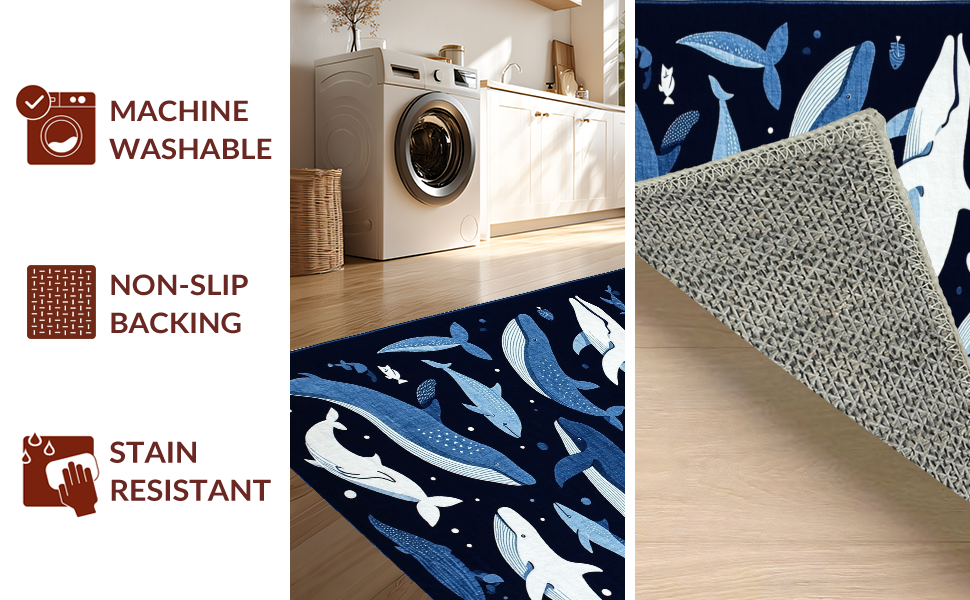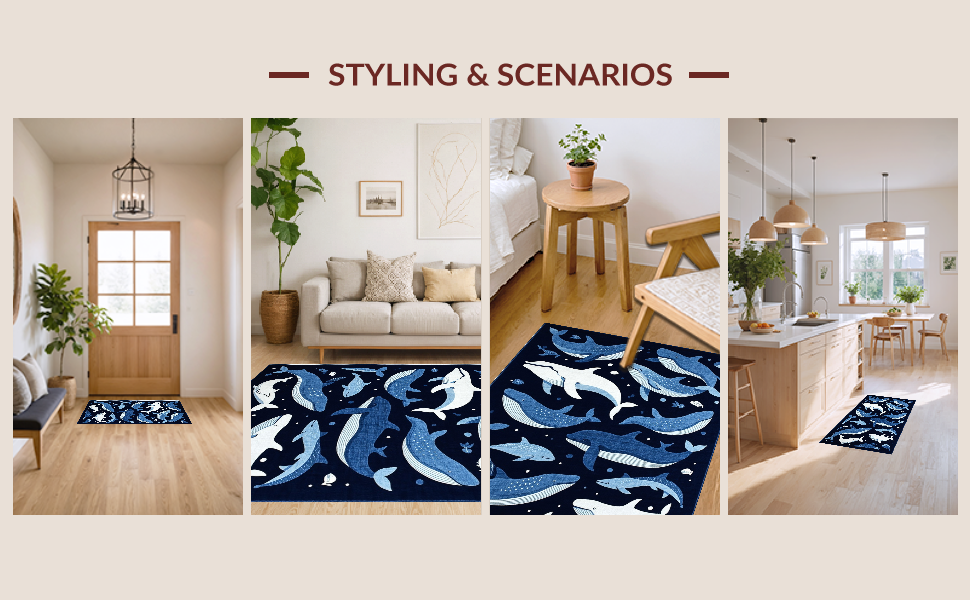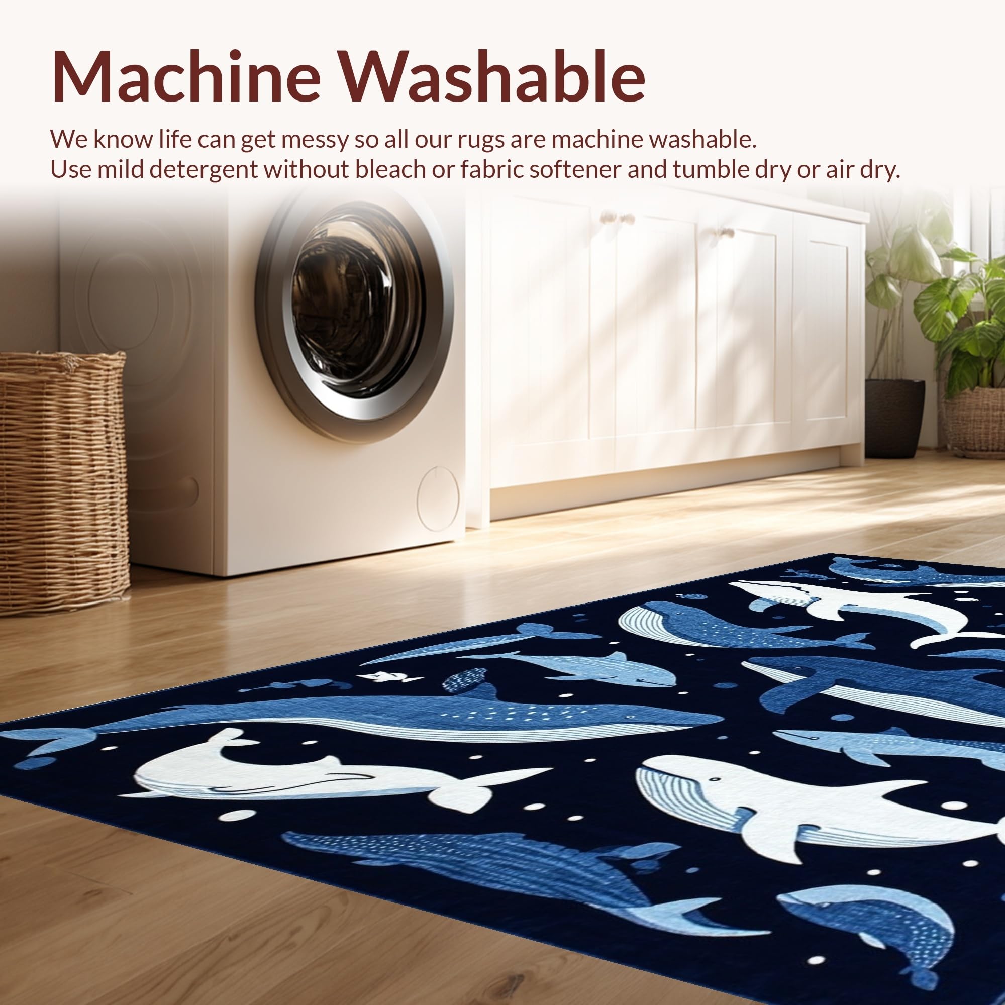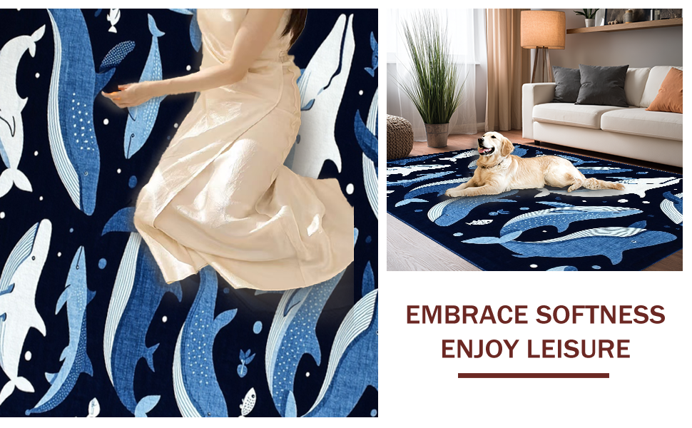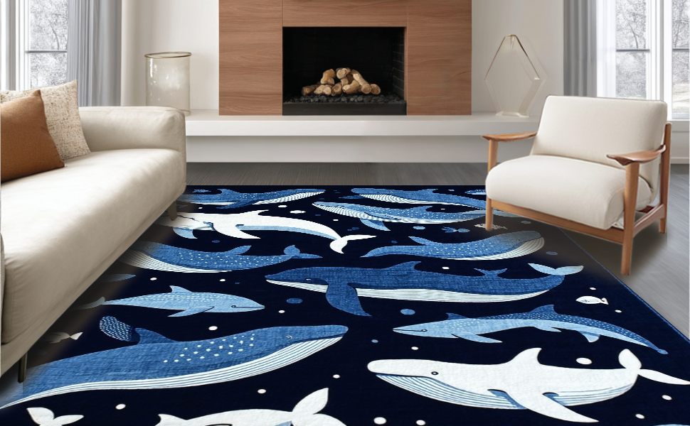 Ultra Soft Area Rug, Non Slip, Stain Resistant, Washable Area Rugs for Living Room, Bedroom, Whimsical Marine Animal Motif(Blue) Overview: