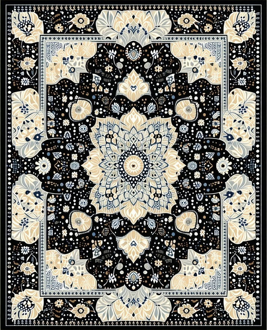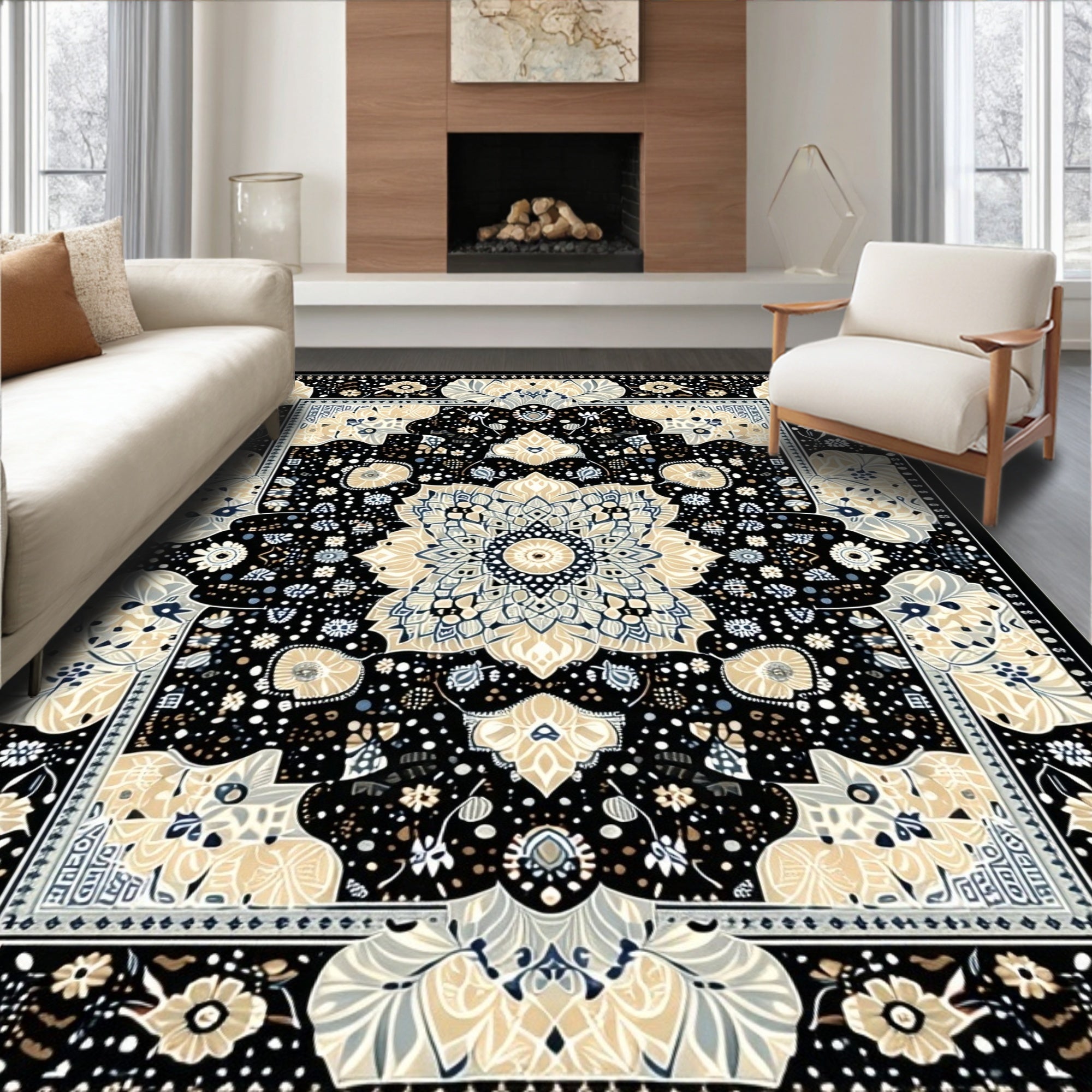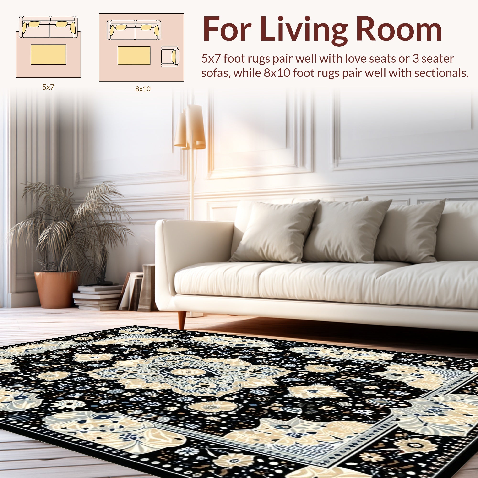 Flatwoven High Traffic Area Rug, Whimsical Modern Floral Theme Design, Non Slip, Stain Resistant, Washable Area Rugs for Living Room, Bedroom (Black) Overview: