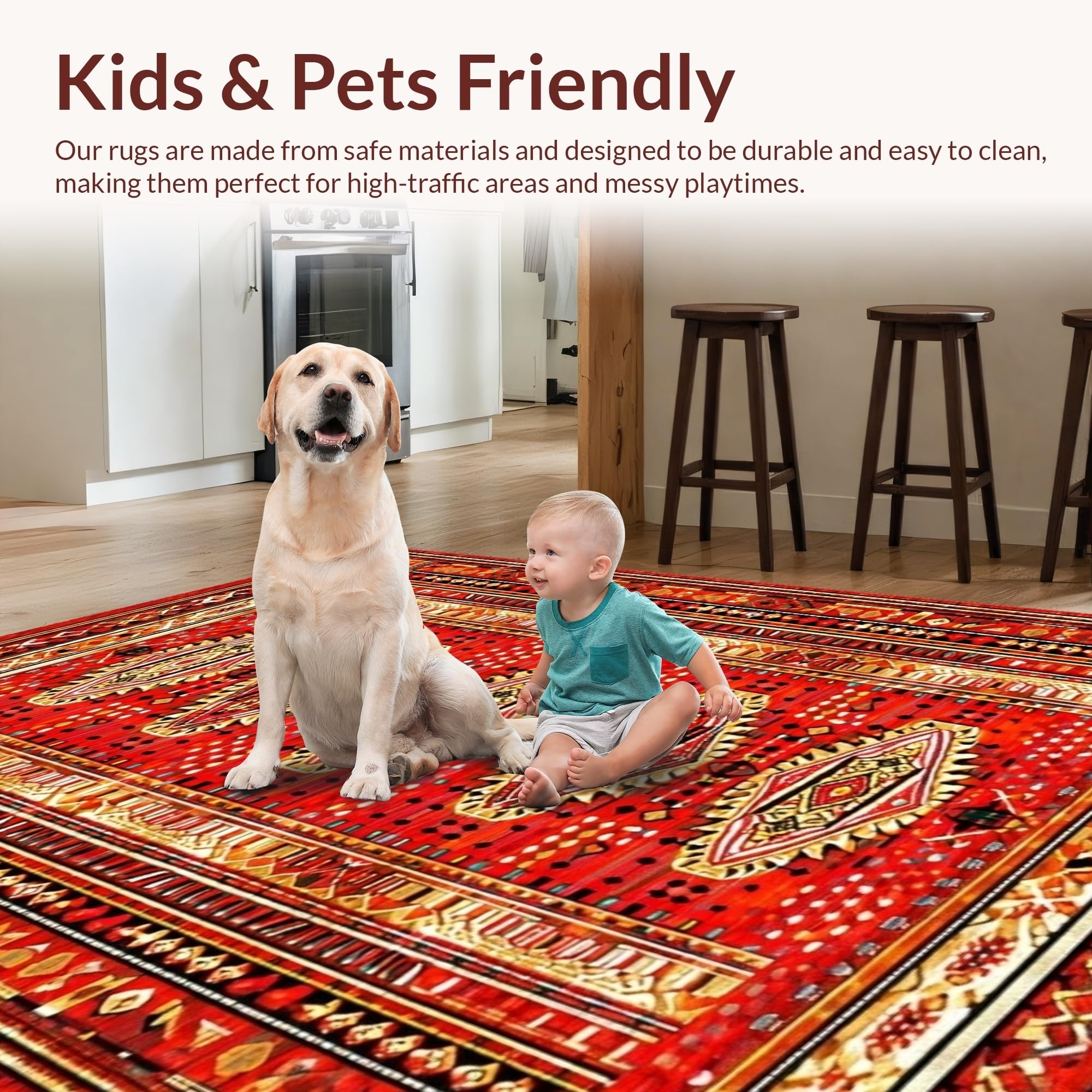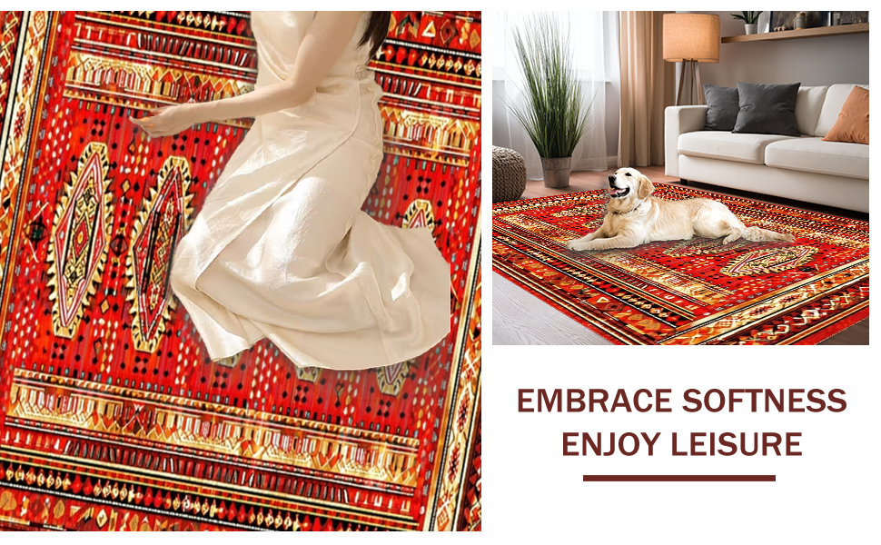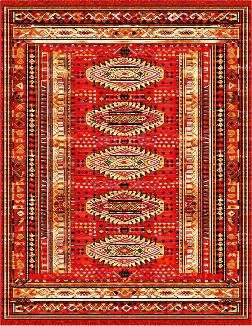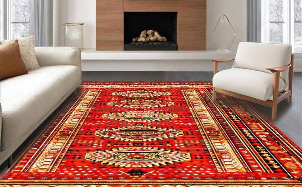 Ultra Soft Area Rug, Non Slip, Stain Resistant, Washable Area Rugs for Living Room, Bedroom, Whimsical Modern Symmetrical Patterns(Red) Overview: