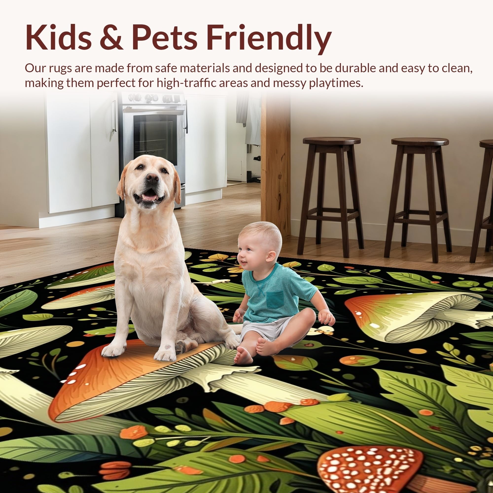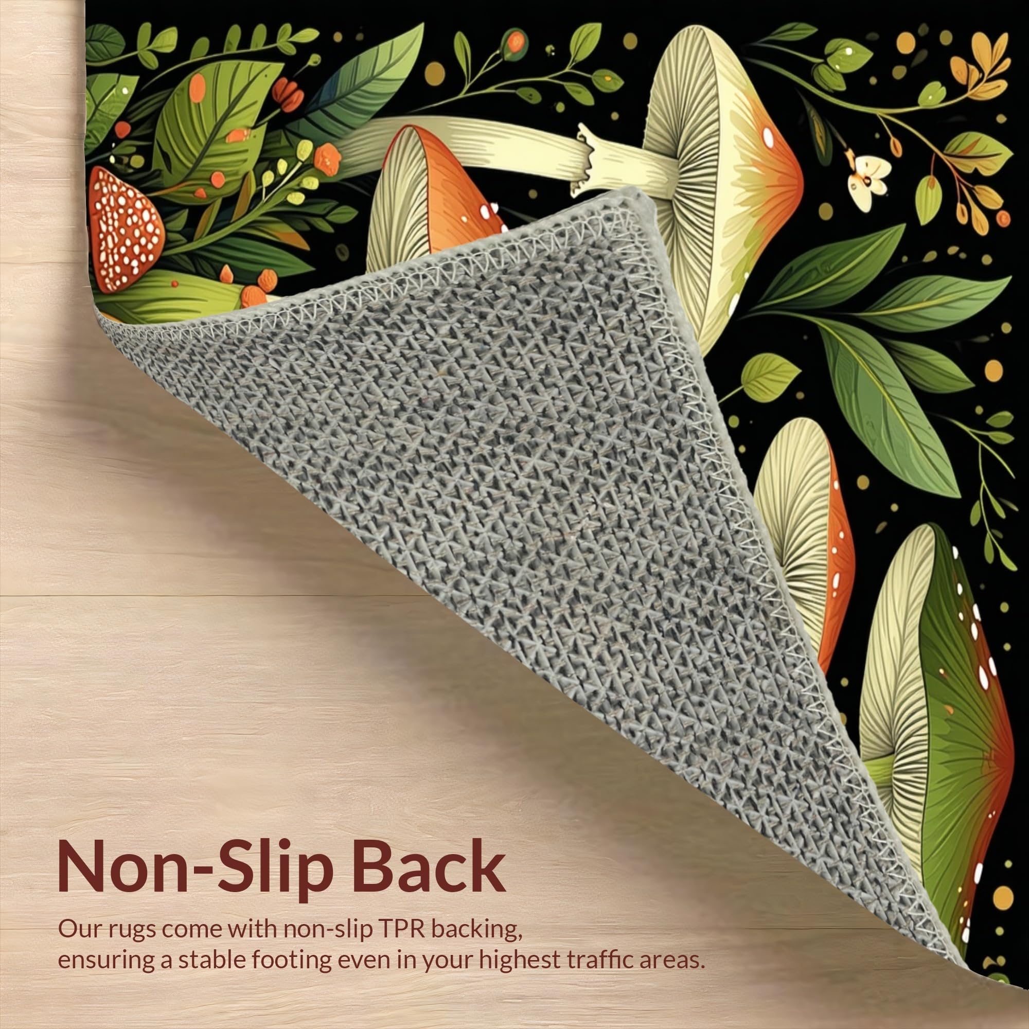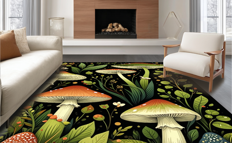 Ultra Soft Area Rug, Non Slip, Stain Resistant, Washable Area Rugs for Living Room, Bedroom, Whimsical Moth and Mushroom Fusion(Green) Overview: