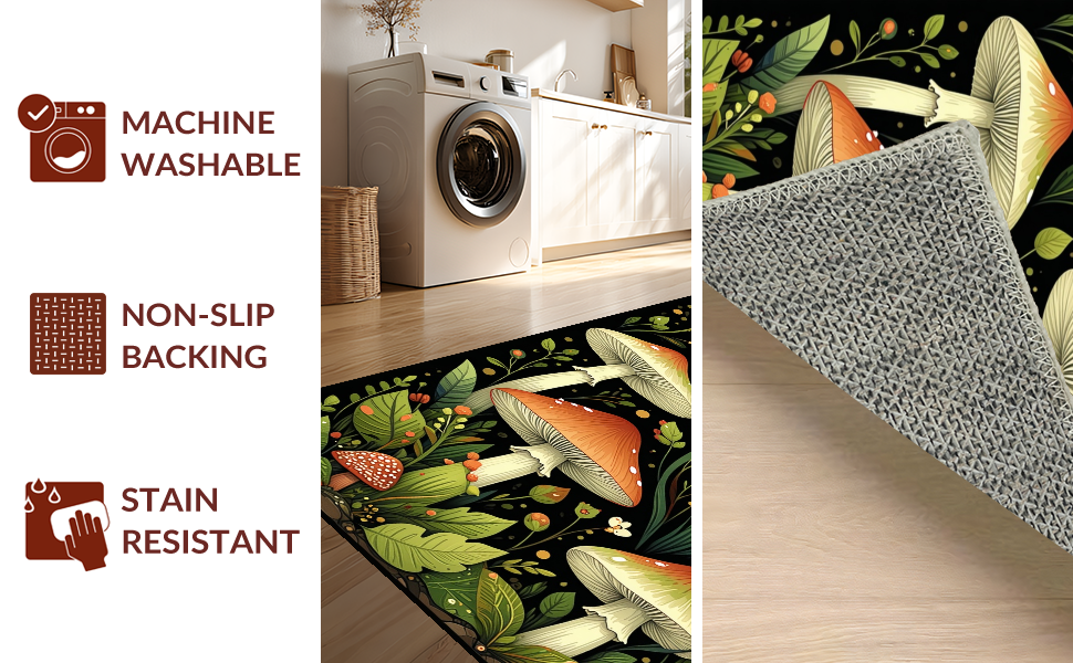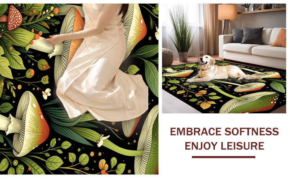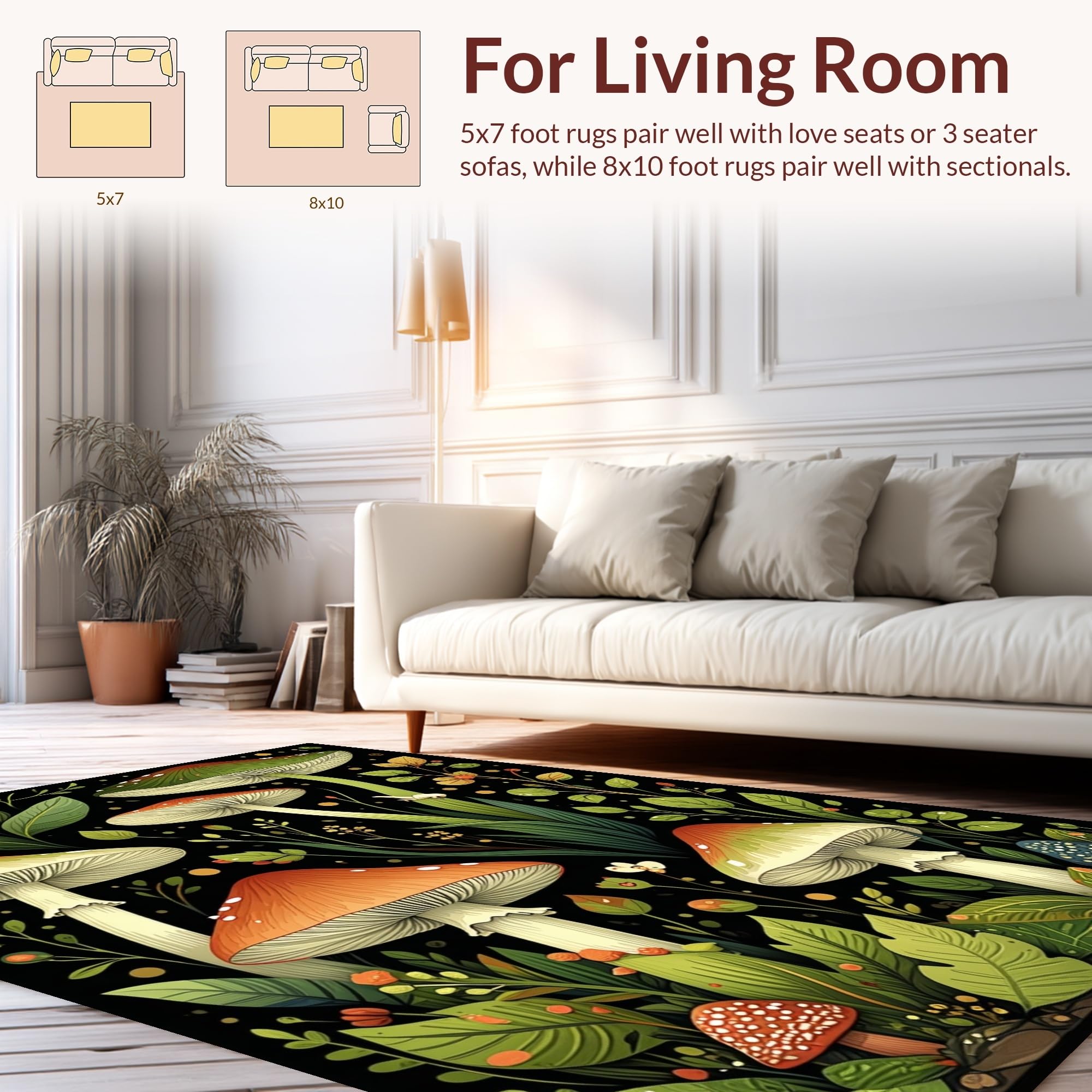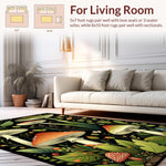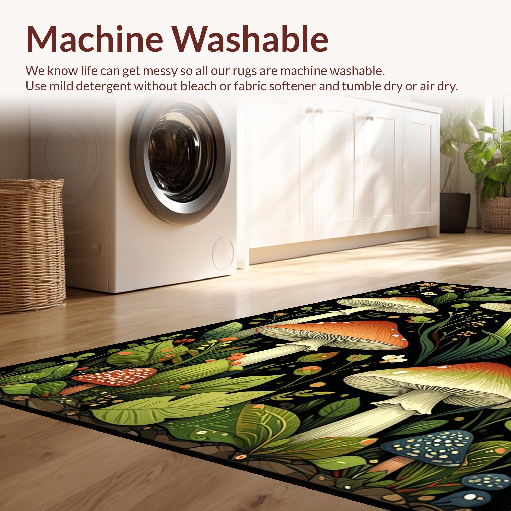 Ultra Soft Area Rug, Non Slip, Stain Resistant, Washable Area Rugs for Living Room, Bedroom, Whimsical Moth and Mushroom Fusion(Green) Overview: