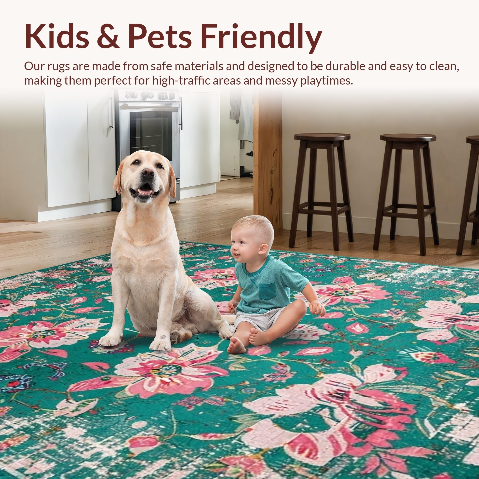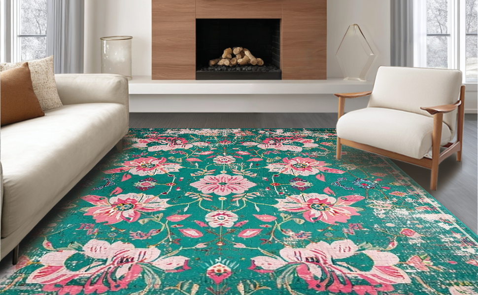 Ultra Soft Area Rug, Non Slip, Stain Resistant, Washable Area Rugs for Living Room, Bedroom, Whimsical Multi-Hued Lattice Design(Green) Overview: