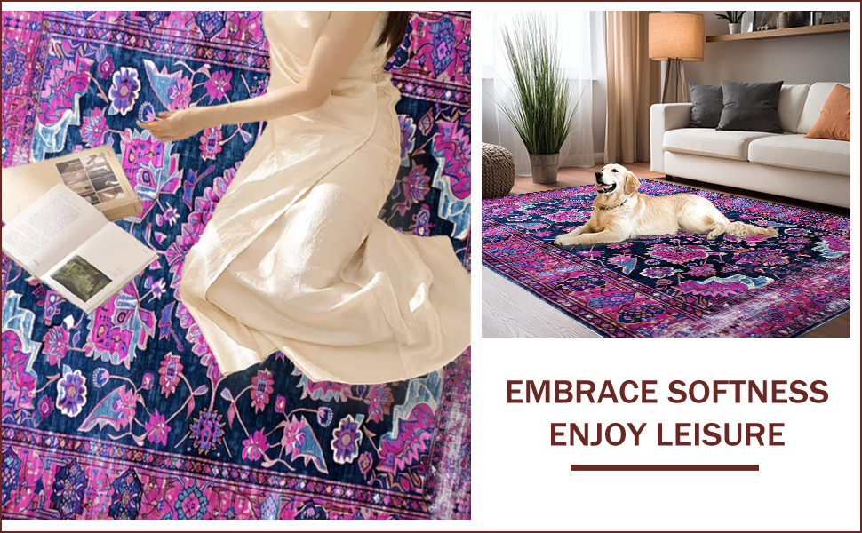 Ultra Soft Area Rug, Non Slip, Stain Resistant, Washable Area Rugs for Living Room, Bedroom, Whimsical Multi-Tonal Pattern Play(Purple) Overview: