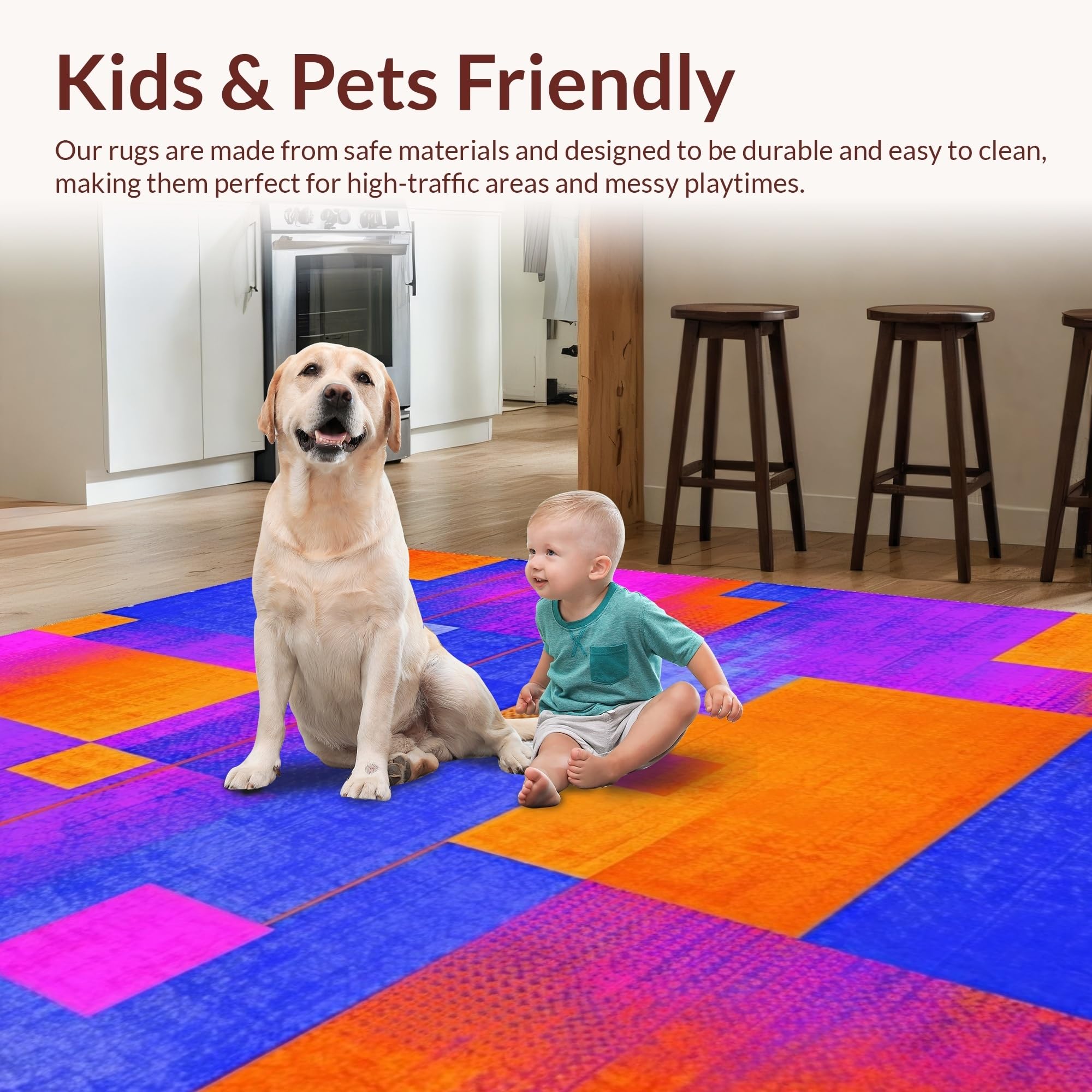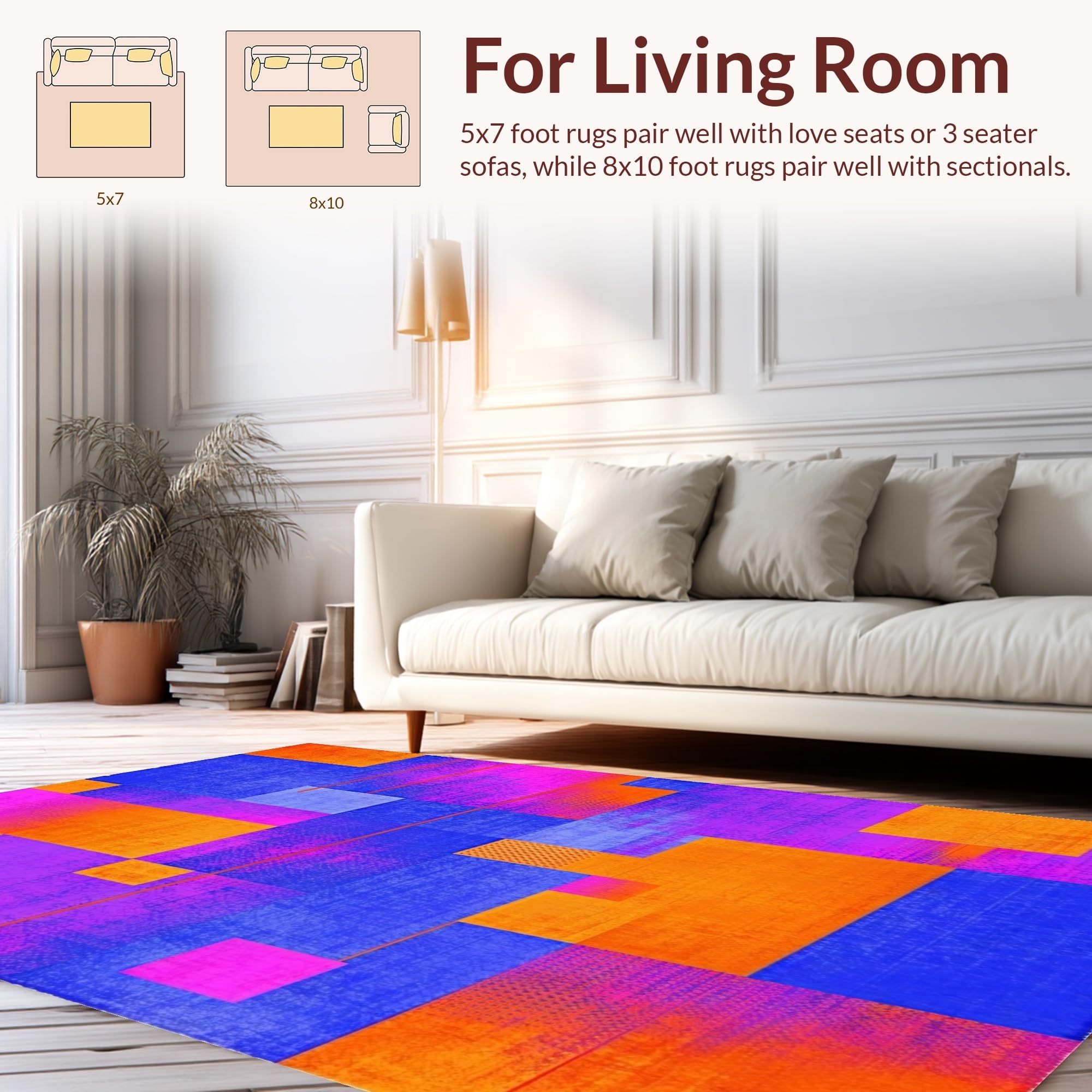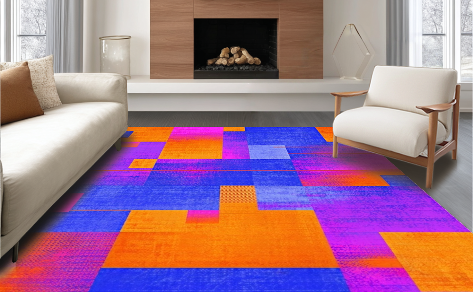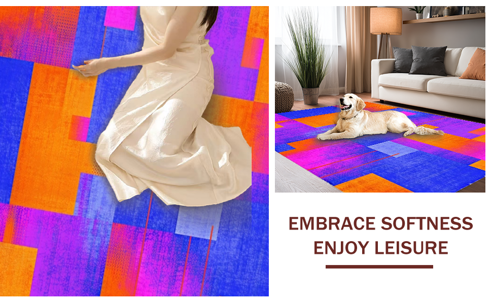 Ultra Soft Area Rug, Non Slip, Stain Resistant, Washable Area Rugs for Living Room, Bedroom, Whimsical Multicolored Fluid Design(Blue) Overview: