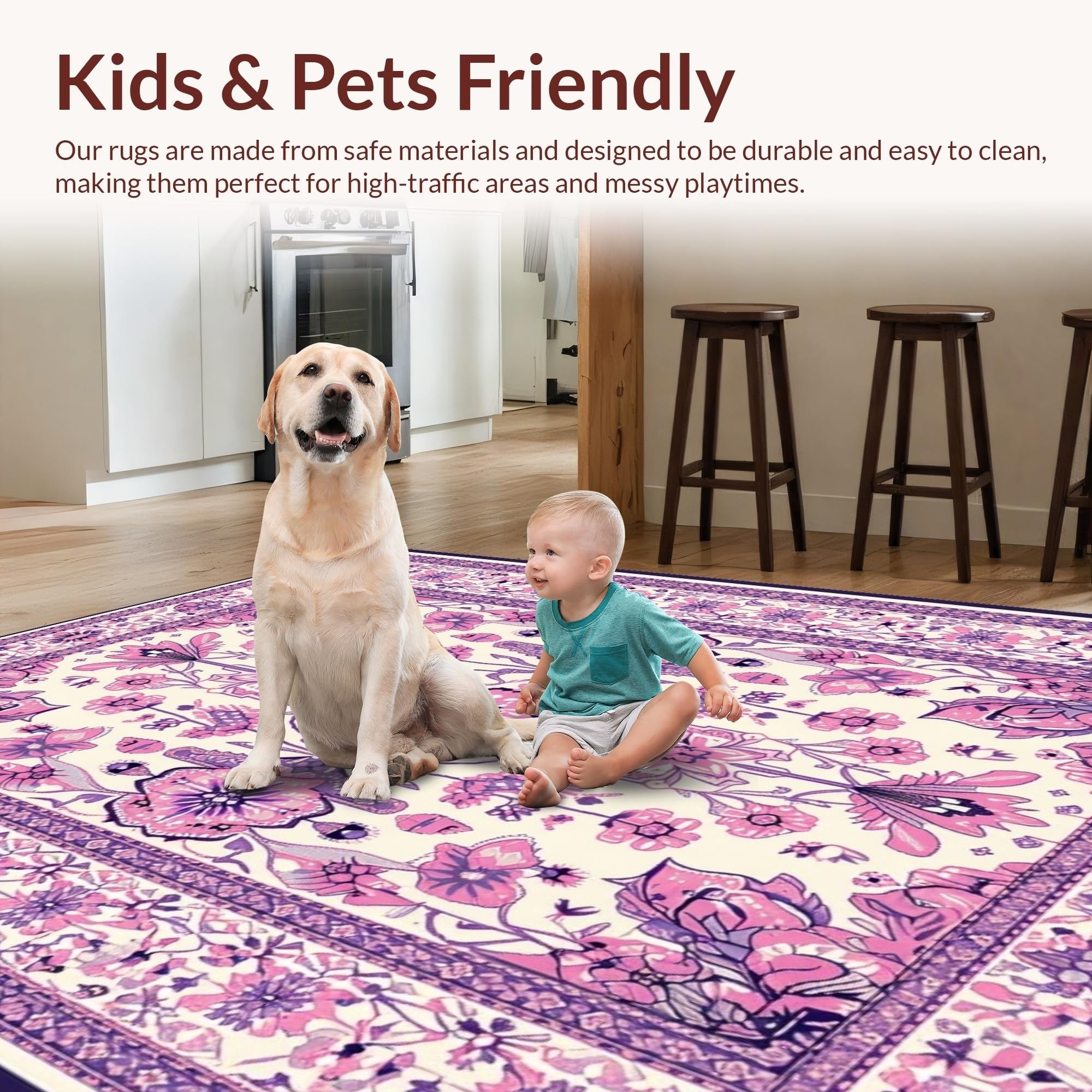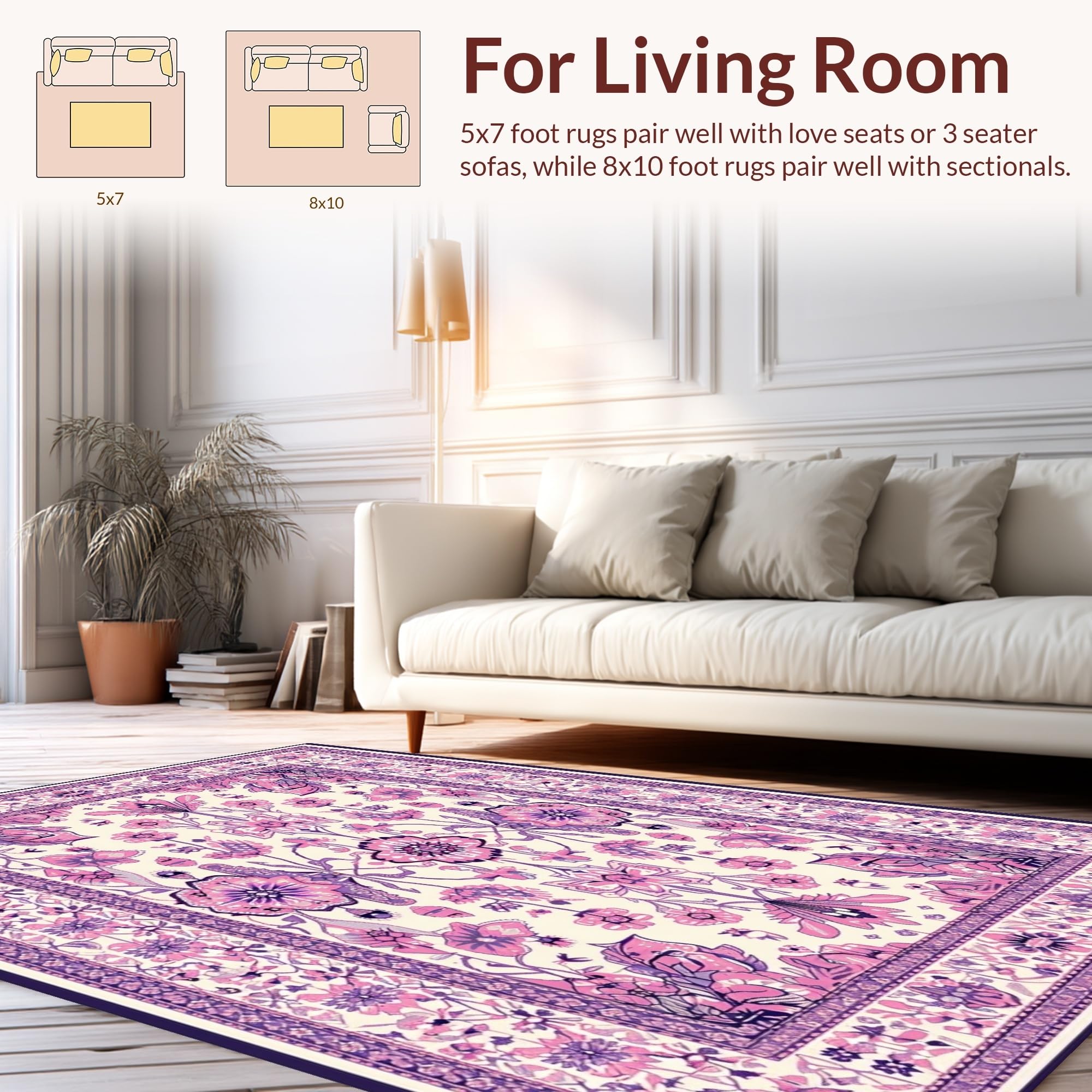 Ultra Soft Area Rug, Non Slip, Stain Resistant, Washable Area Rugs for Living Room, Bedroom, Whimsical Mushroom Botanical Motif(Ivory) Overview: