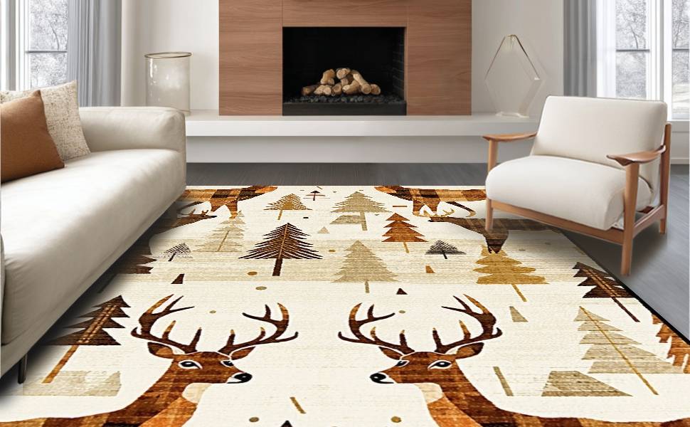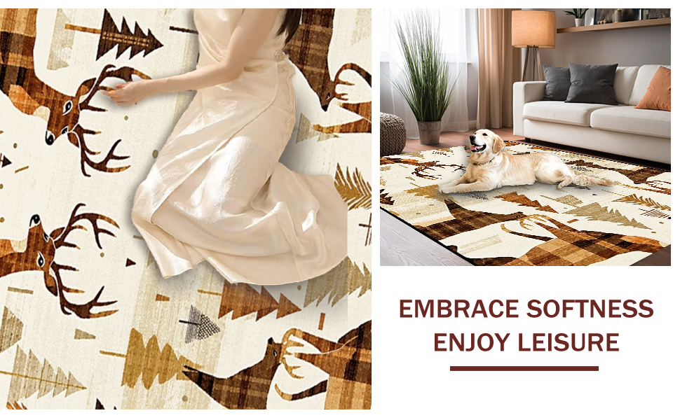Ultra Soft Area Rug, Non Slip, Stain Resistant, Washable Area Rugs for Living Room, Bedroom, Whimsical Natural Hide Motif(Beige) Overview: