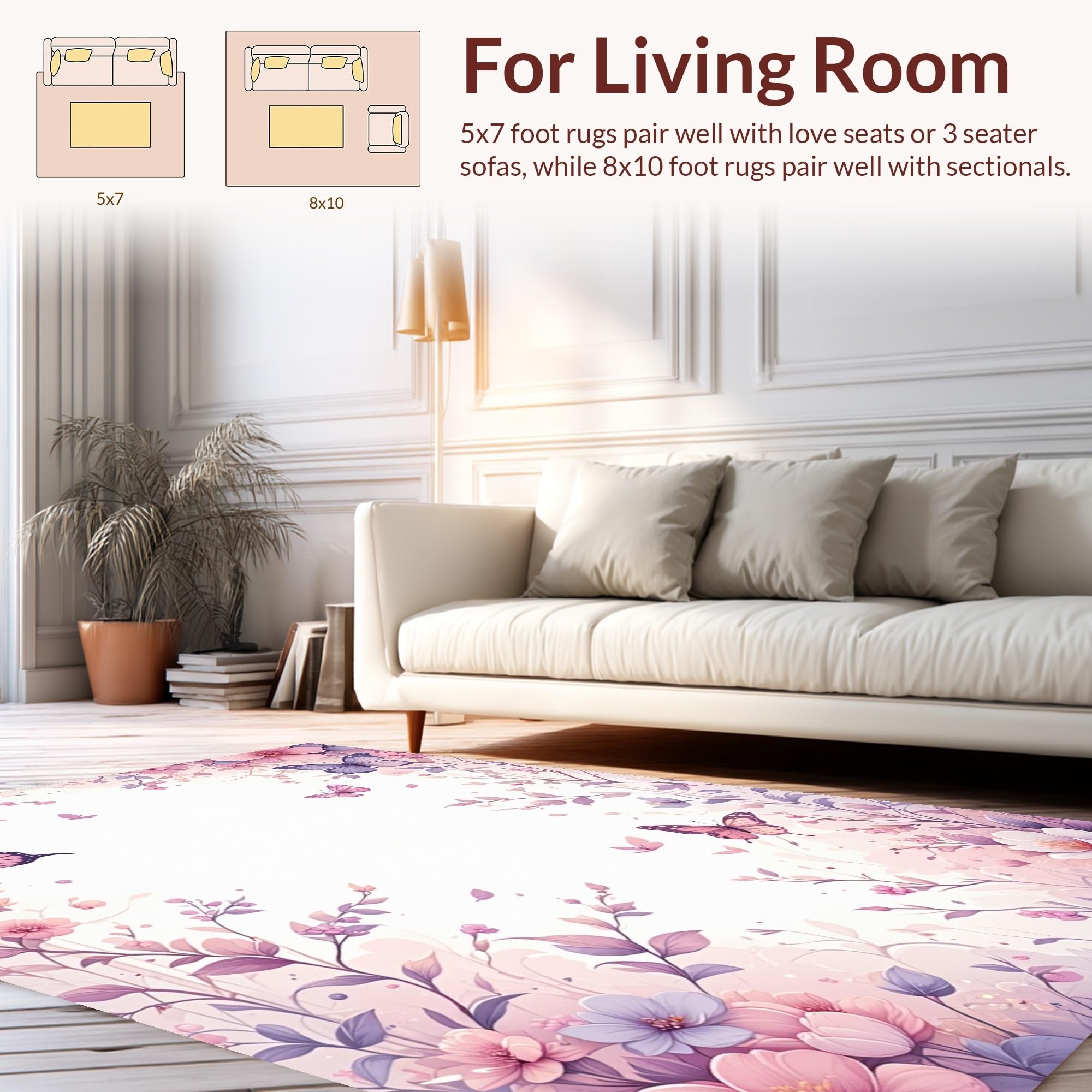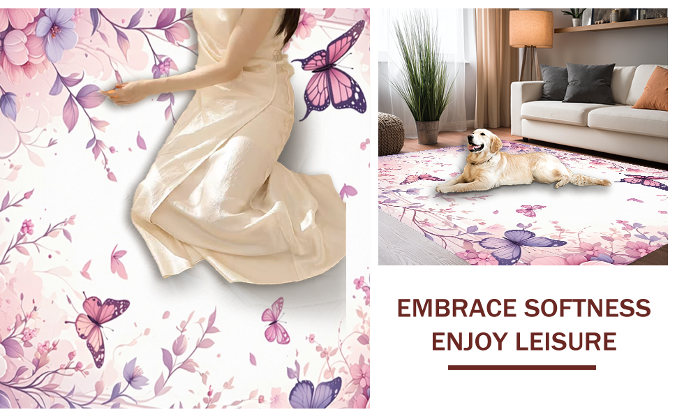Ultra Soft Area Rug, Non Slip, Stain Resistant, Washable Area Rugs for Living Room, Bedroom, Whimsical Nature-Inspired Decor(Purple) Overview: