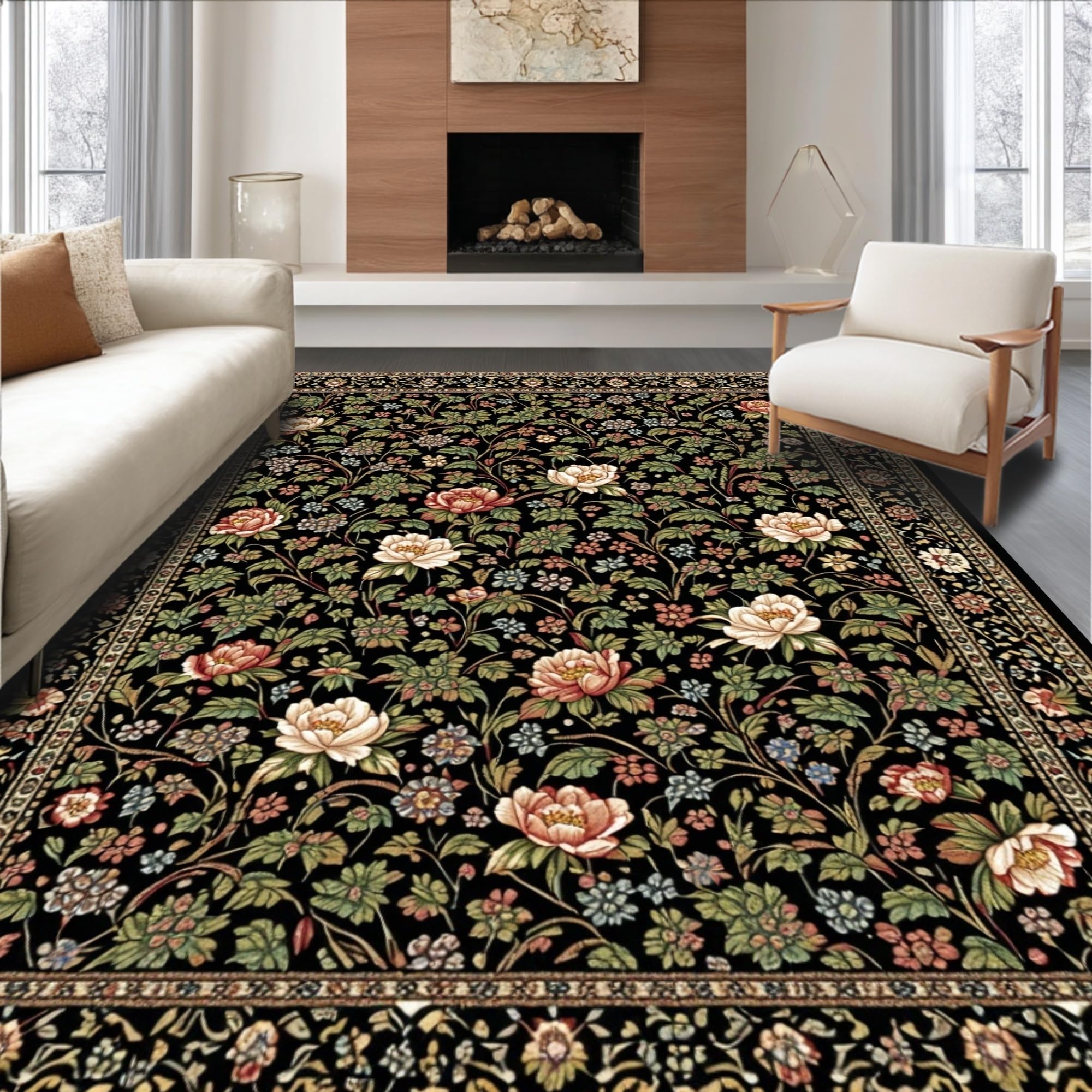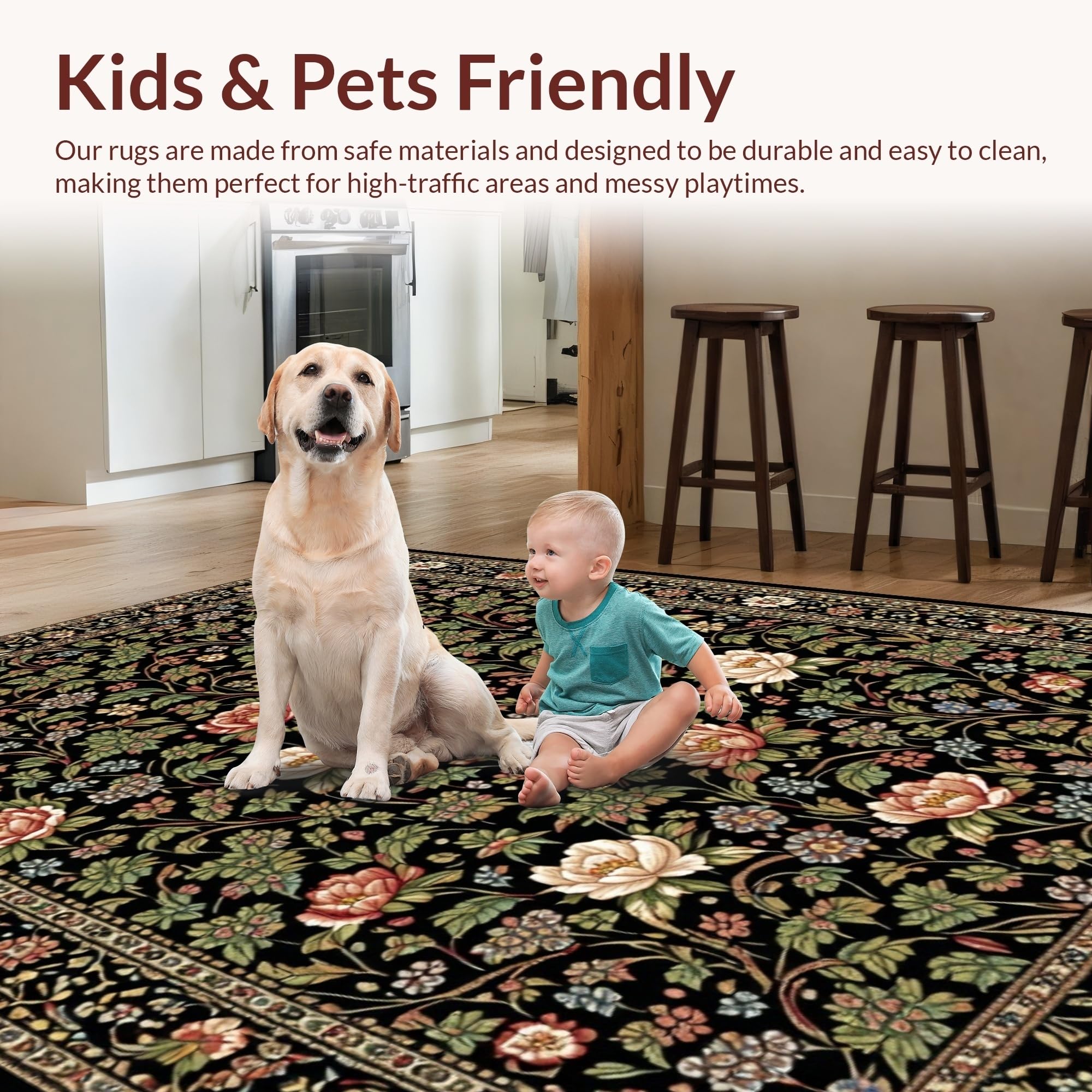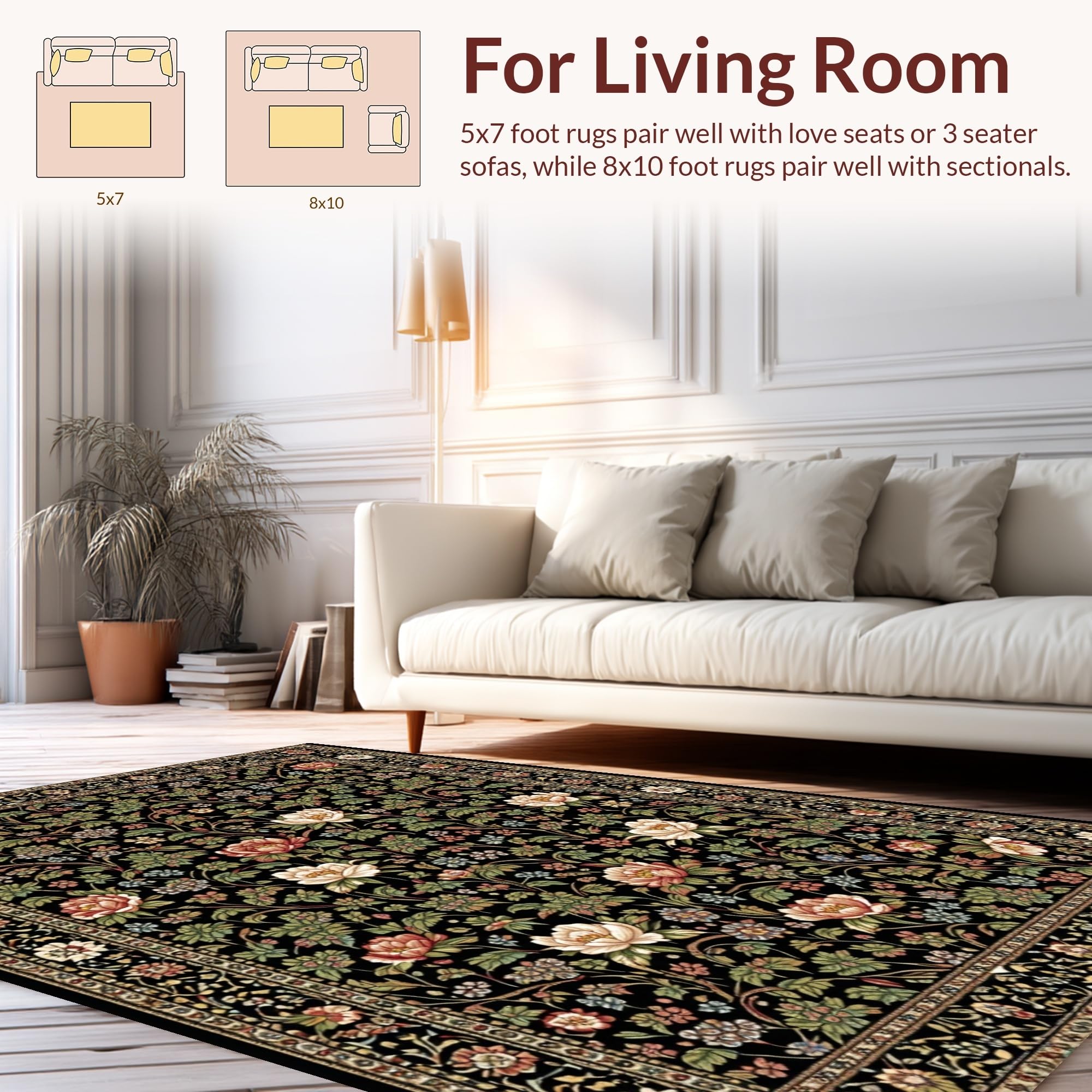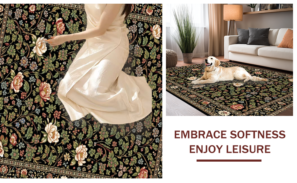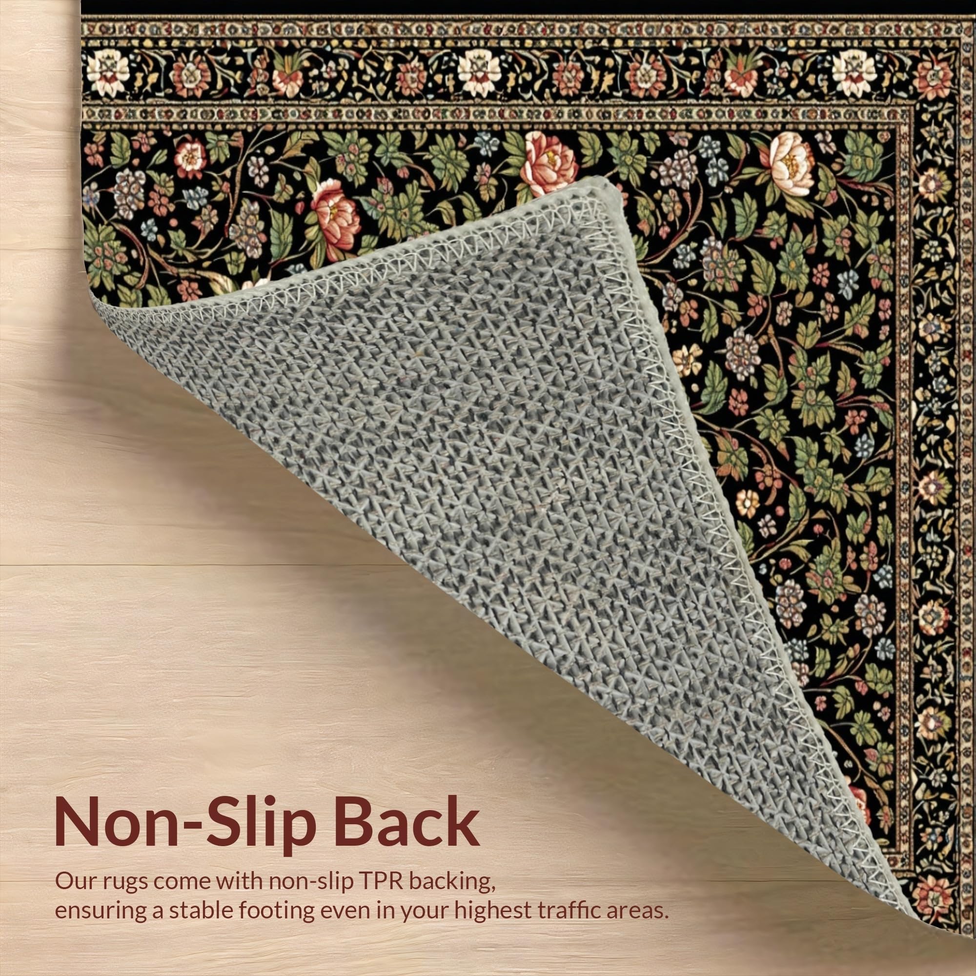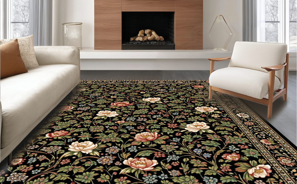 Ultra Soft Area Rug, Non Slip, Stain Resistant, Washable Area Rugs for Living Room, Bedroom, Whimsical Nature-Inspired Graphics(Black) Overview: