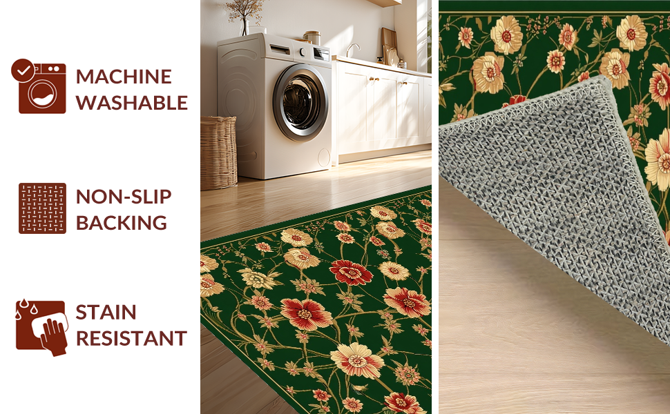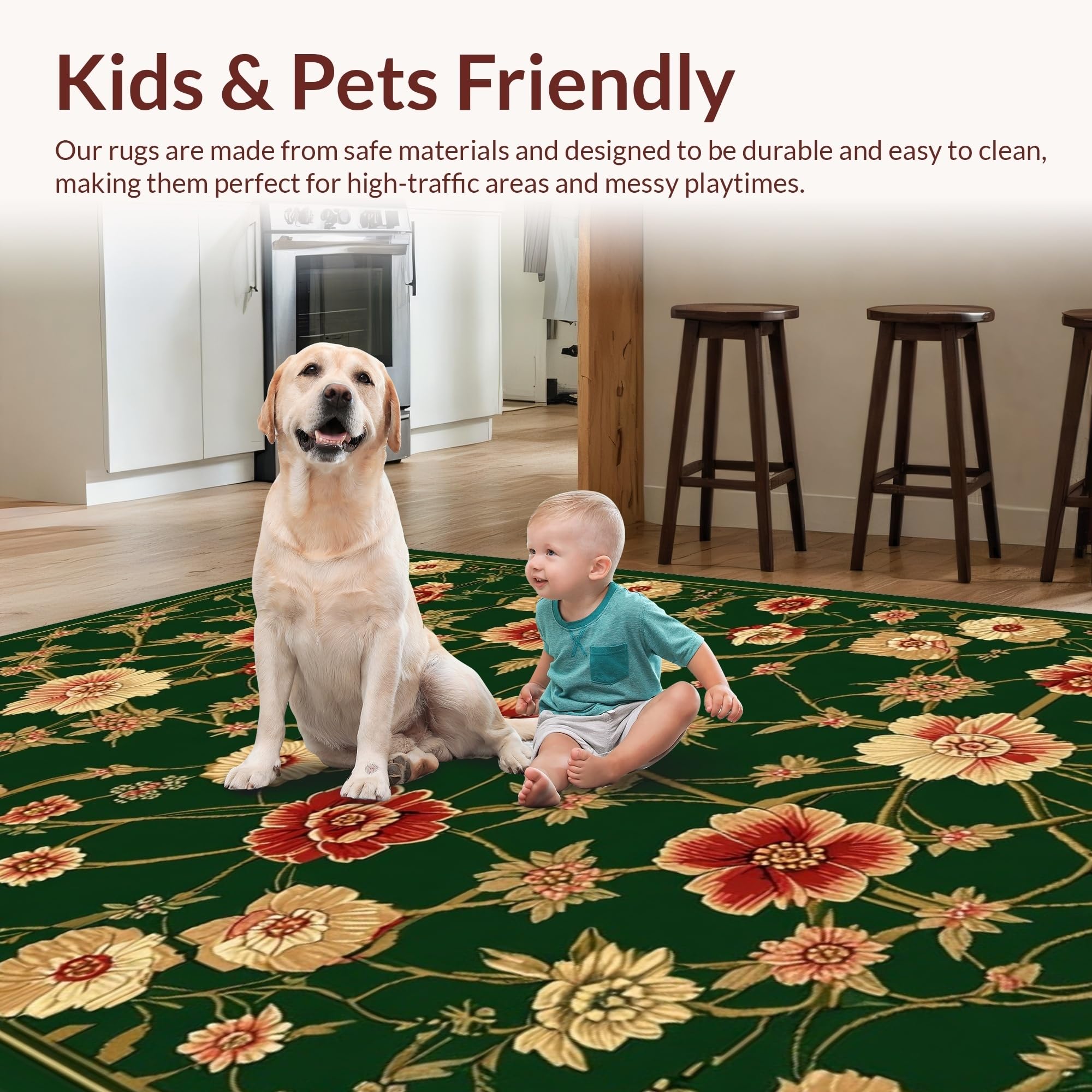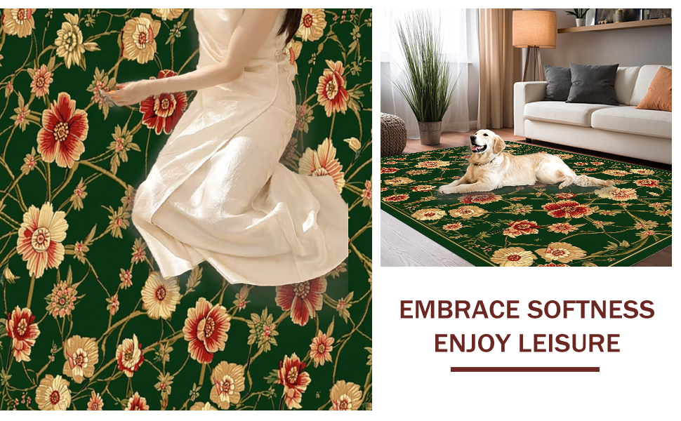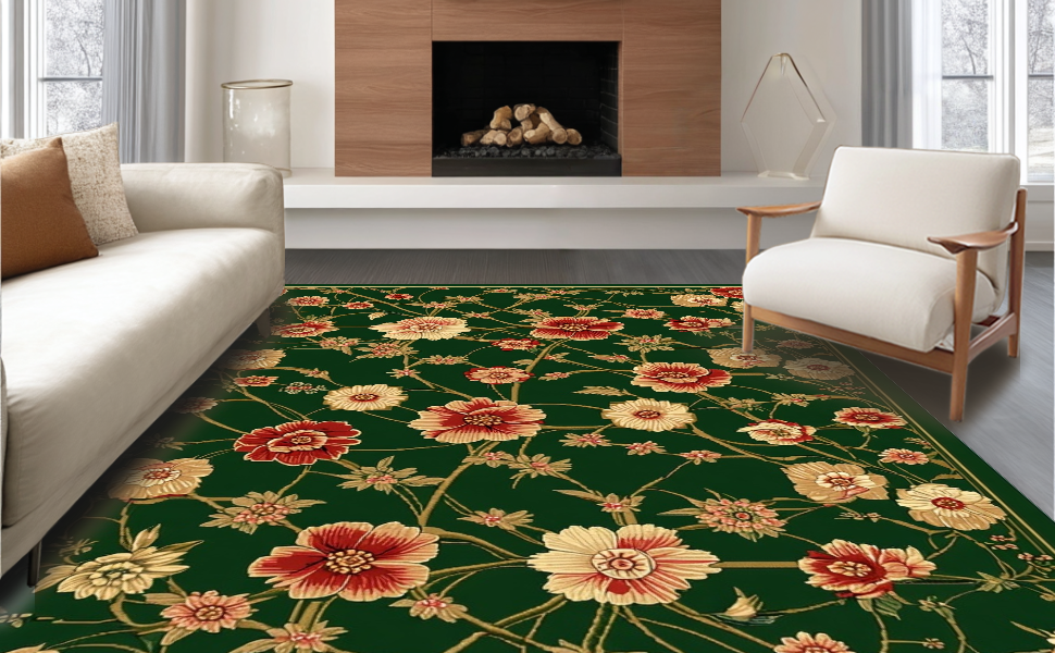 Ultra Soft Area Rug, Non Slip, Stain Resistant, Washable Area Rugs for Living Room, Bedroom, Whimsical Nature-Inspired Pattern(Green) Overview:
