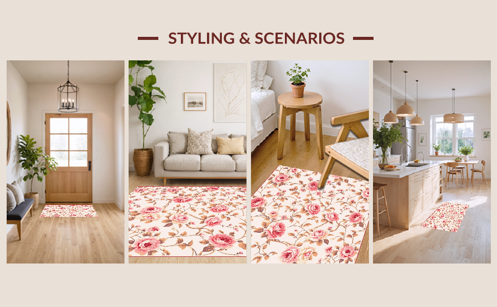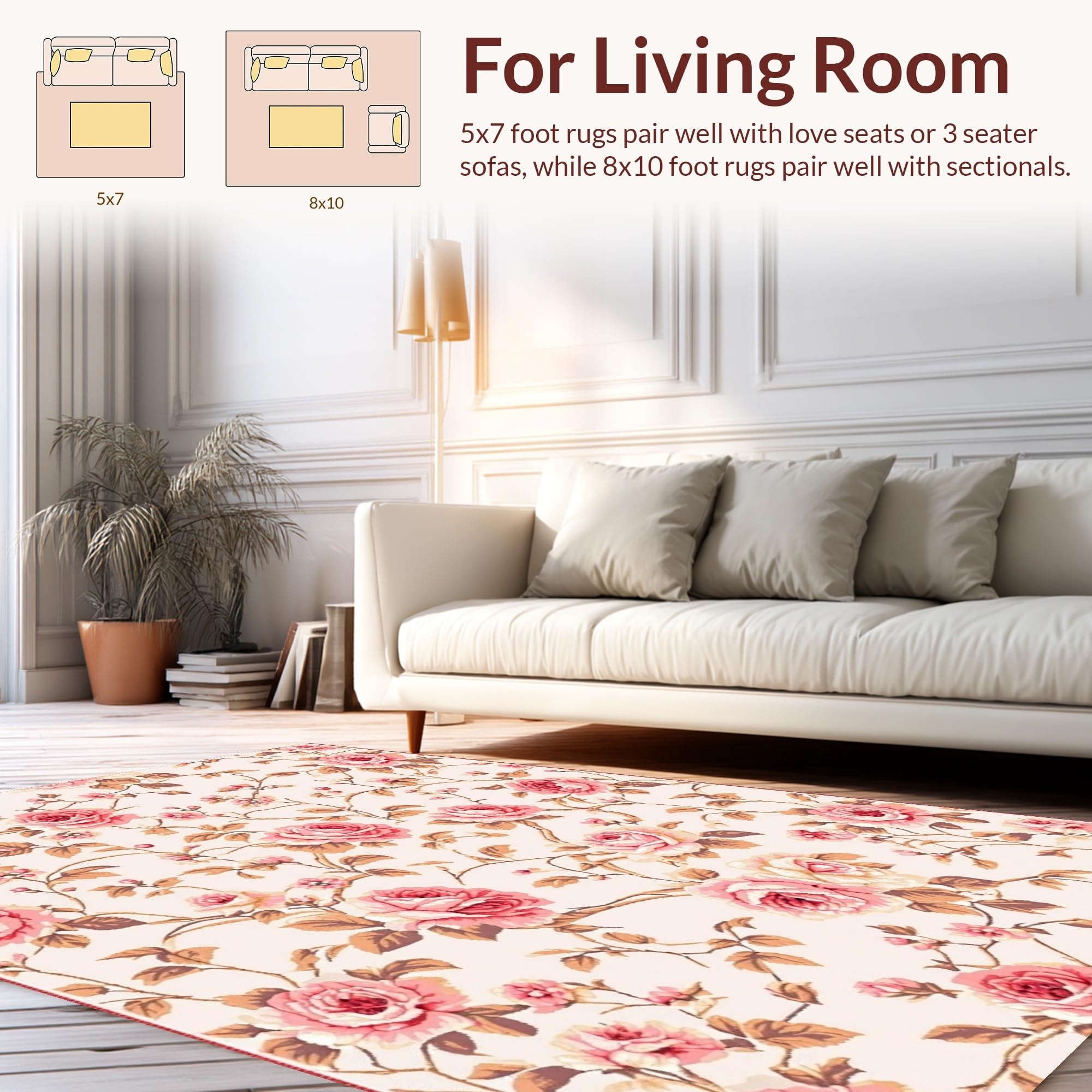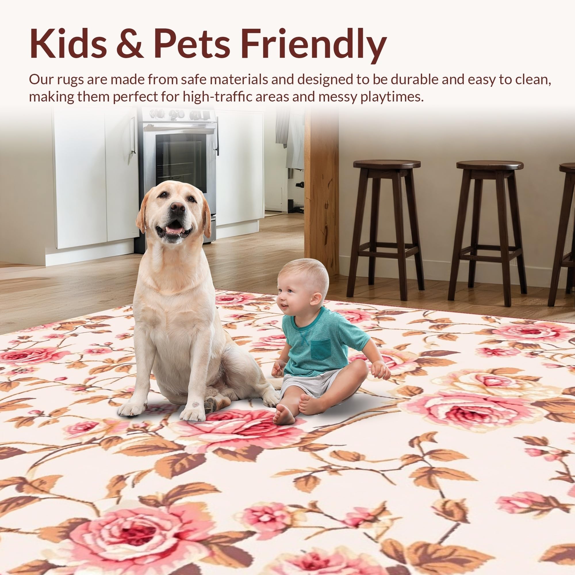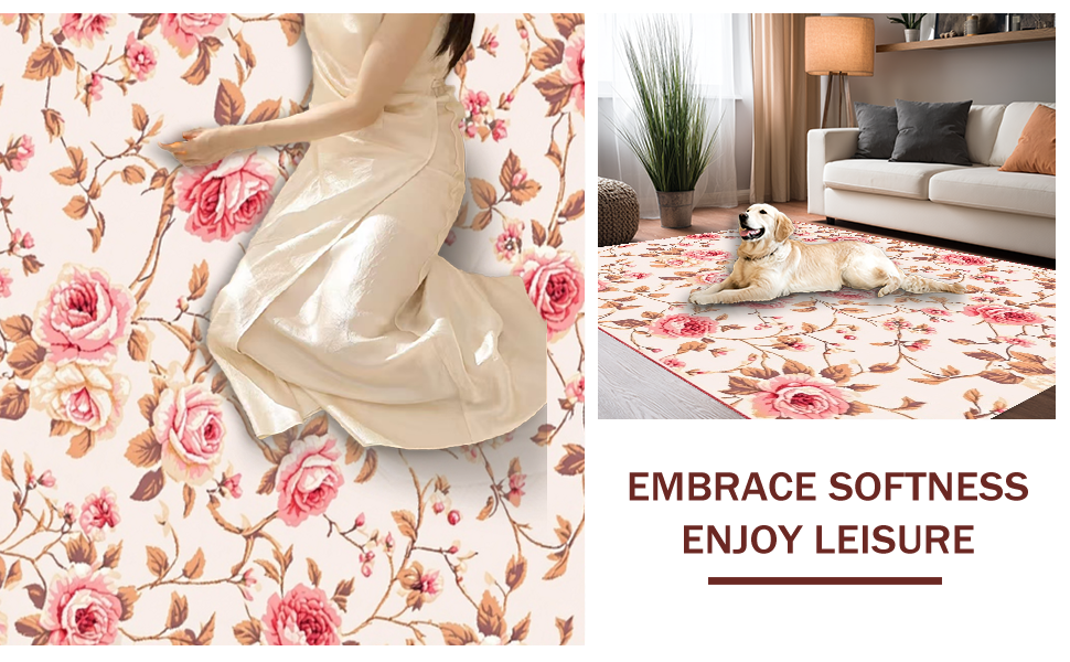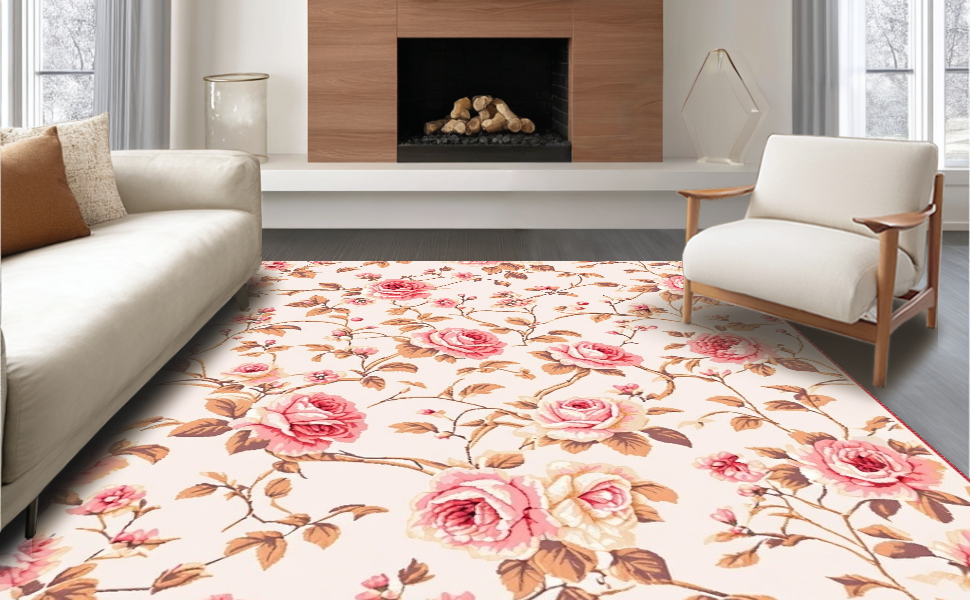 Ultra Soft Area Rug, Non Slip, Stain Resistant, Washable Area Rugs for Living Room, Bedroom, Whimsical Nature-Inspired Patterns(Pink) Overview: