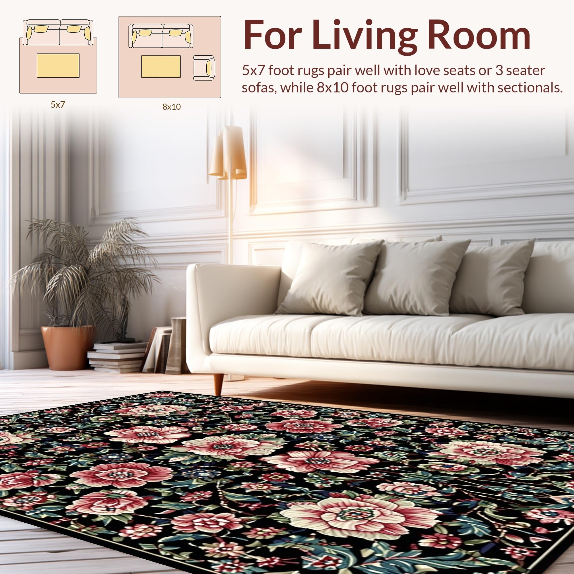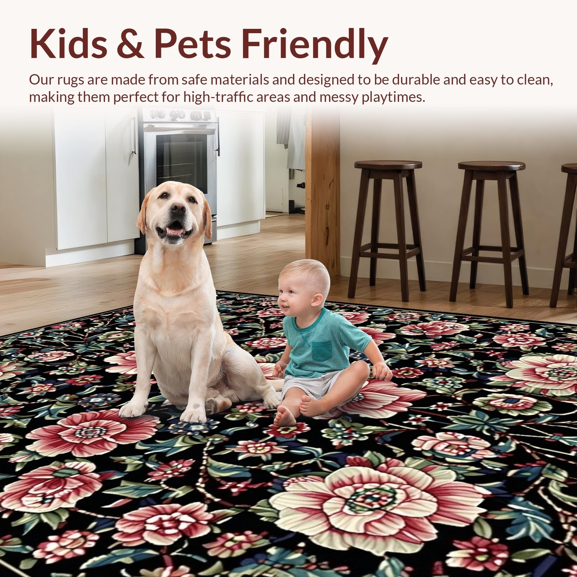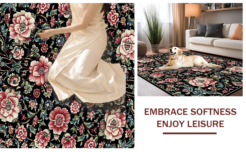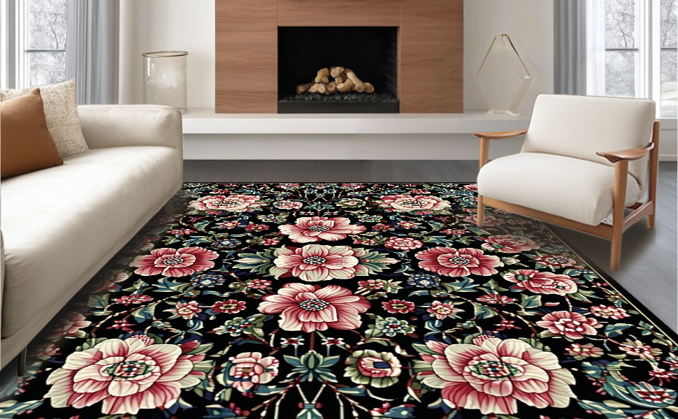 Ultra Soft Area Rug, Non Slip, Stain Resistant, Washable Area Rugs for Living Room, Bedroom, Whimsical Nature-Themed Decoration(Black) Overview: