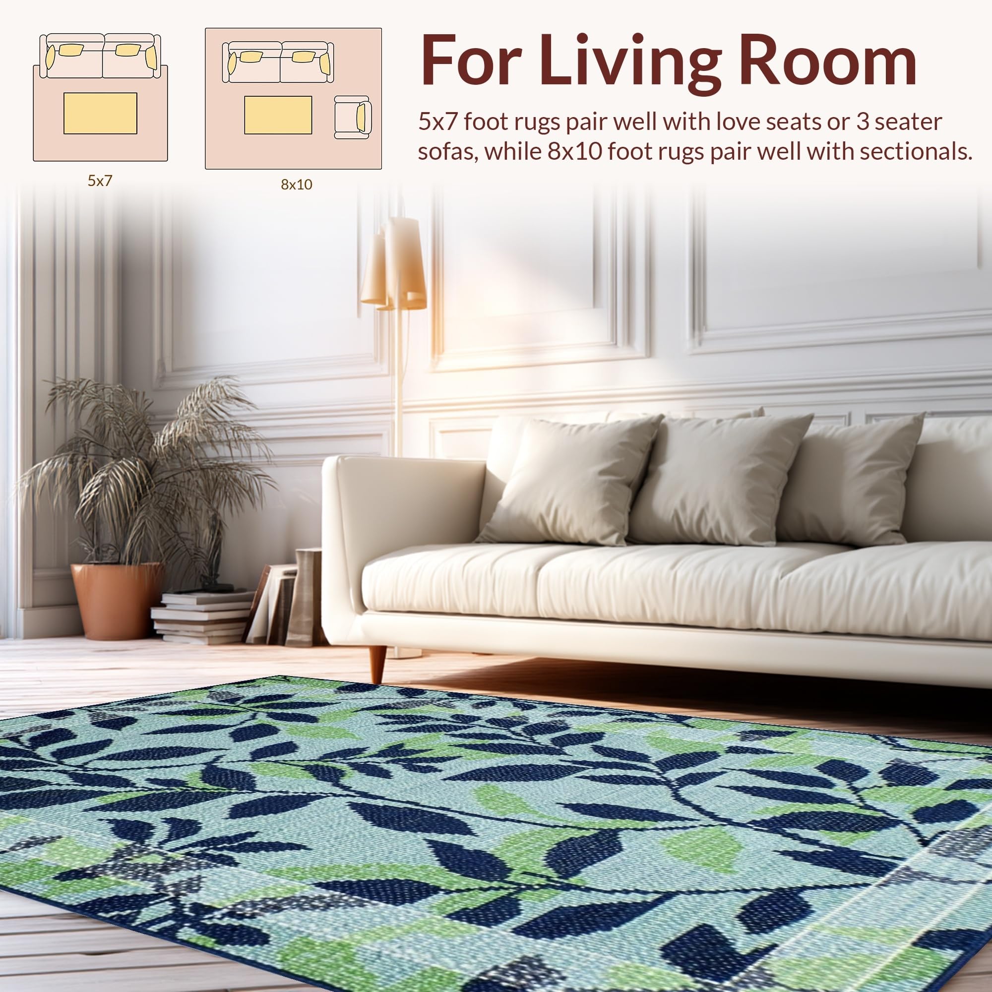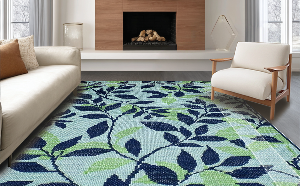 Ultra Soft Area Rug, Non Slip, Stain Resistant, Washable Area Rugs for Living Room, Bedroom, Whimsical Navy Floral Motif(Blue) Overview: