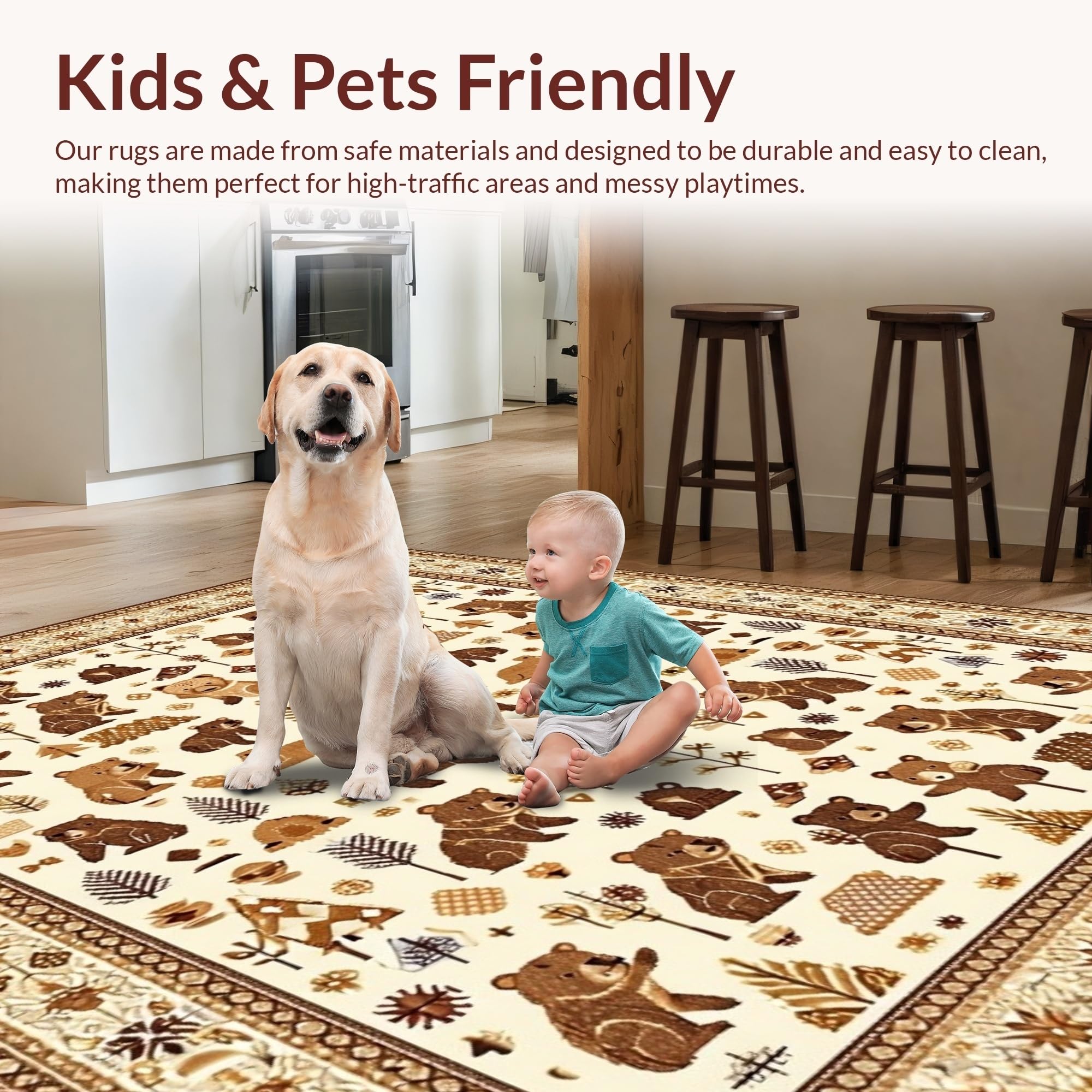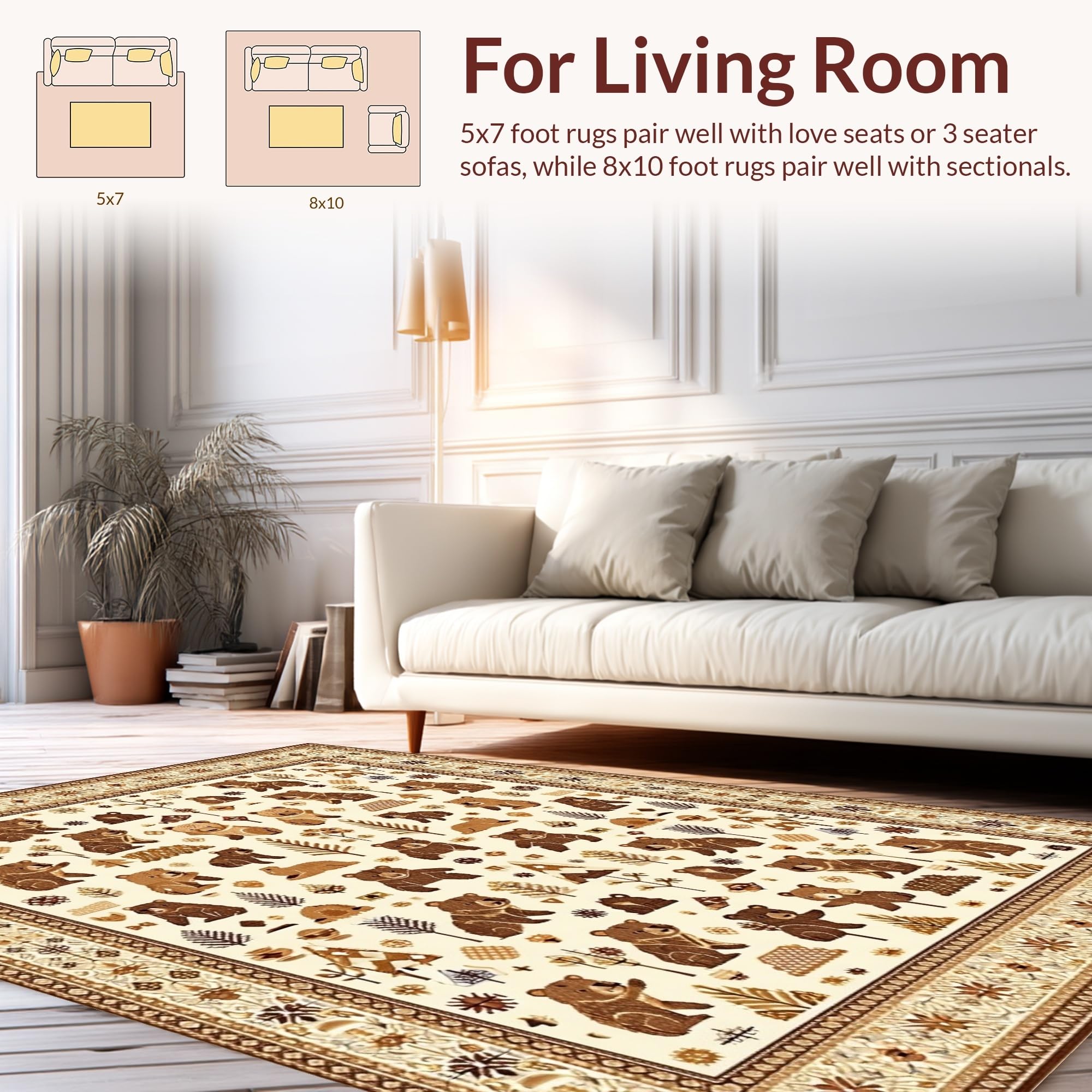 Ultra Soft Area Rug, Non Slip, Stain Resistant, Washable Area Rugs for Living Room, Bedroom, Whimsical Neutral Textured Piece(Beige) Overview: