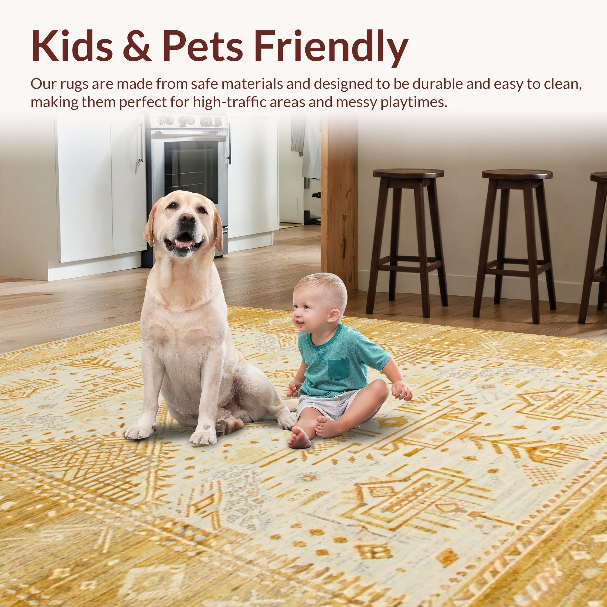 Ultra Soft Area Rug, Non Slip, Stain Resistant, Washable Area Rugs for Living Room, Bedroom, Whimsical Ogee Print Appeal(Beige) Overview: