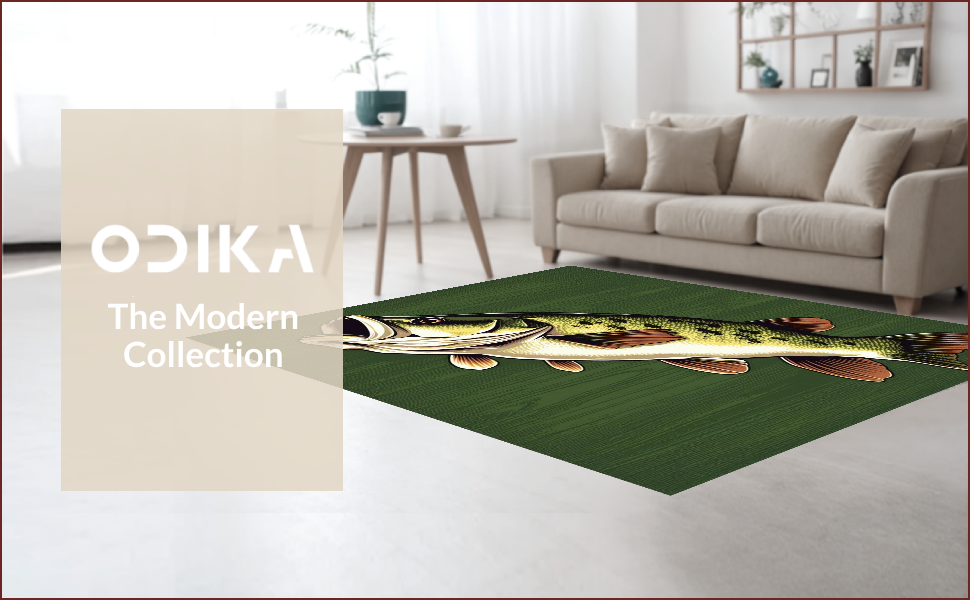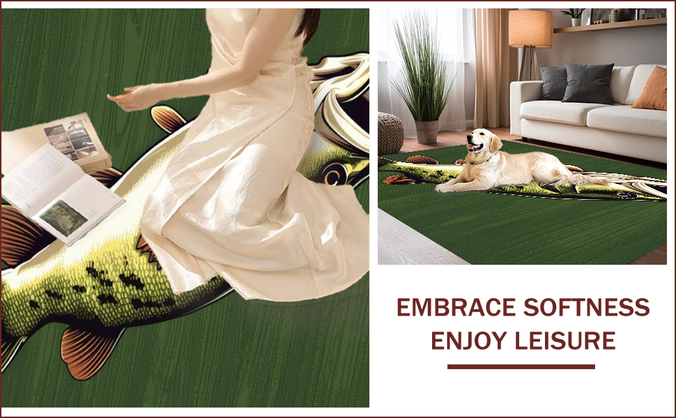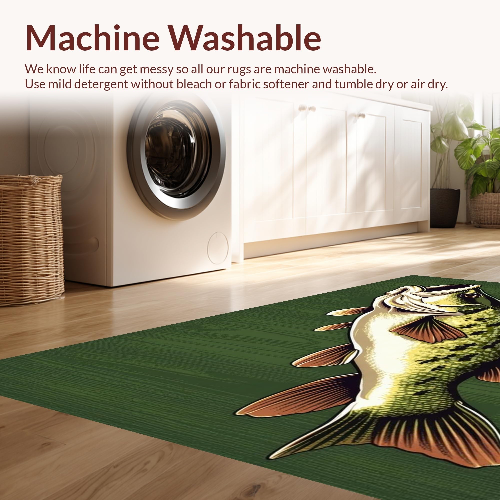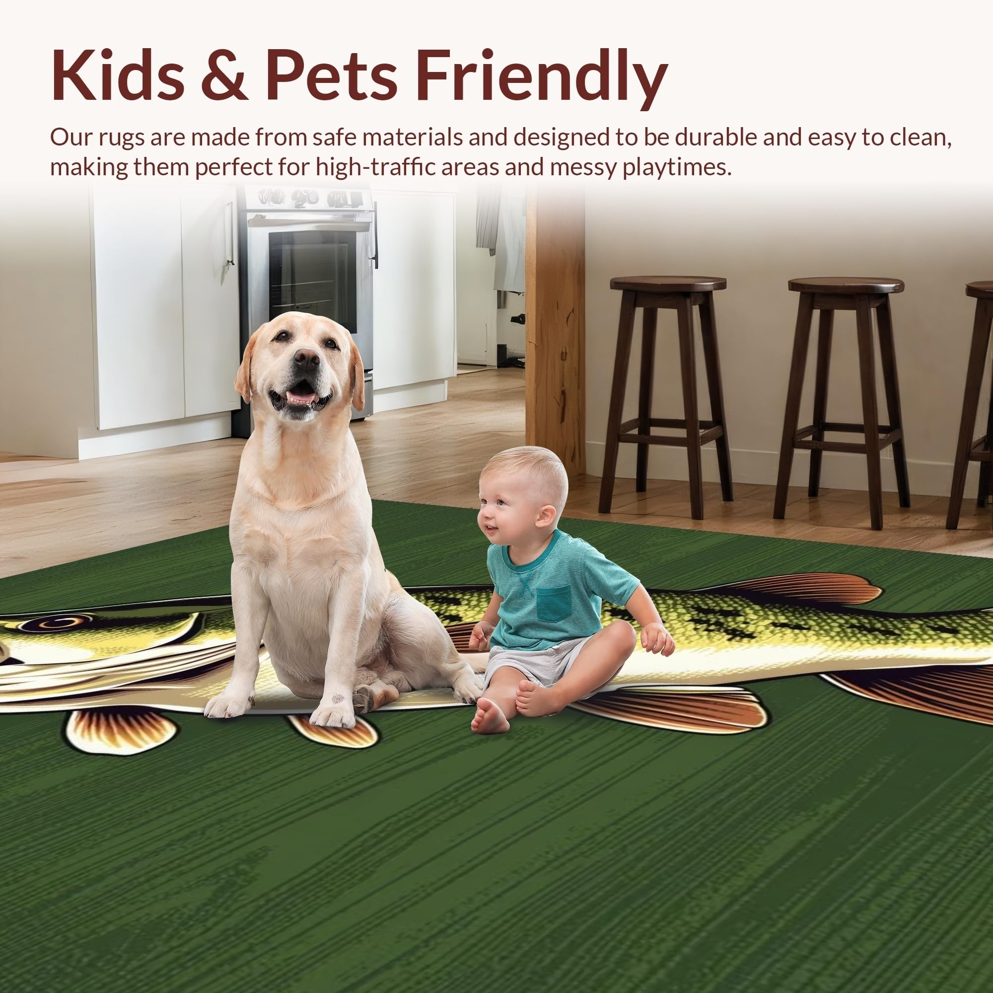 Ultra Soft Area Rug, Non Slip, Stain Resistant, Washable Area Rugs for Living Room, Bedroom, Whimsical Outdoor Fishing Theme Décor(Green) Overview: