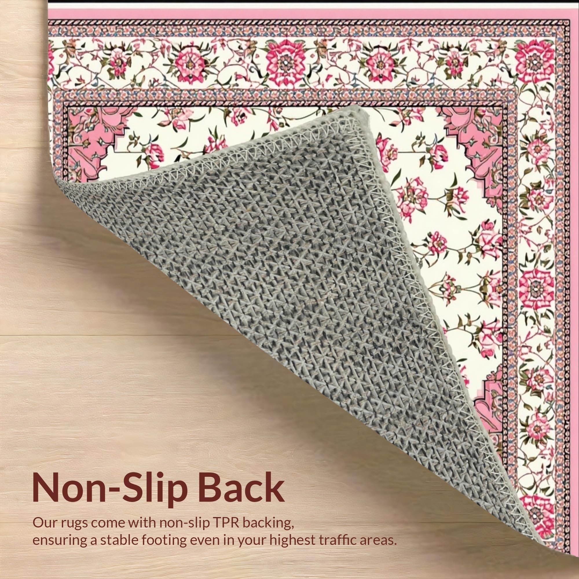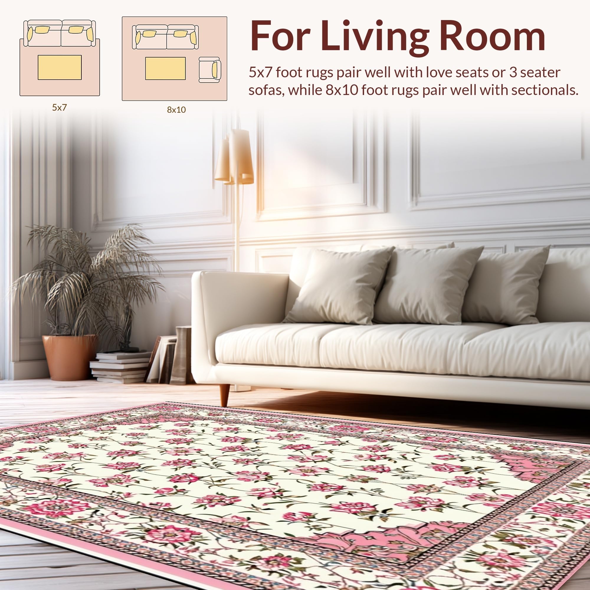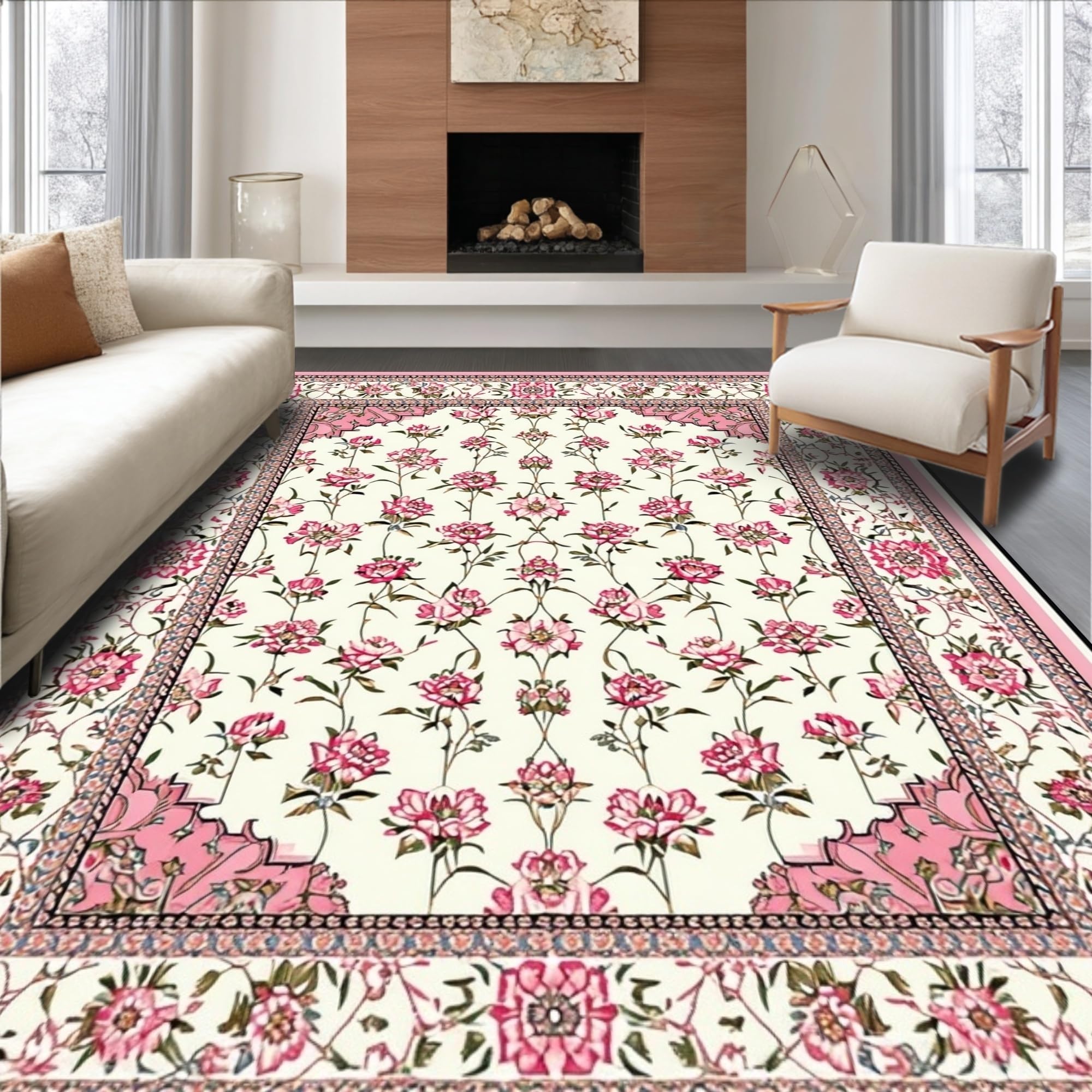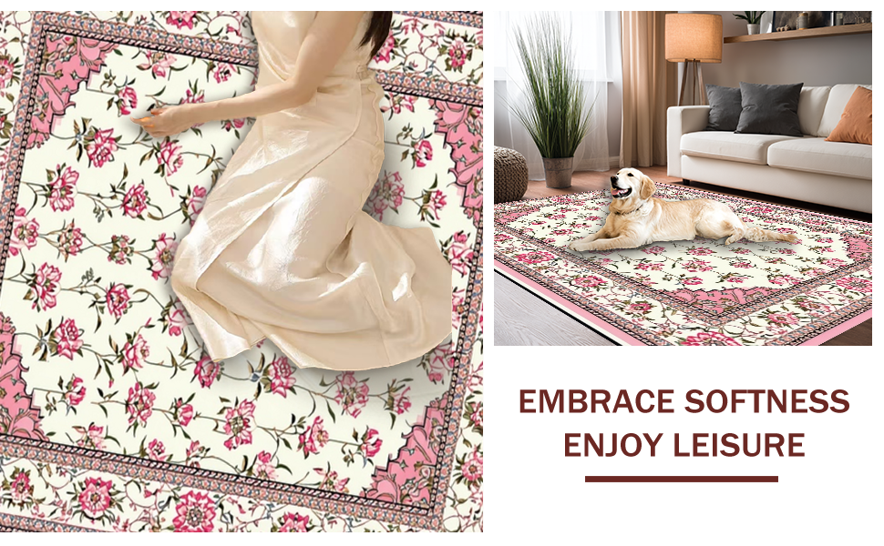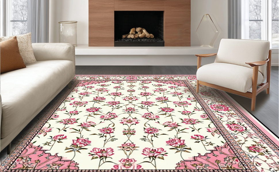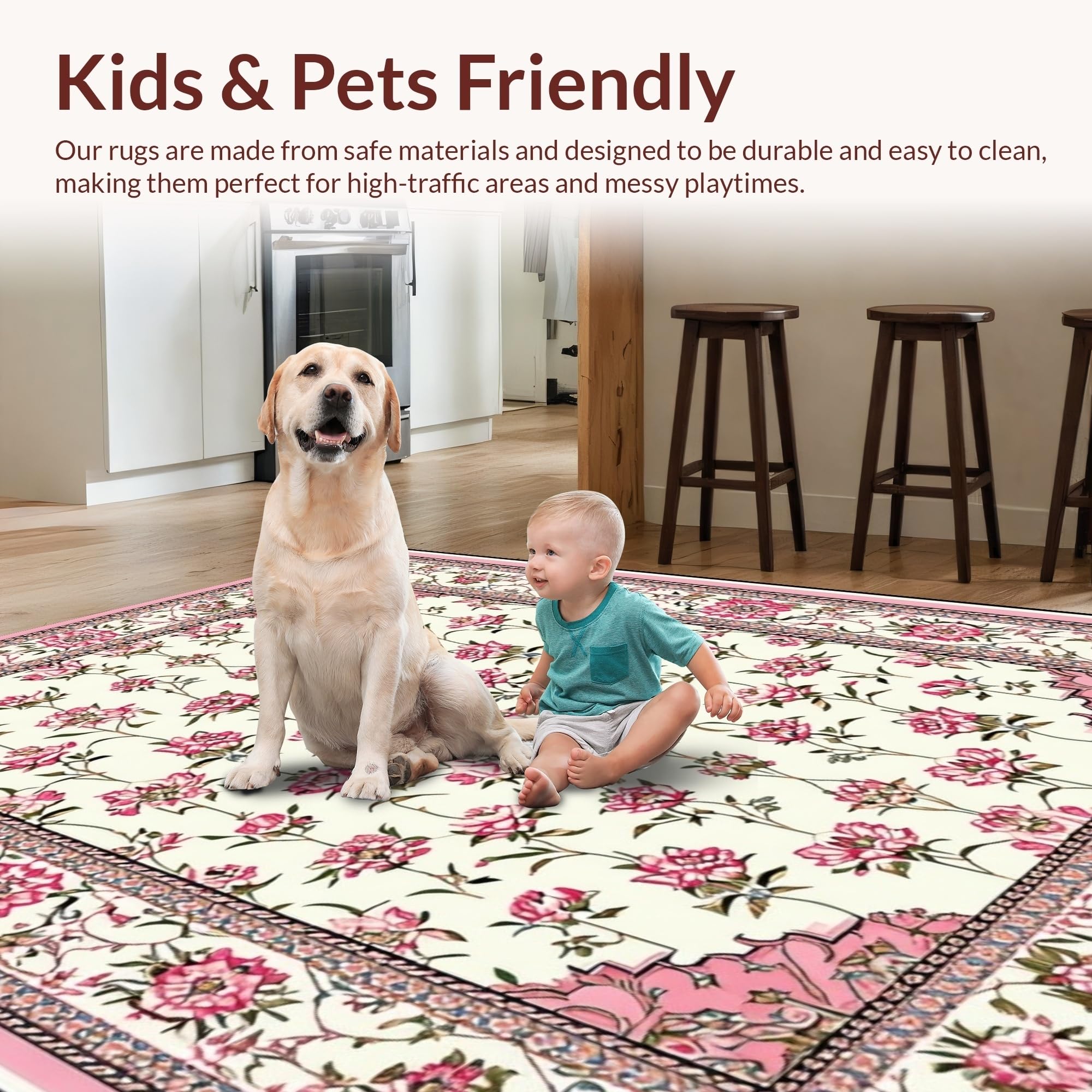 Ultra Soft Area Rug, Non Slip, Stain Resistant, Washable Area Rugs for Living Room, Bedroom, Whimsical Pastel Petal Pattern(Ivory) Overview: