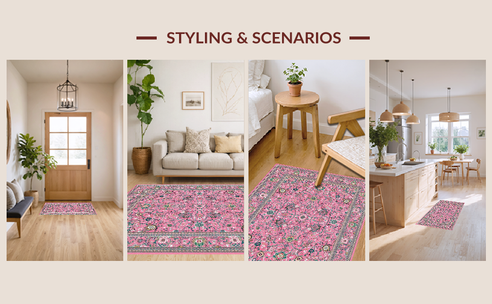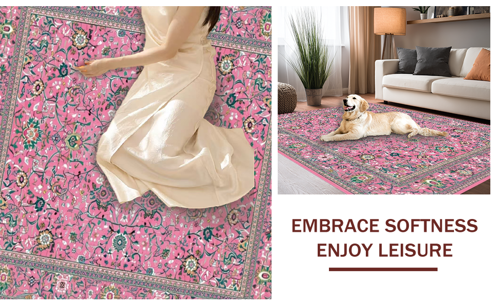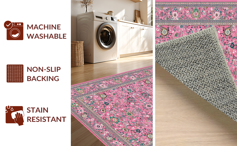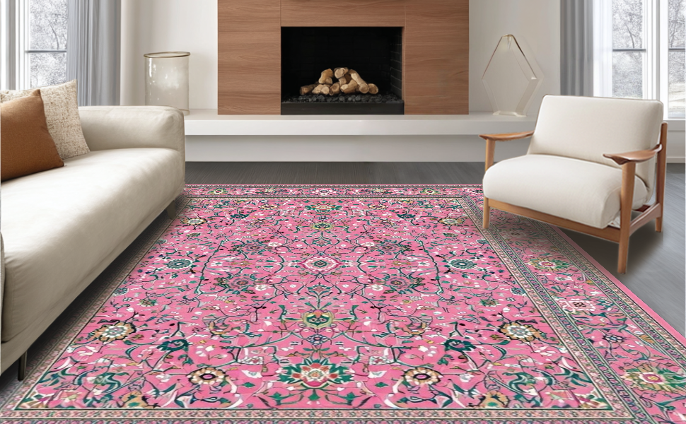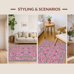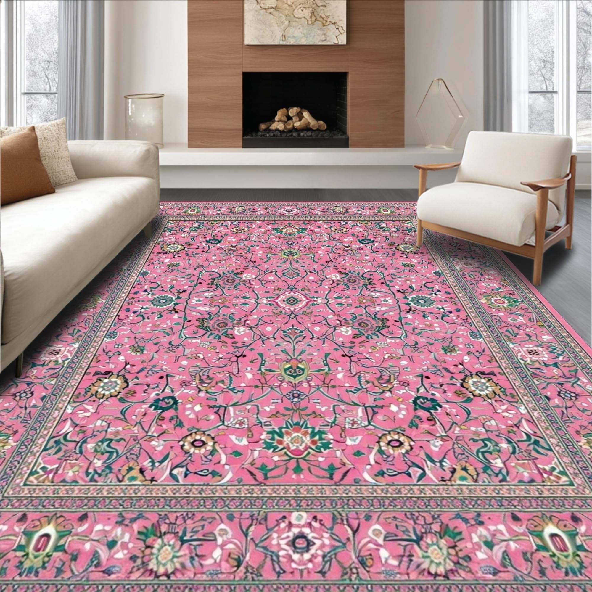 Ultra Soft Area Rug, Non Slip, Stain Resistant, Washable Area Rugs for Living Room, Bedroom, Whimsical Pink Green Floral Fusion(Pink) Overview: