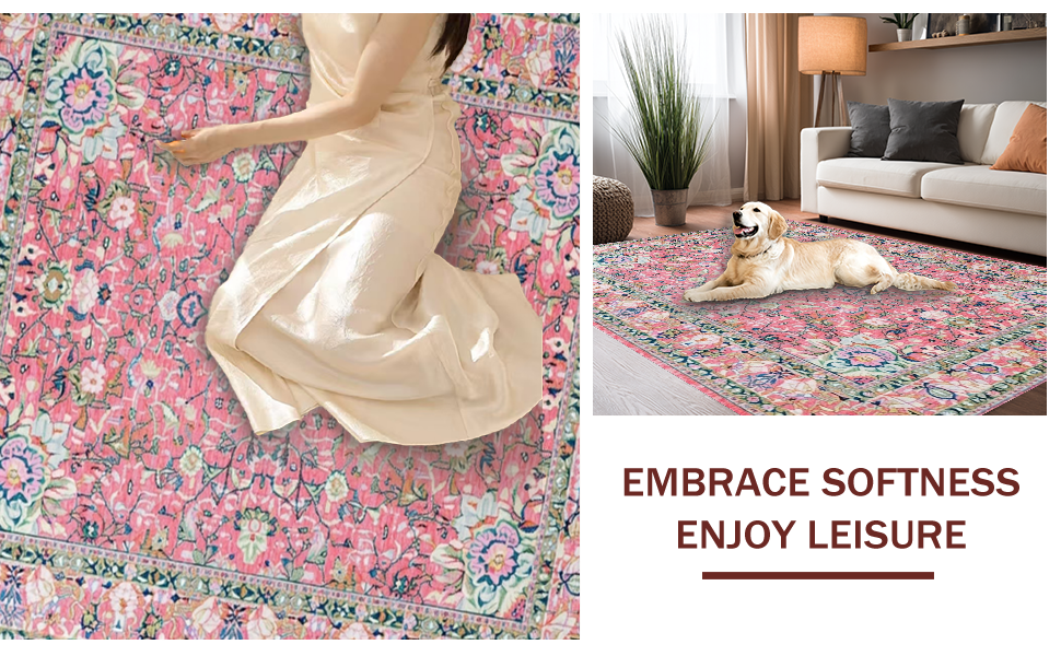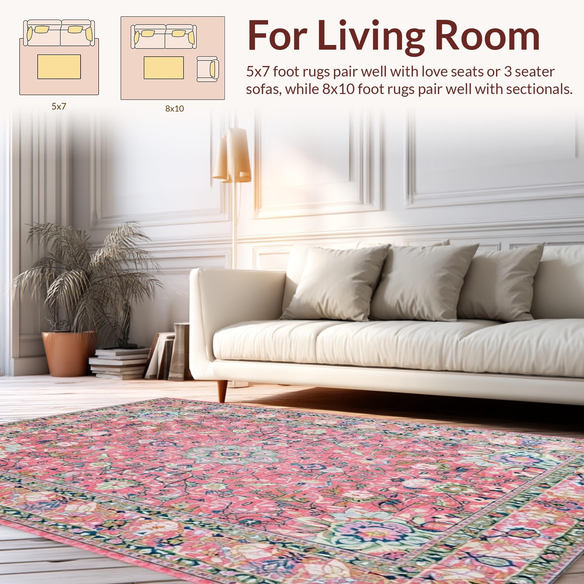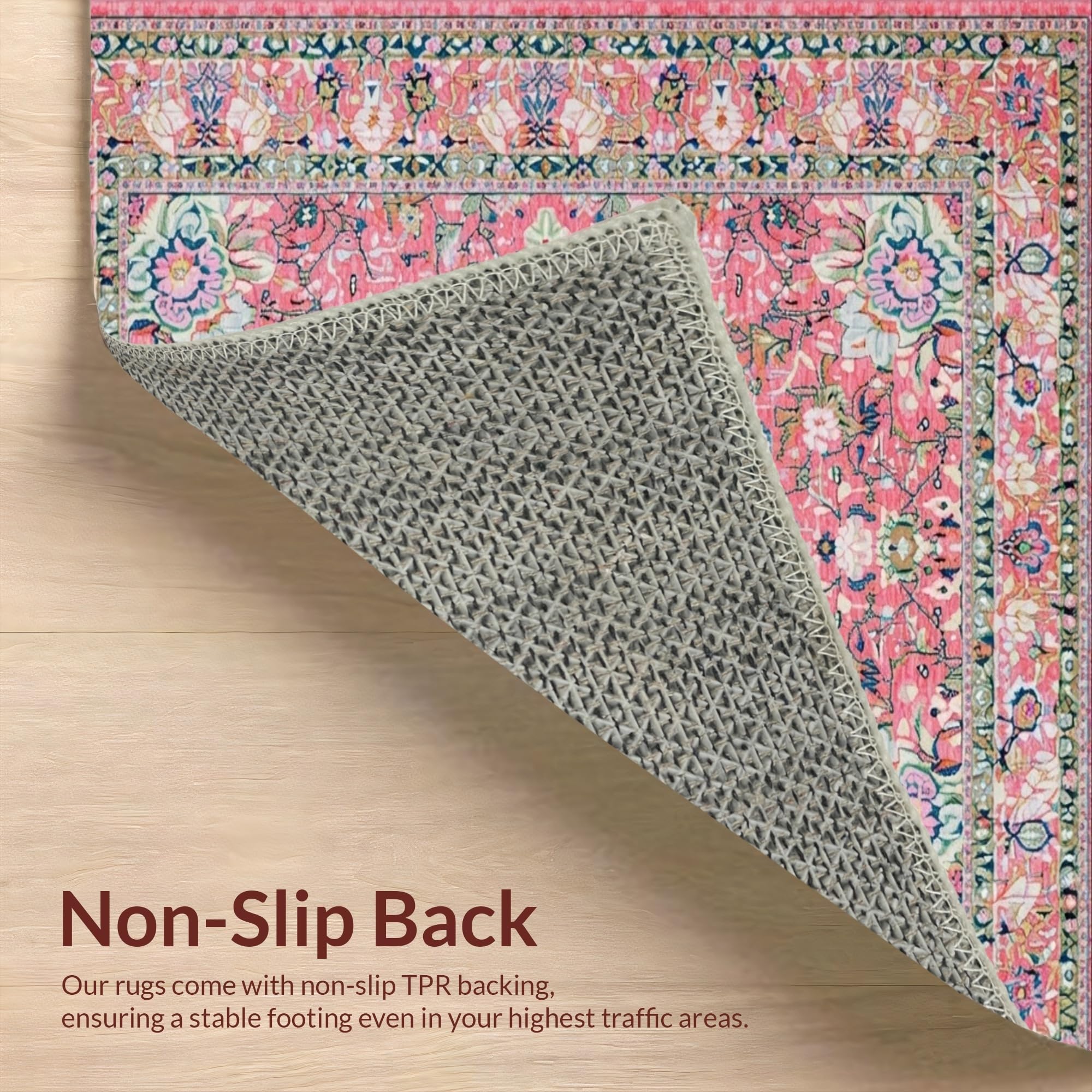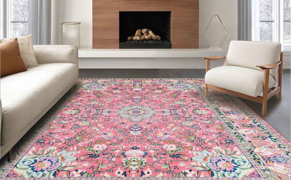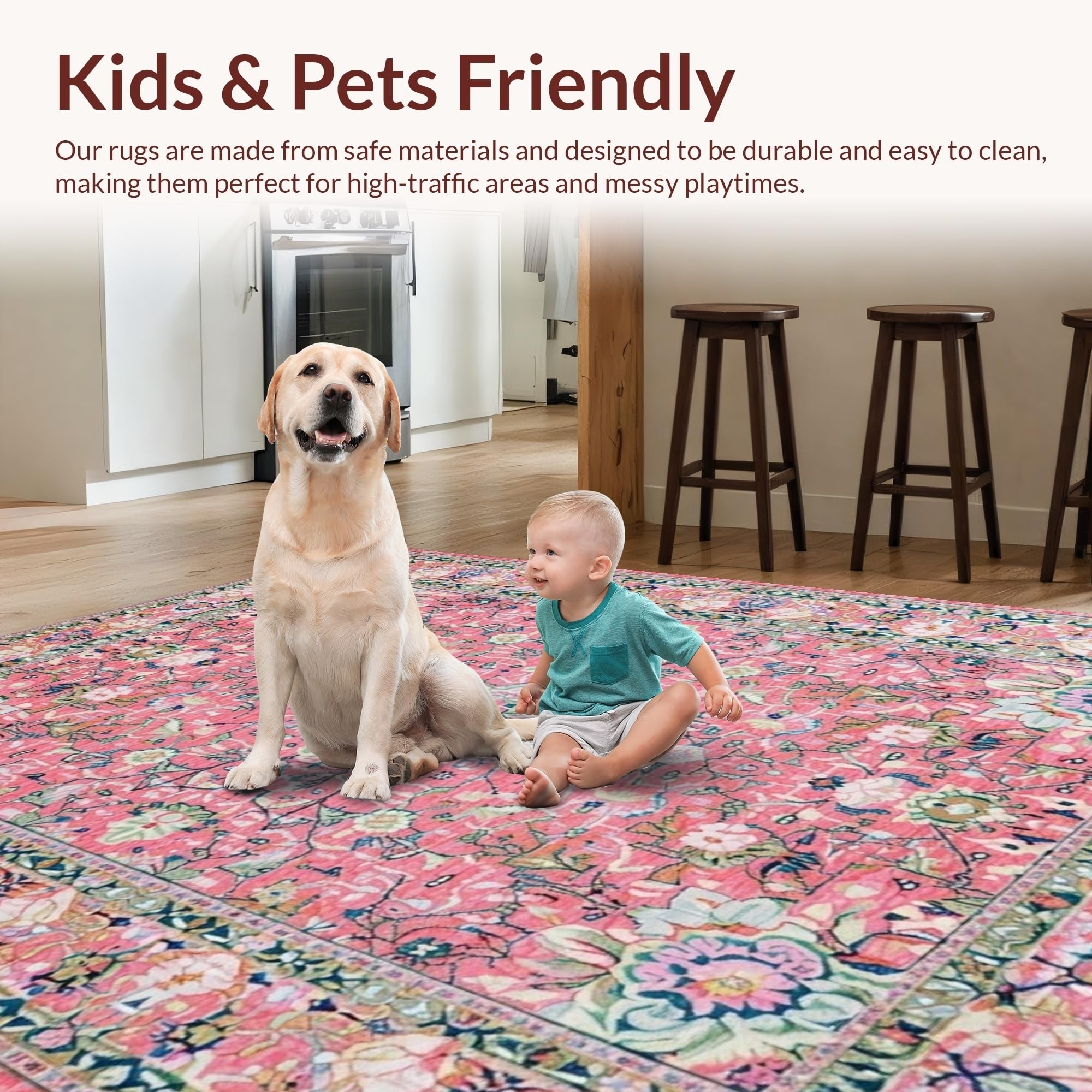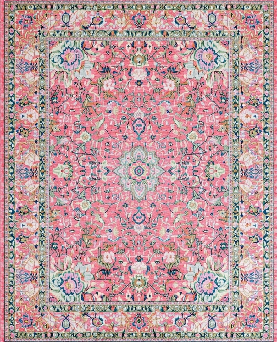 Ultra Soft Area Rug, Non Slip, Stain Resistant, Washable Area Rugs for Living Room, Bedroom, Whimsical Pink Green Tiled Design(Pink) Overview:
