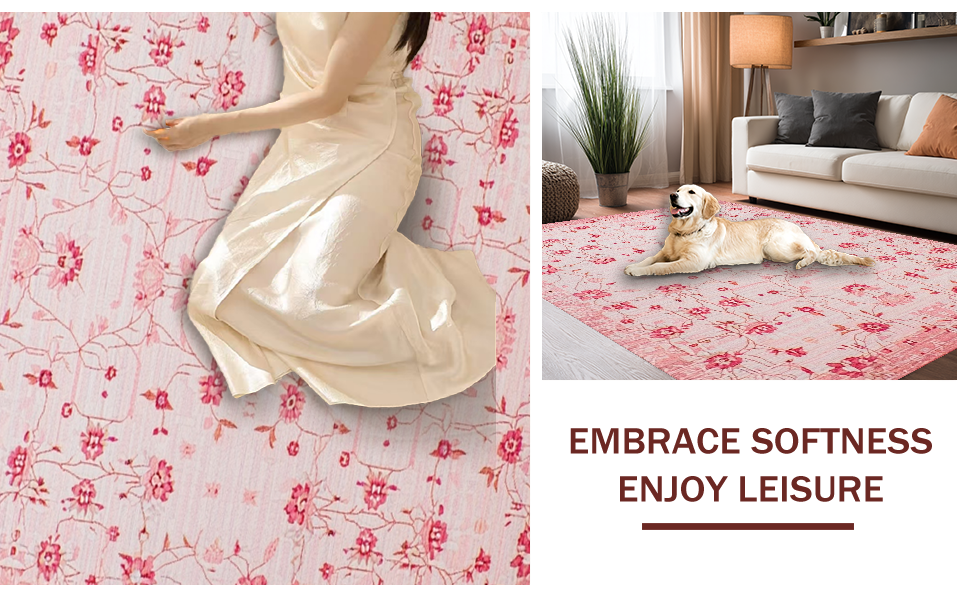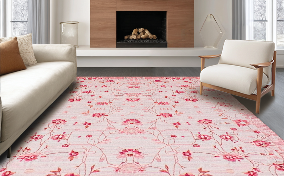Ultra Soft Area Rug, Non Slip, Stain Resistant, Washable Area Rugs for Living Room, Bedroom, Whimsical Pink Trellis Delight(Pink) Overview: